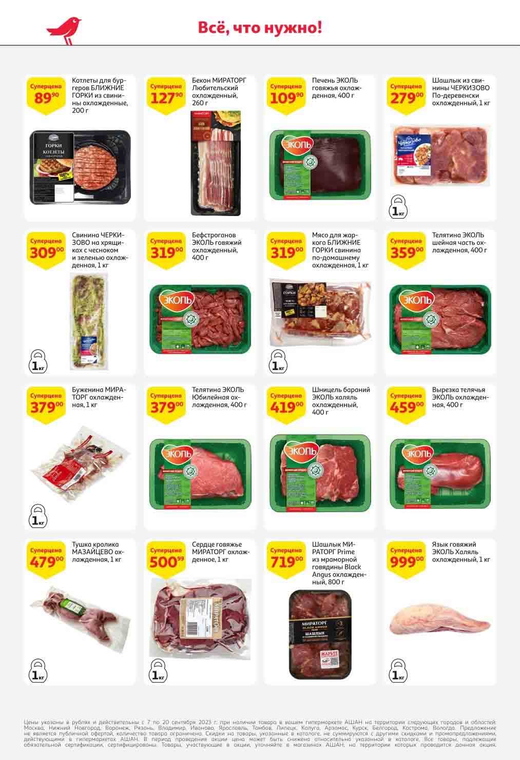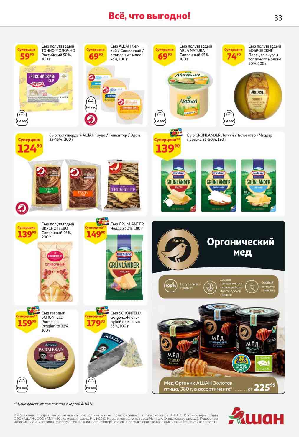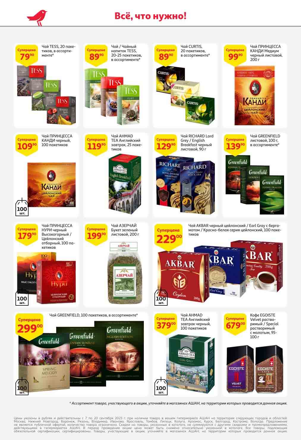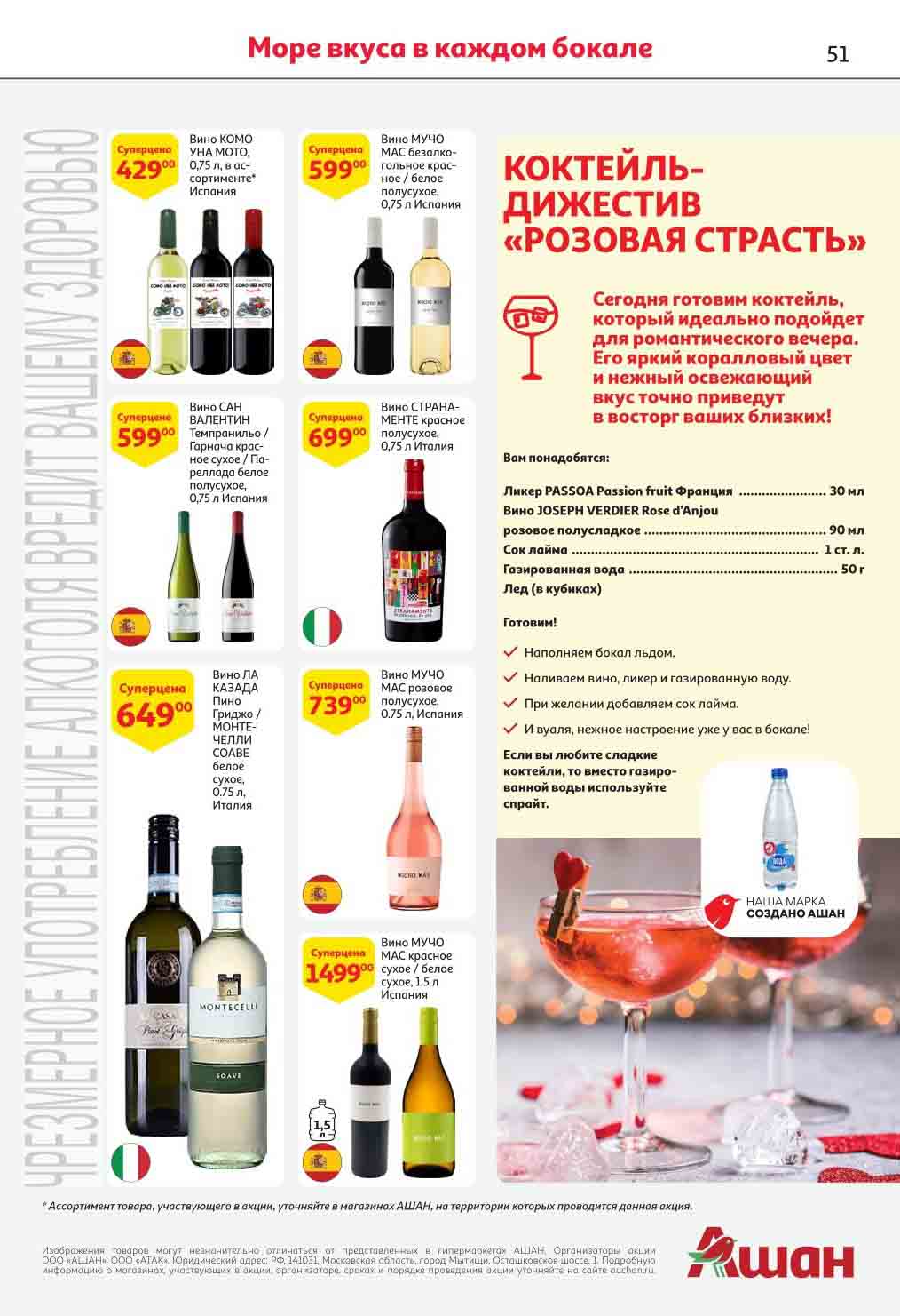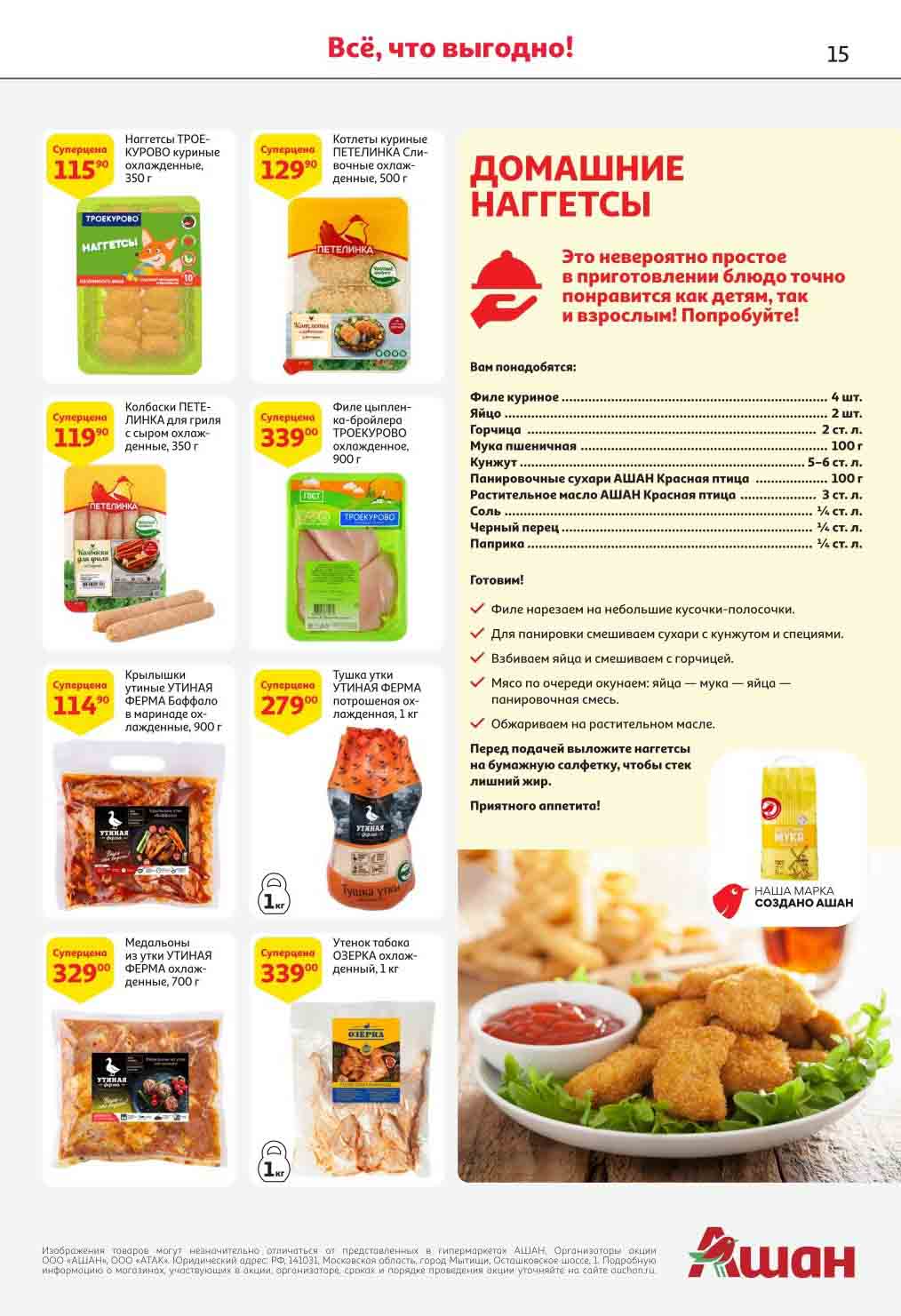 На страницах каталога Ашан вы найдете все свои любимые продукты, которые сейчас предлагаются в супермаркете. Не пропустите последние специальные предложения и сэкономьте на покупках. Предложение действительно при наличии товара на прилавках. Скидки на товары, указанные в каталоге, не суммируются с другими скидками. Изображения товаров могут незначительно отличаться от представленных на полках. Цены по акции Ашан действуют в городах: Москва. Балашиха. Химки. Подольск. Королев. Мытищи. Люберцы. Электросталь. Коломна. Одинцово. Железнодорожный, Серпухов, Орехово-Зуево. Красногорск, Щелково, Сергиев Посад, Пушкино. Жуковский, Ногинск, Раменское и многих других населенных пунктах Московского региона.