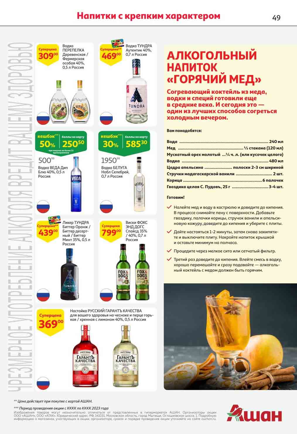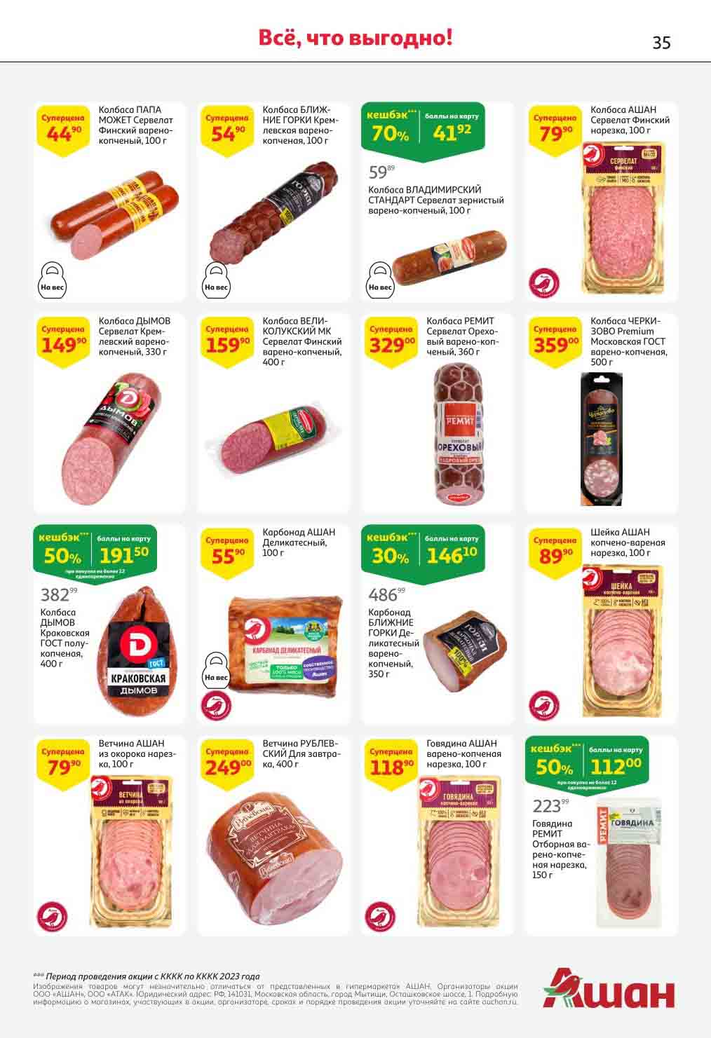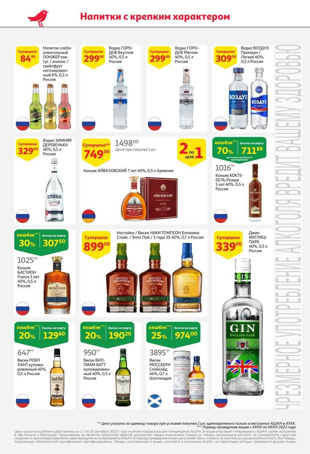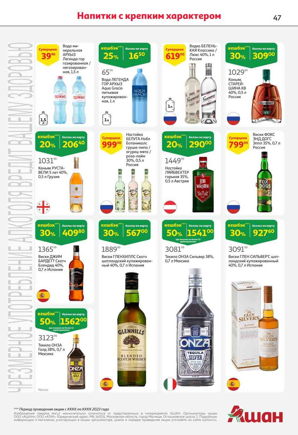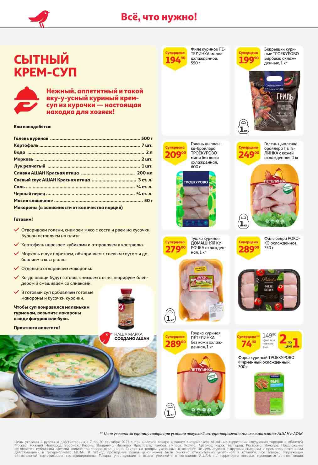 На страницах каталога Ашан вы найдете все свои любимые продукты, которые сейчас предлагаются в супермаркете. Не пропустите последние специальные предложения и сэкономьте на покупках. Предложение действительно при наличии товара на прилавках. Скидки на товары, указанные в каталоге, не суммируются с другими скидками. Изображения товаров могут незначительно отличаться от представленных на полках. Цены по акции Ашан действуют в городах: Москва. Балашиха. Химки. Подольск. Королев. Мытищи. Люберцы. Электросталь. Коломна. Одинцово. Железнодорожный, Серпухов, Орехово-Зуево. Красногорск, Щелково, Сергиев Посад, Пушкино. Жуковский, Ногинск, Раменское и многих других населенных пунктах Московского региона.