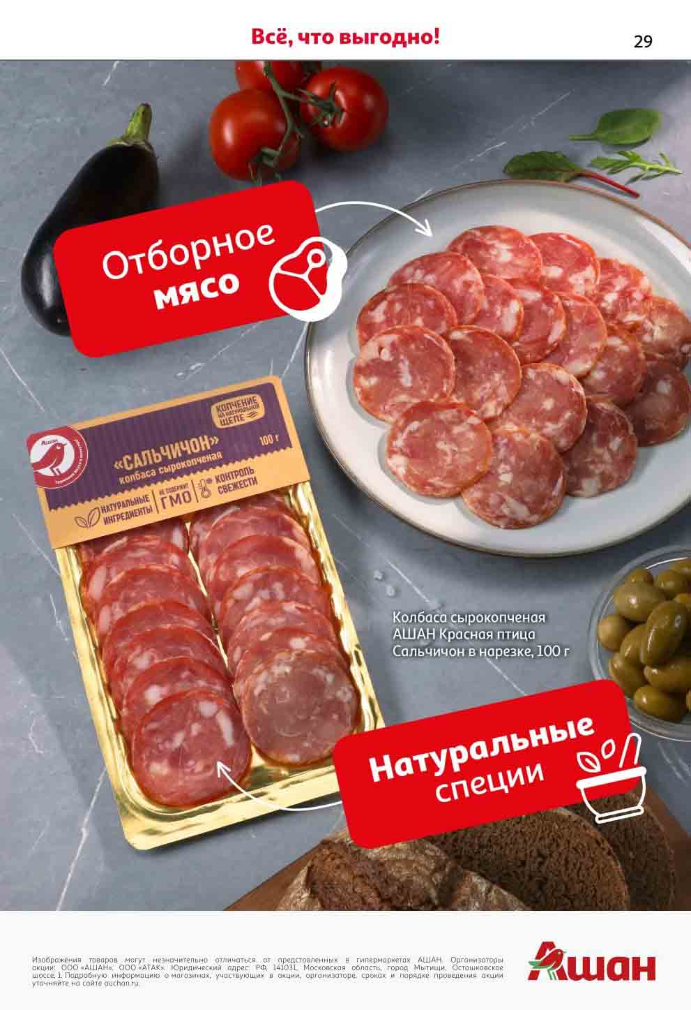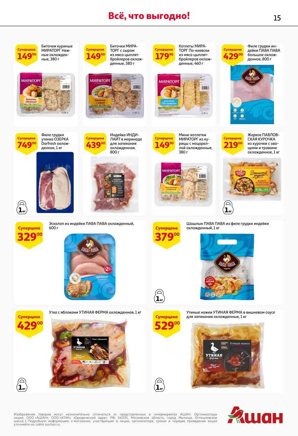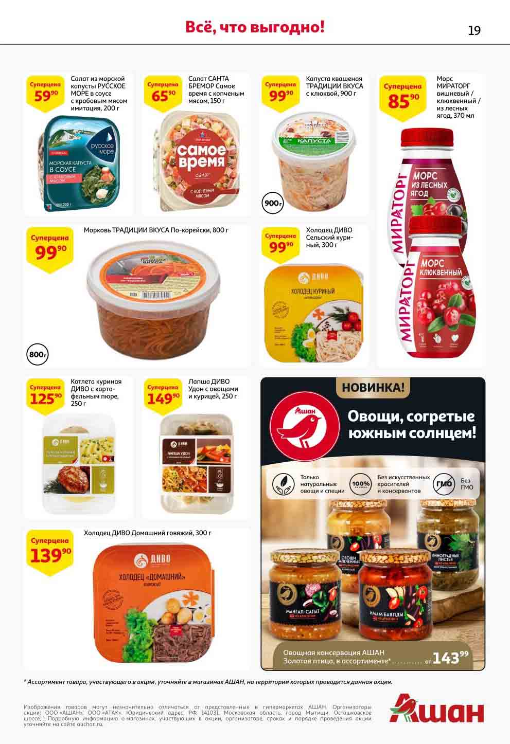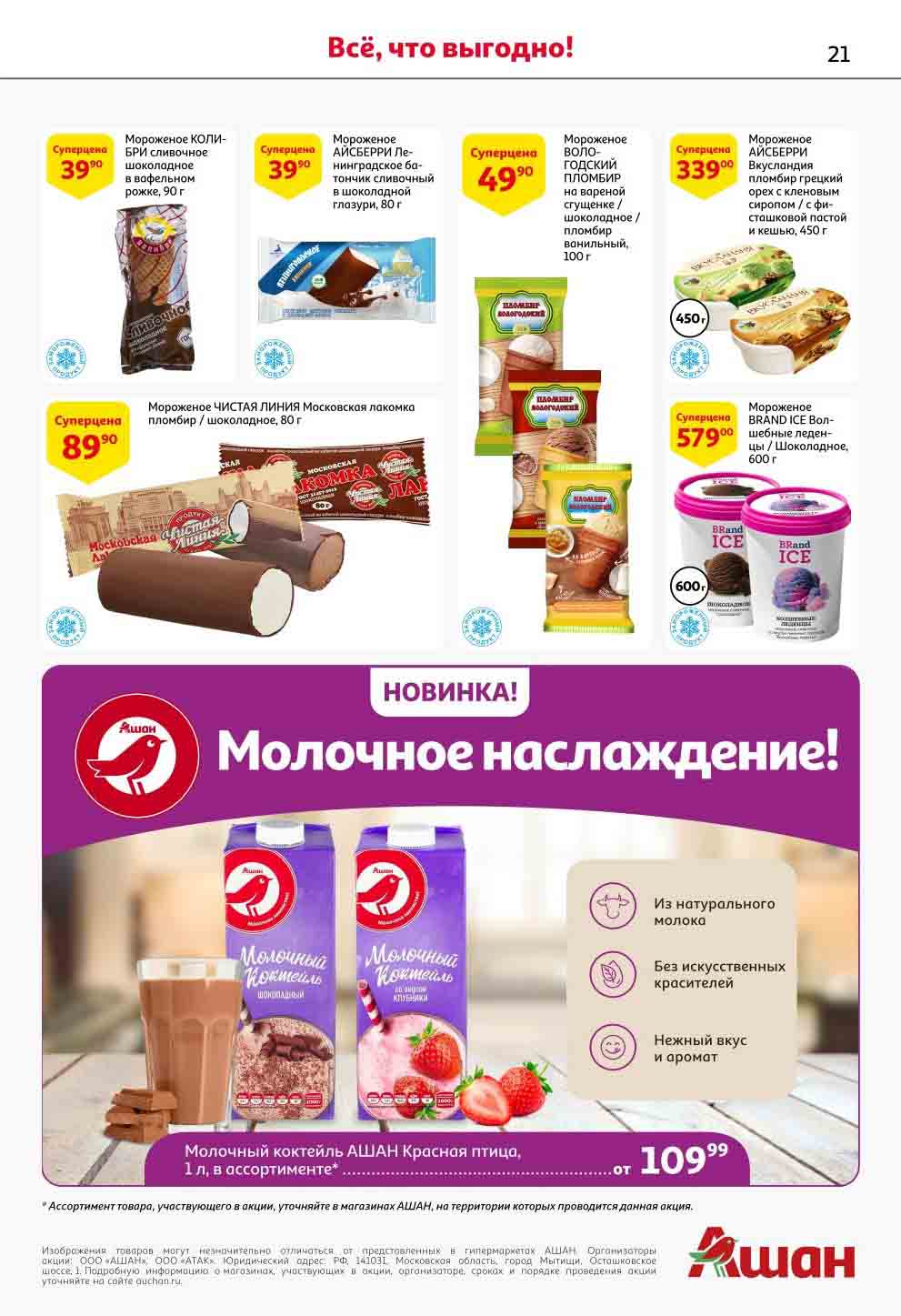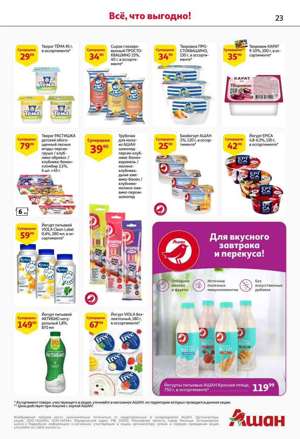 На страницах каталога Ашан вы найдете все свои любимые продукты, которые сейчас предлагаются в супермаркете. Не пропустите последние специальные предложения и сэкономьте на покупках. Предложение действительно при наличии товара на прилавках. Скидки на товары, указанные в каталоге, не суммируются с другими скидками. Изображения товаров могут незначительно отличаться от представленных на полках. Цены по акции Ашан действуют в городах: Москва. Балашиха. Химки. Подольск. Королев. Мытищи. Люберцы. Электросталь. Коломна. Одинцово. Железнодорожный, Серпухов, Орехово-Зуево. Красногорск, Щелково, Сергиев Посад, Пушкино. Жуковский, Ногинск, Раменское и многих других населенных пунктах Московского региона.