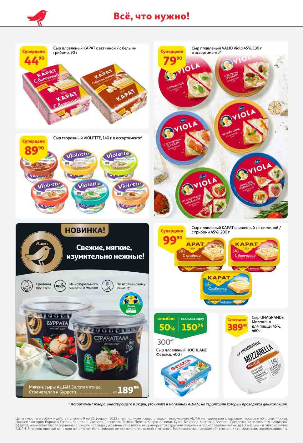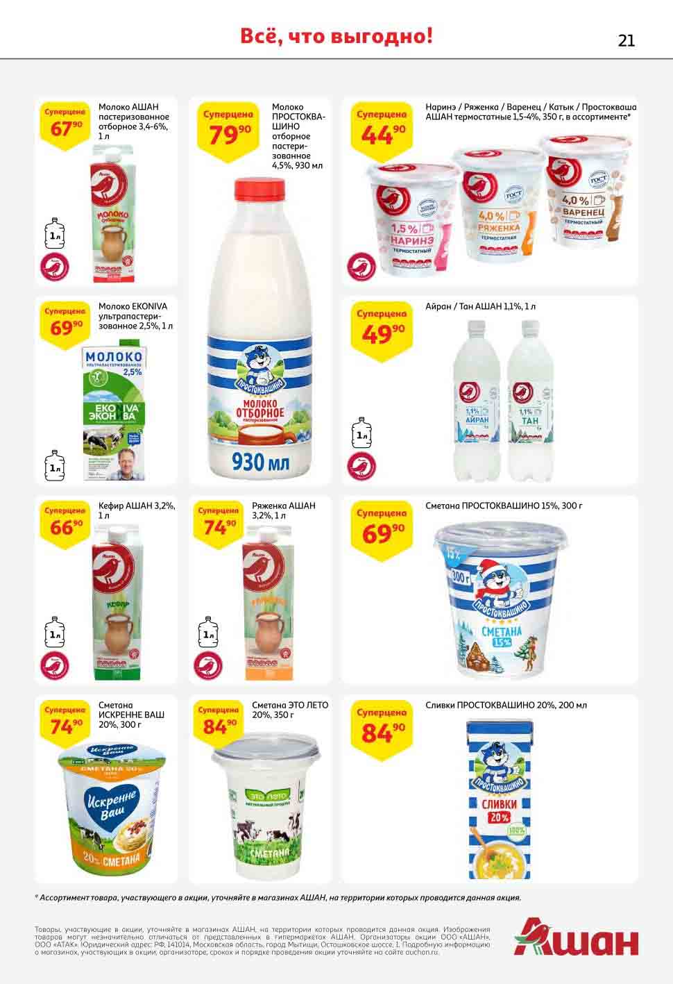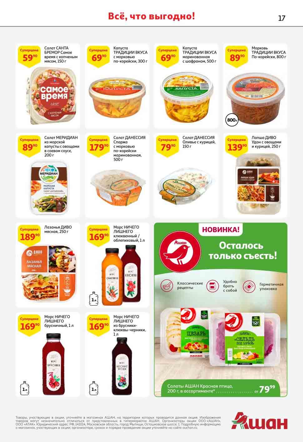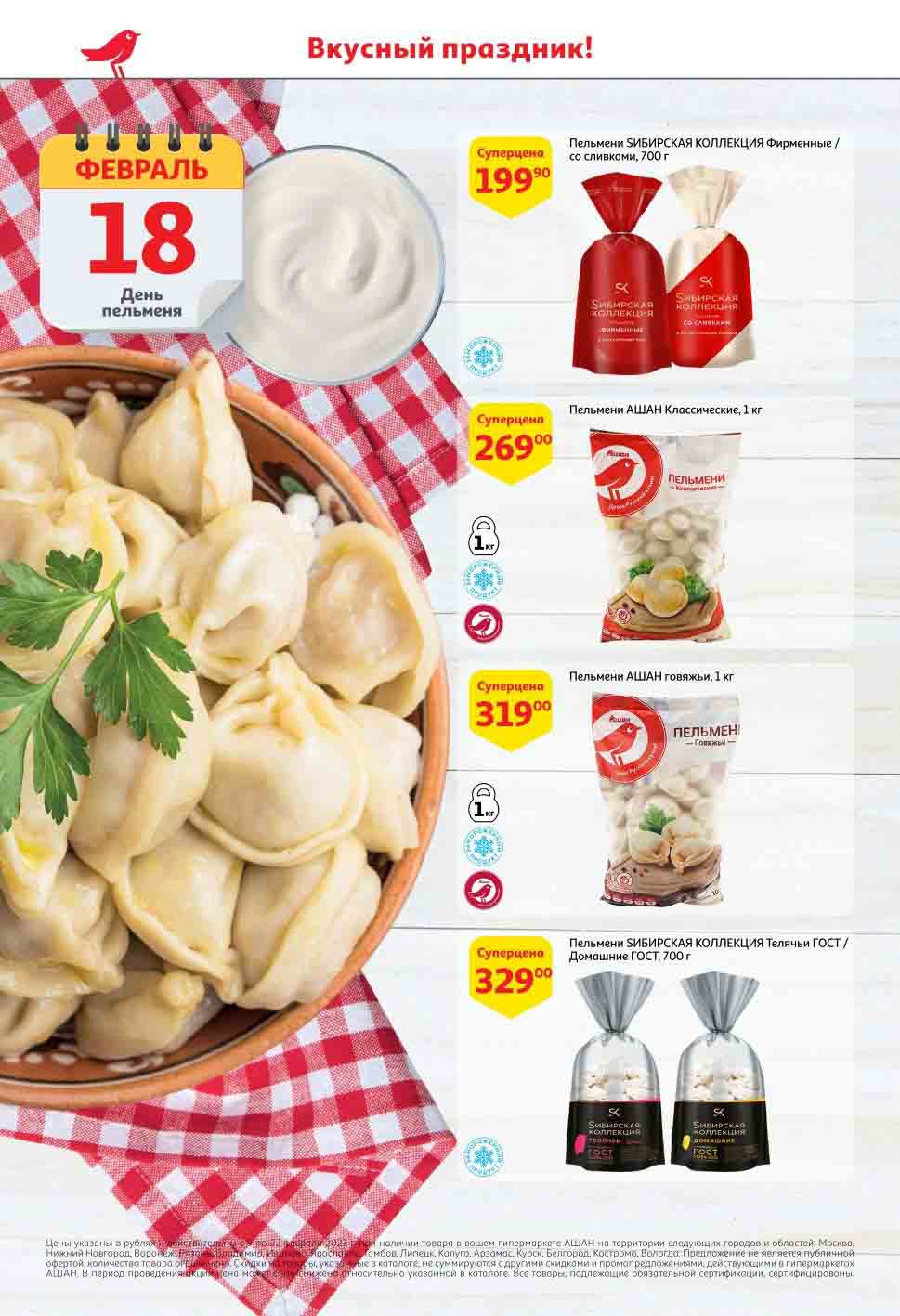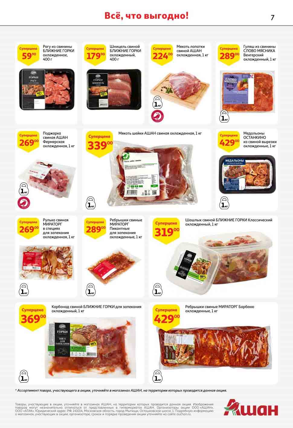 На страницах каталога Ашан вы найдете все свои любимые продукты, которые сейчас предлагаются в супермаркете. Не пропустите последние специальные предложения и сэкономьте на покупках. Предложение действительно при наличии товара на прилавках. Скидки на товары, указанные в каталоге, не суммируются с другими скидками. Изображения товаров могут незначительно отличаться от представленных на полках. Цены по акции Ашан действуют в городах: Москва. Балашиха. Химки. Подольск. Королев. Мытищи. Люберцы. Электросталь. Коломна. Одинцово. Железнодорожный, Серпухов, Орехово-Зуево. Красногорск, Щелково, Сергиев Посад, Пушкино. Жуковский, Ногинск, Раменское и многих других населенных пунктах Московского региона.