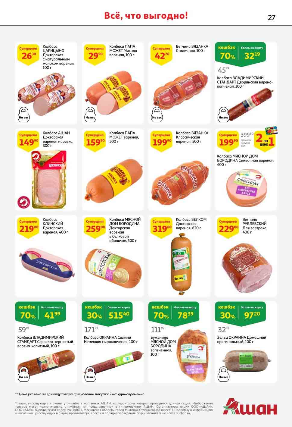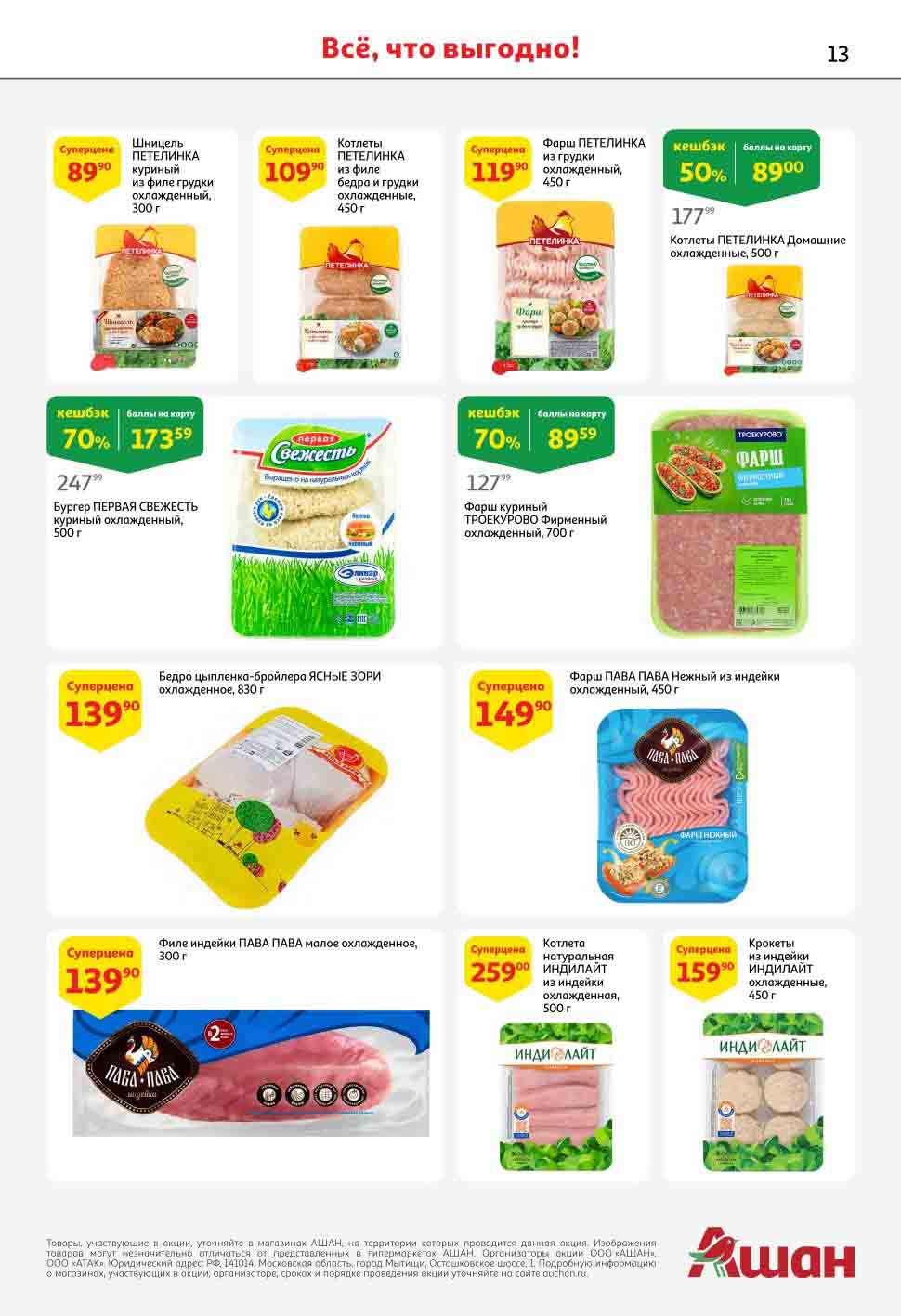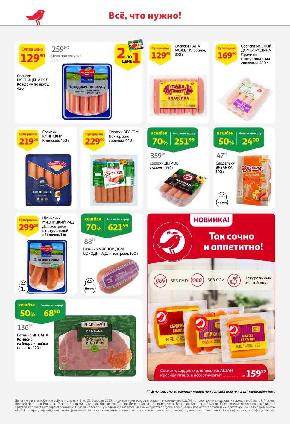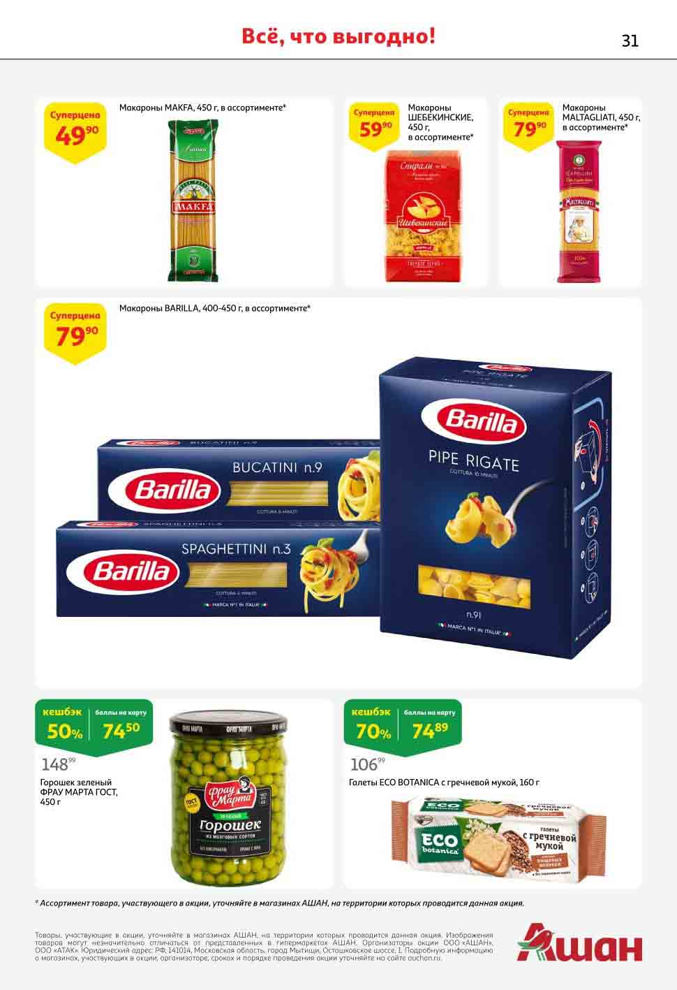 На страницах каталога Ашан вы найдете все свои любимые продукты, которые сейчас предлагаются в супермаркете. Не пропустите последние специальные предложения и сэкономьте на покупках. Предложение действительно при наличии товара на прилавках. Скидки на товары, указанные в каталоге, не суммируются с другими скидками. Изображения товаров могут незначительно отличаться от представленных на полках. Цены по акции Ашан действуют в городах: Москва. Балашиха. Химки. Подольск. Королев. Мытищи. Люберцы. Электросталь. Коломна. Одинцово. Железнодорожный, Серпухов, Орехово-Зуево. Красногорск, Щелково, Сергиев Посад, Пушкино. Жуковский, Ногинск, Раменское и многих других населенных пунктах Московского региона.