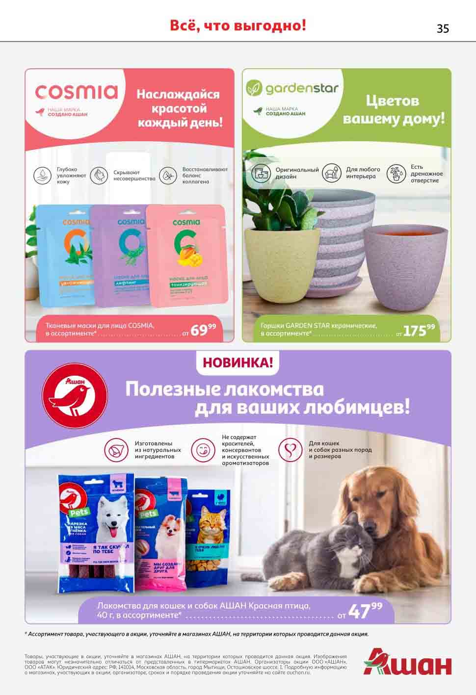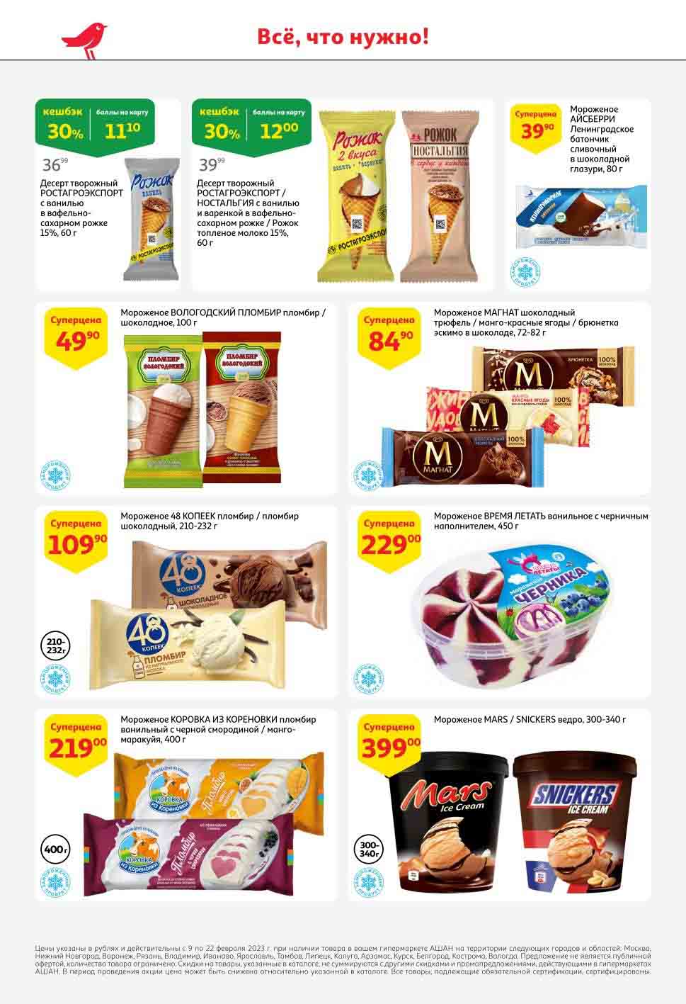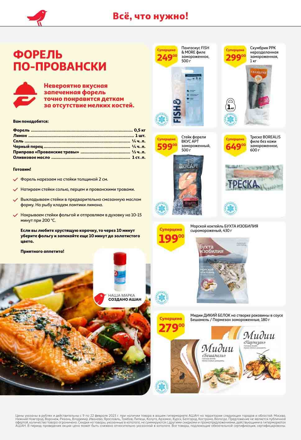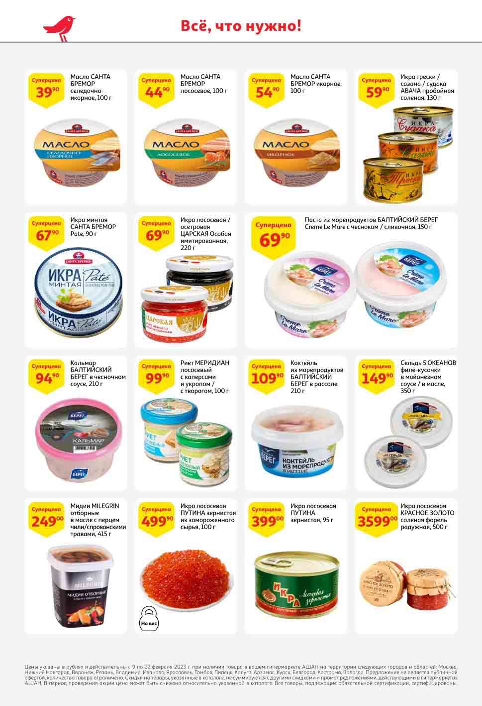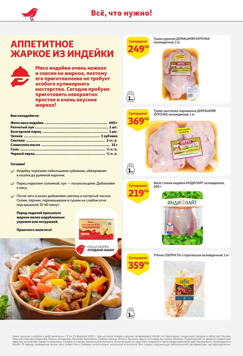 На страницах каталога Ашан вы найдете все свои любимые продукты, которые сейчас предлагаются в супермаркете. Не пропустите последние специальные предложения и сэкономьте на покупках. Предложение действительно при наличии товара на прилавках. Скидки на товары, указанные в каталоге, не суммируются с другими скидками. Изображения товаров могут незначительно отличаться от представленных на полках. Цены по акции Ашан действуют в городах: Москва. Балашиха. Химки. Подольск. Королев. Мытищи. Люберцы. Электросталь. Коломна. Одинцово. Железнодорожный, Серпухов, Орехово-Зуево. Красногорск, Щелково, Сергиев Посад, Пушкино. Жуковский, Ногинск, Раменское и многих других населенных пунктах Московского региона.