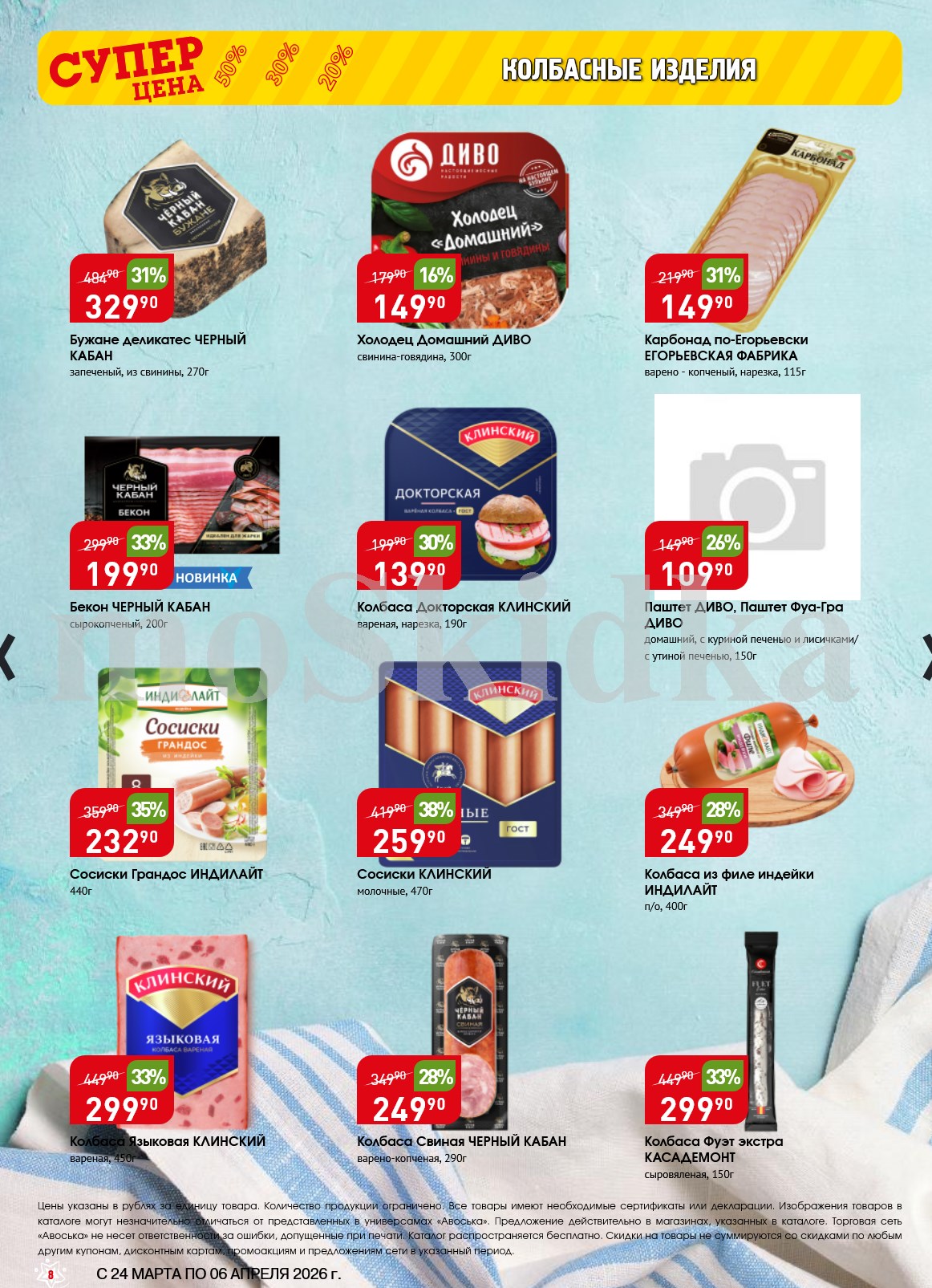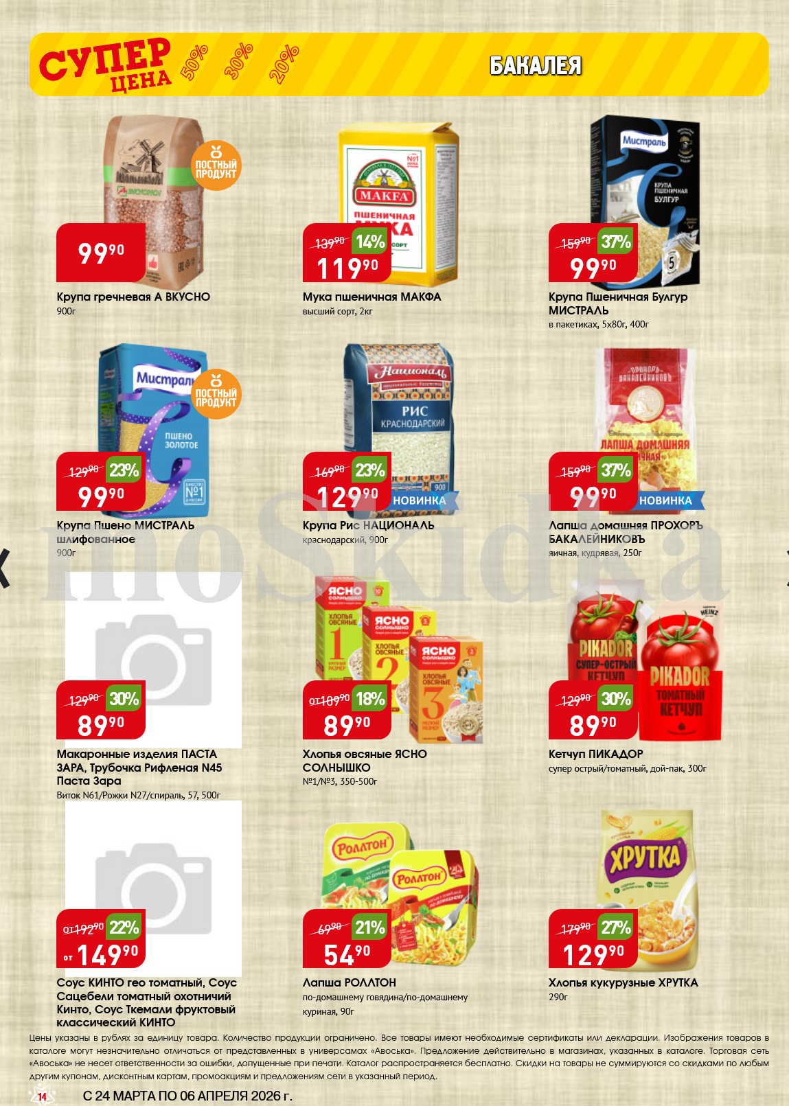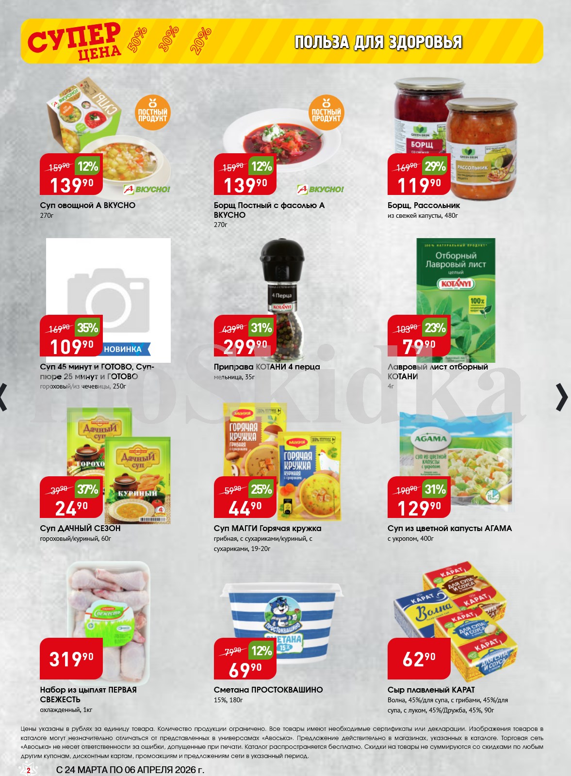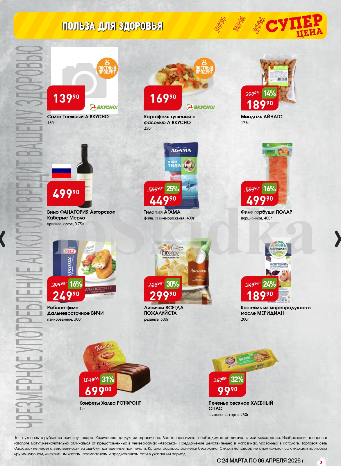Авоська акции с 24 марта — 6 апреля 2026. Сезонный каталог Дополнительные акции магазина:Авоська 16.03-22.03.2026 "Фрукты и овощи"Каталог Авоська 10.03-23.03.2026Авоська 16.02-11.04.2026 "Великий Пост"Авоська 19.01-31.05.2026 "Весенний сад" Пожалуйста, оставьте это поле пустым.Подпишитесь на уведомления о новых каталогах этого магазина Проверьте ваш почтовый ящик, чтобы подтвердить свою подписку. 0 0 голоса Рейтинг акции