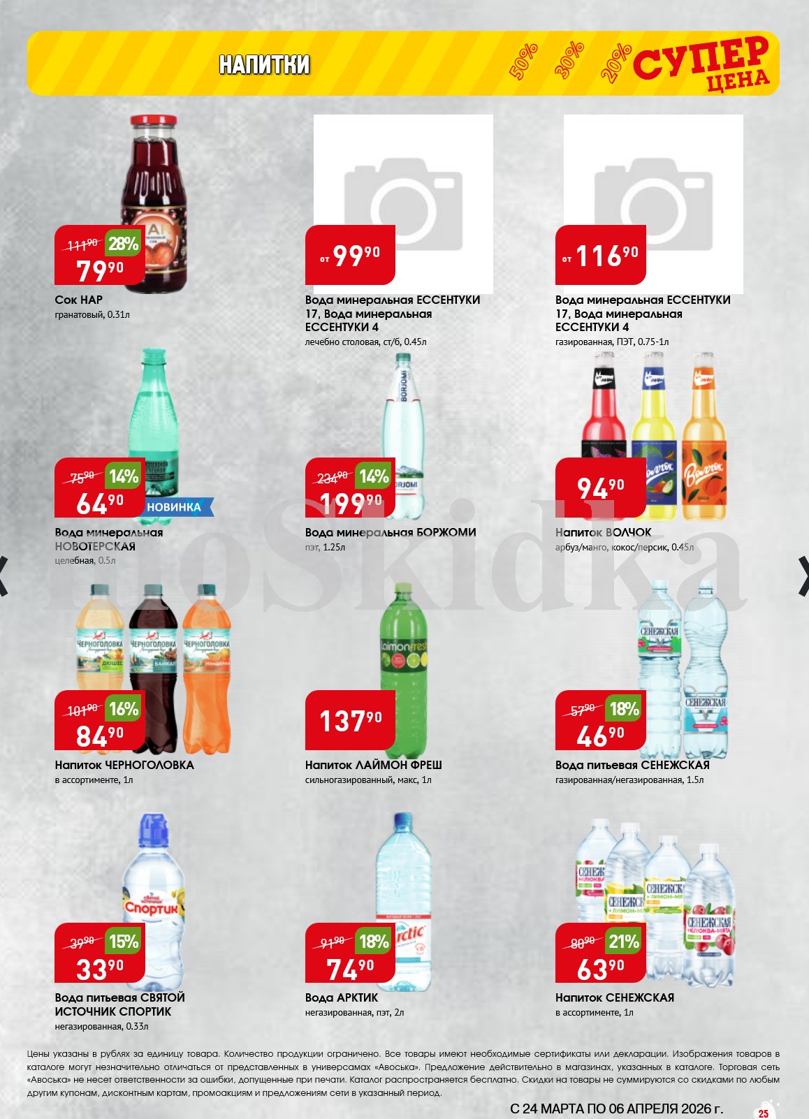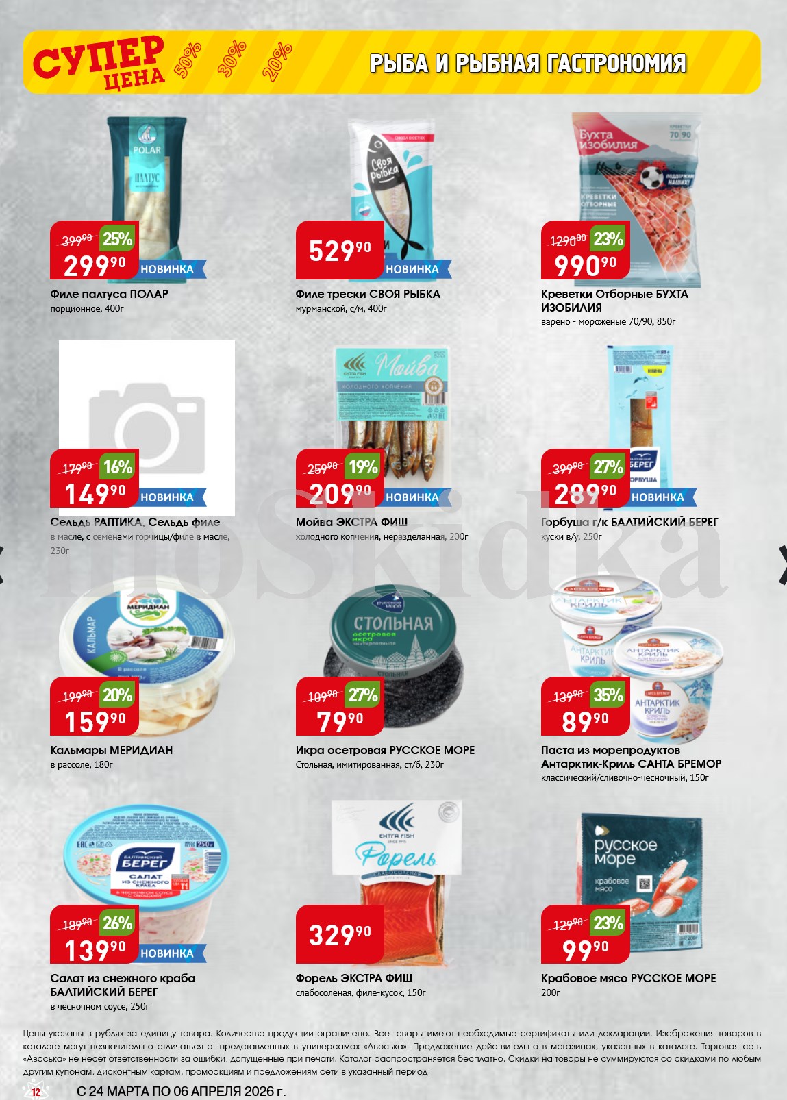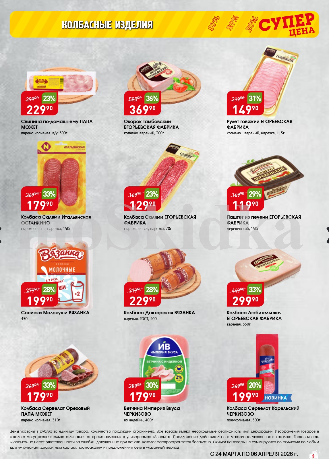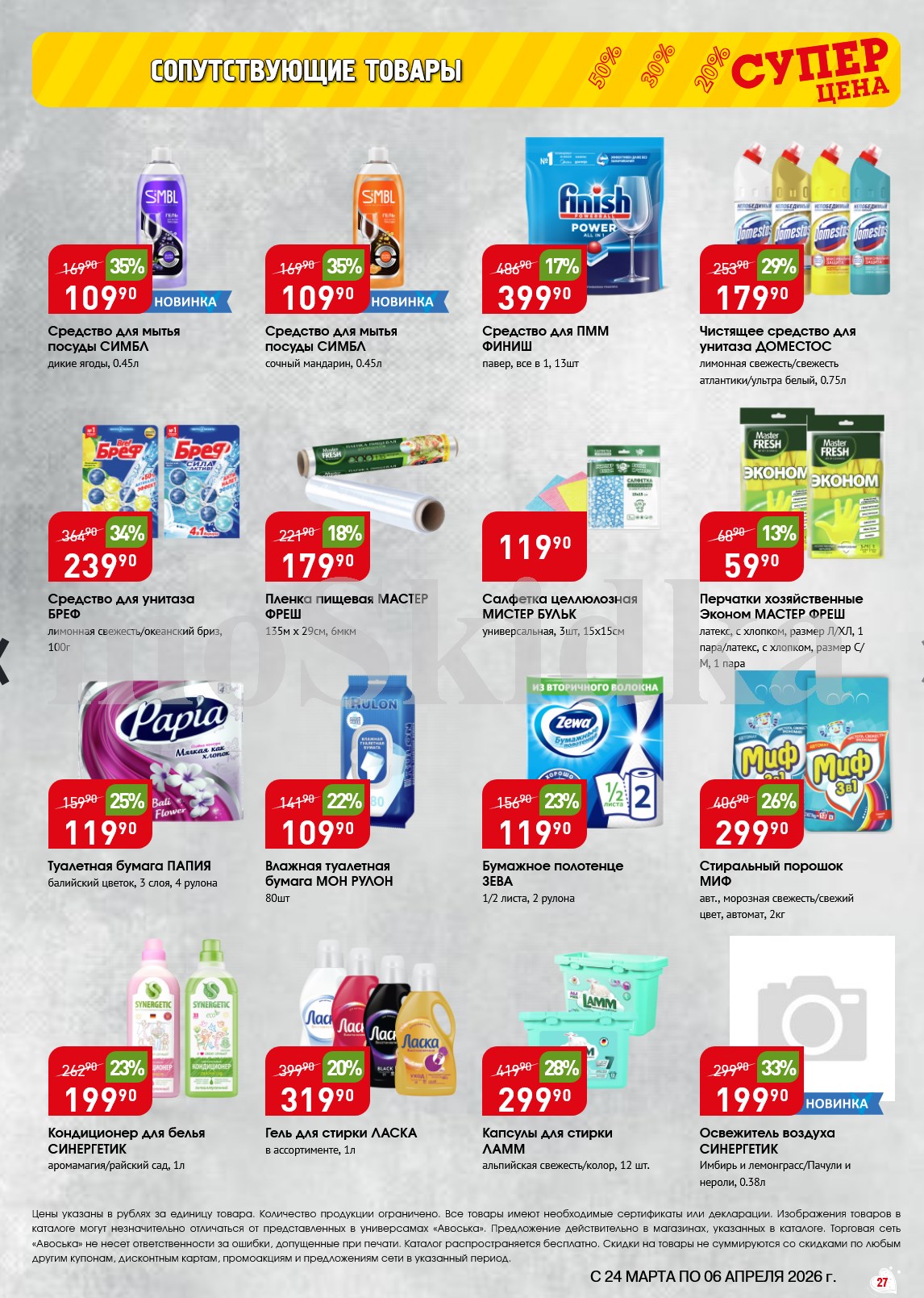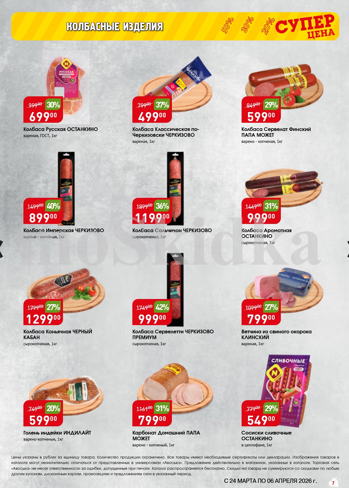 Авоська акции с 24 марта — 6 апреля 2026. Сезонный каталог Дополнительные акции магазина:Авоська 16.03-22.03.2026 "Фрукты и овощи"Каталог Авоська 10.03-23.03.2026Авоська 16.02-11.04.2026 "Великий Пост"Авоська 19.01-31.05.2026 "Весенний сад" Пожалуйста, оставьте это поле пустым.Подпишитесь на уведомления о новых каталогах этого магазина Проверьте ваш почтовый ящик, чтобы подтвердить свою подписку. 0 0 голоса Рейтинг акции
