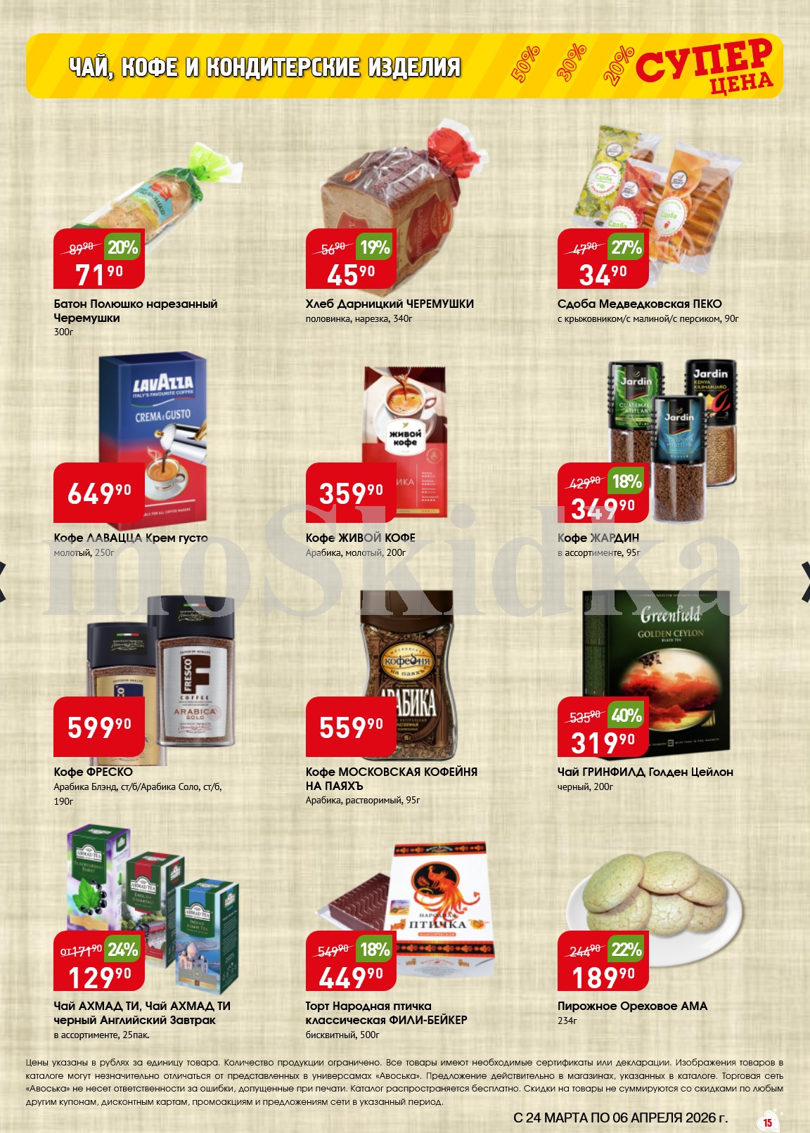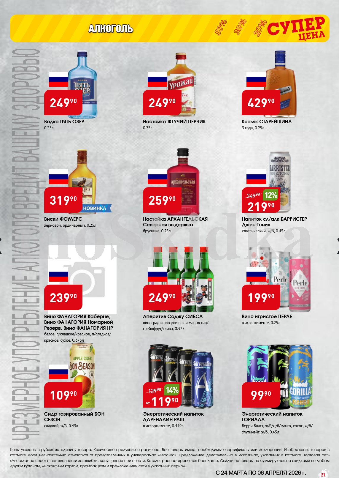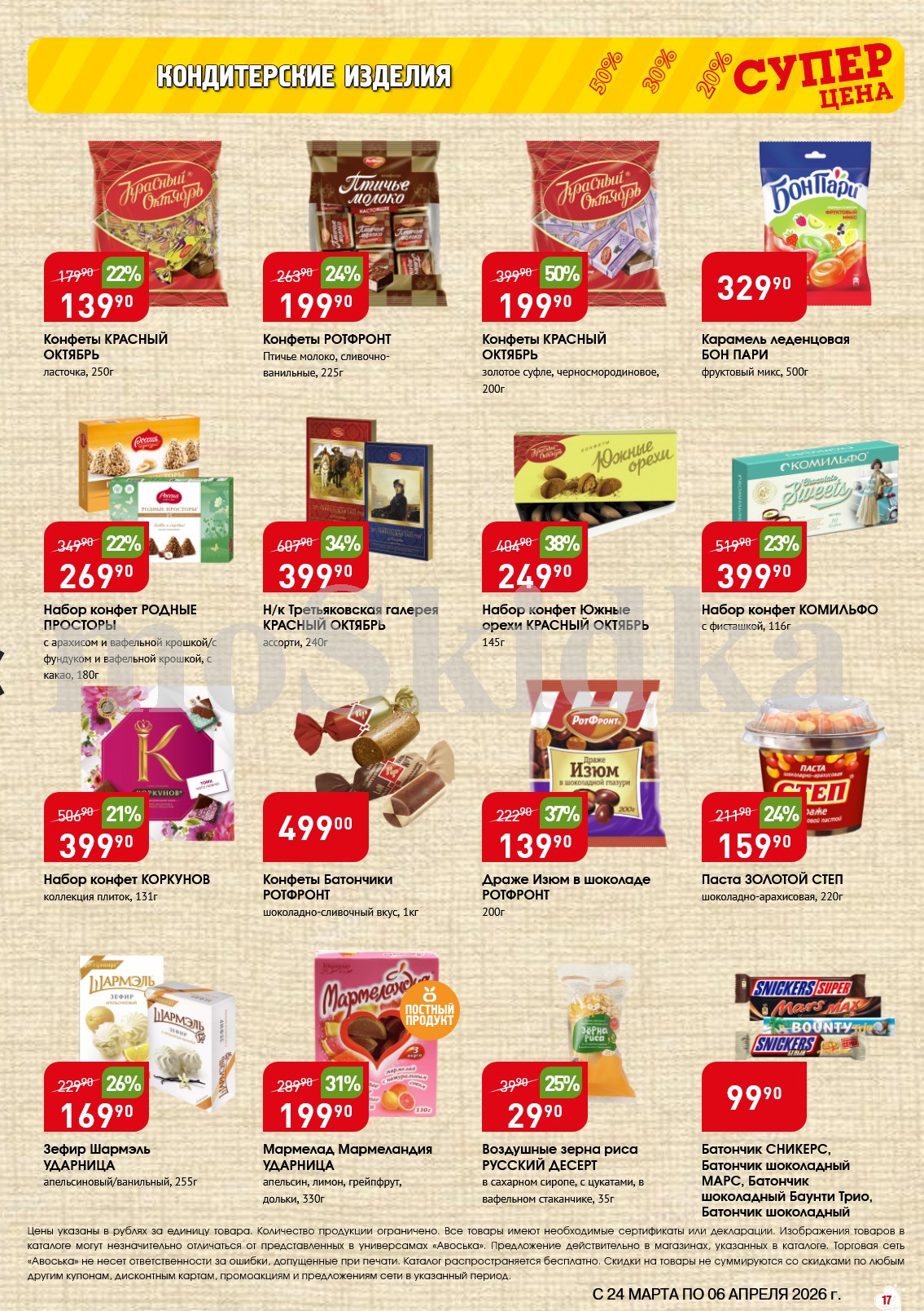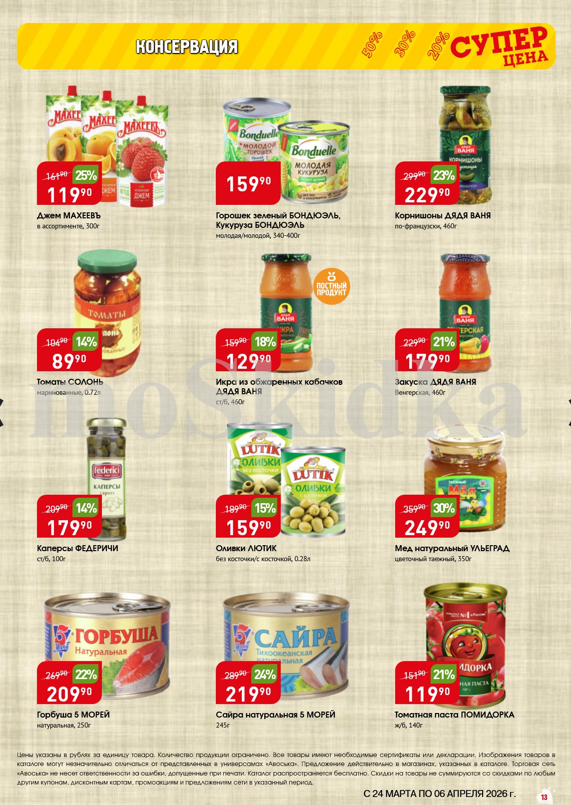 Авоська акции с 24 марта — 6 апреля 2026. Сезонный каталог Дополнительные акции магазина:Авоська 16.03-22.03.2026 "Фрукты и овощи"Каталог Авоська 10.03-23.03.2026Авоська 16.02-11.04.2026 "Великий Пост"Авоська 19.01-31.05.2026 "Весенний сад" Пожалуйста, оставьте это поле пустым.Подпишитесь на уведомления о новых каталогах этого магазина Проверьте ваш почтовый ящик, чтобы подтвердить свою подписку. 0 0 голоса Рейтинг акции