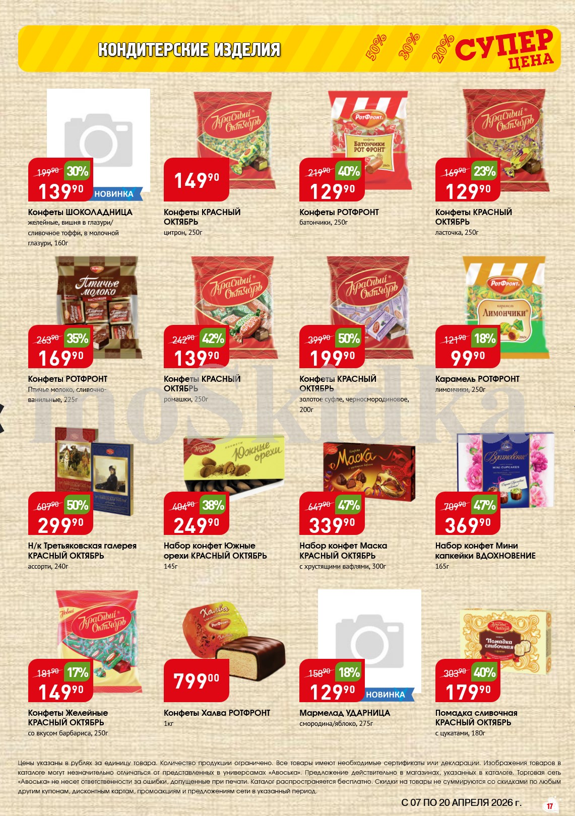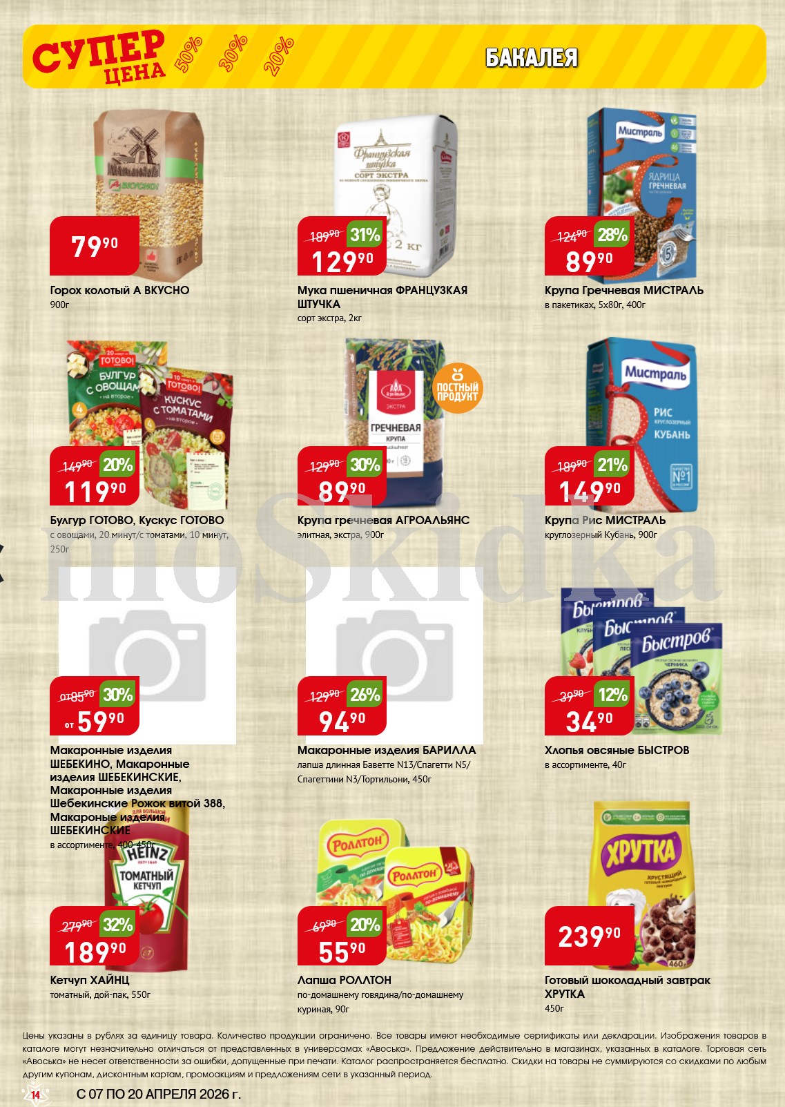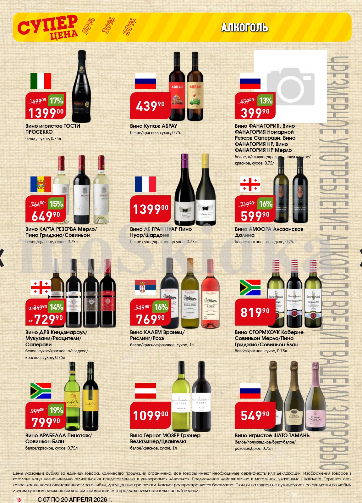 Авоська акции с 7 апреля — 20 апреля 2026. Сезонный каталог Пожалуйста, оставьте это поле пустым.Подпишитесь на уведомления о новых каталогах этого магазина Проверьте ваш почтовый ящик, чтобы подтвердить свою подписку. 5 1 голос Рейтинг акции
