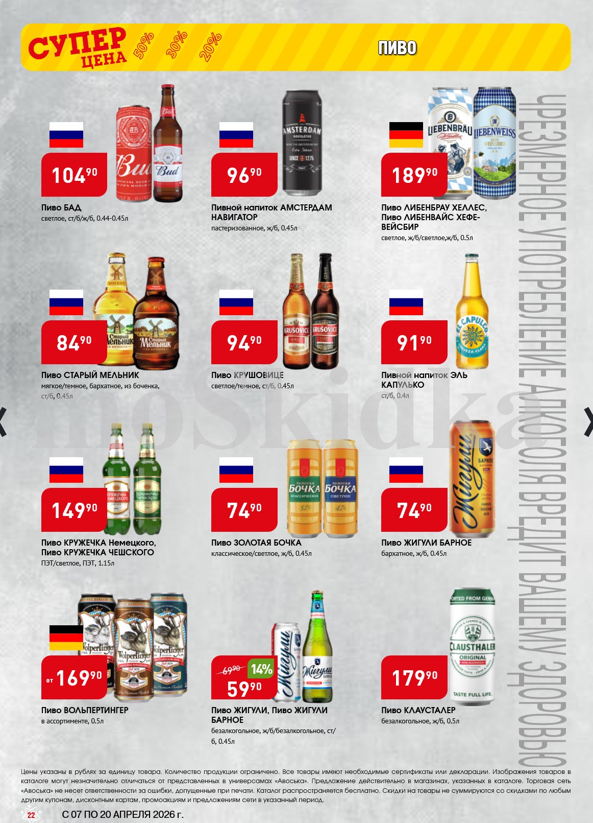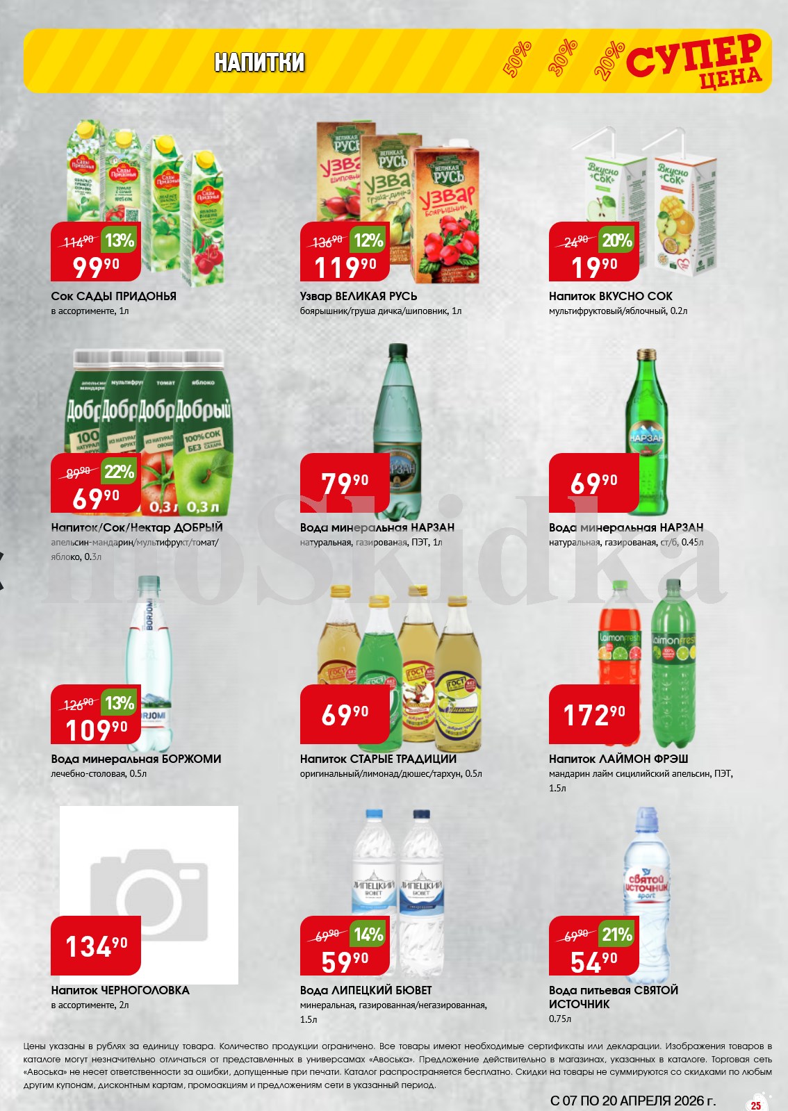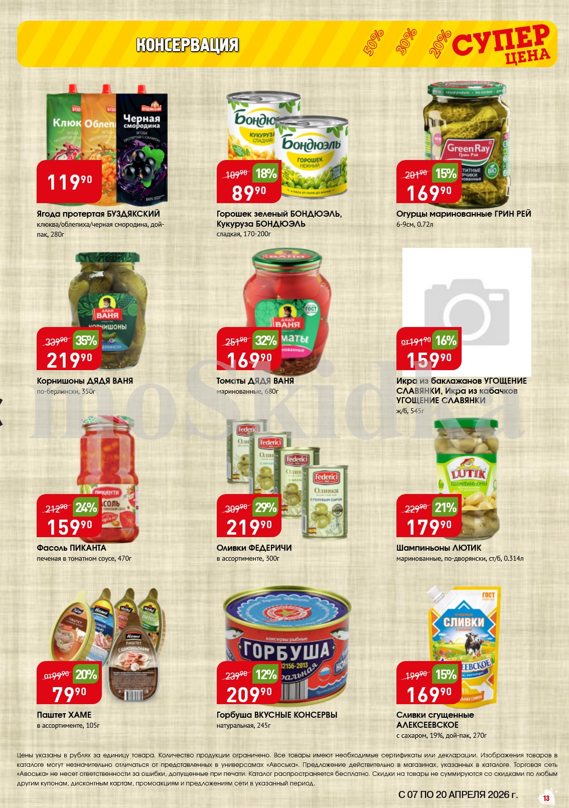 Авоська акции с 7 апреля — 20 апреля 2026. Сезонный каталог Пожалуйста, оставьте это поле пустым.Подпишитесь на уведомления о новых каталогах этого магазина Проверьте ваш почтовый ящик, чтобы подтвердить свою подписку. 5 1 голос Рейтинг акции