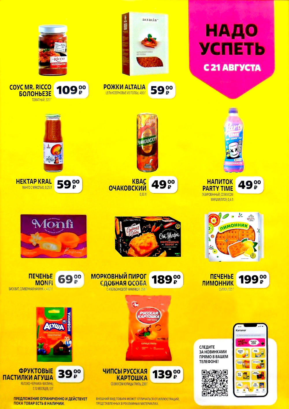 На страницах каталога Чижик вы найдете все свои любимые товары, которые сейчас предлагаются в супермаркете. Не пропустите последние специальные предложения и сэкономьте на покупках. Предложение ограниченно и действует в указанные сроки и пока товар есть в наличии. Внешний вид товара может отличаться от представленных изображений. Подробности об правилах и скидках узнавайте в магазинах сети. Цены по акции Чижик действуют в городах: Москва, Балашиха, Химки, Подольск, Королев, Мытищи, Люберцы, Электросталь, Коломна, Одинцово, Железнодорожный, Серпухов, Орехово-Зуево, Красногорск, Щелково, Сергиев Посад, Пушкино, Жуковский, Ногинск, Раменское, Клин, Воскресенск, Домодедово и многих других населенных пунктах Московского региона.