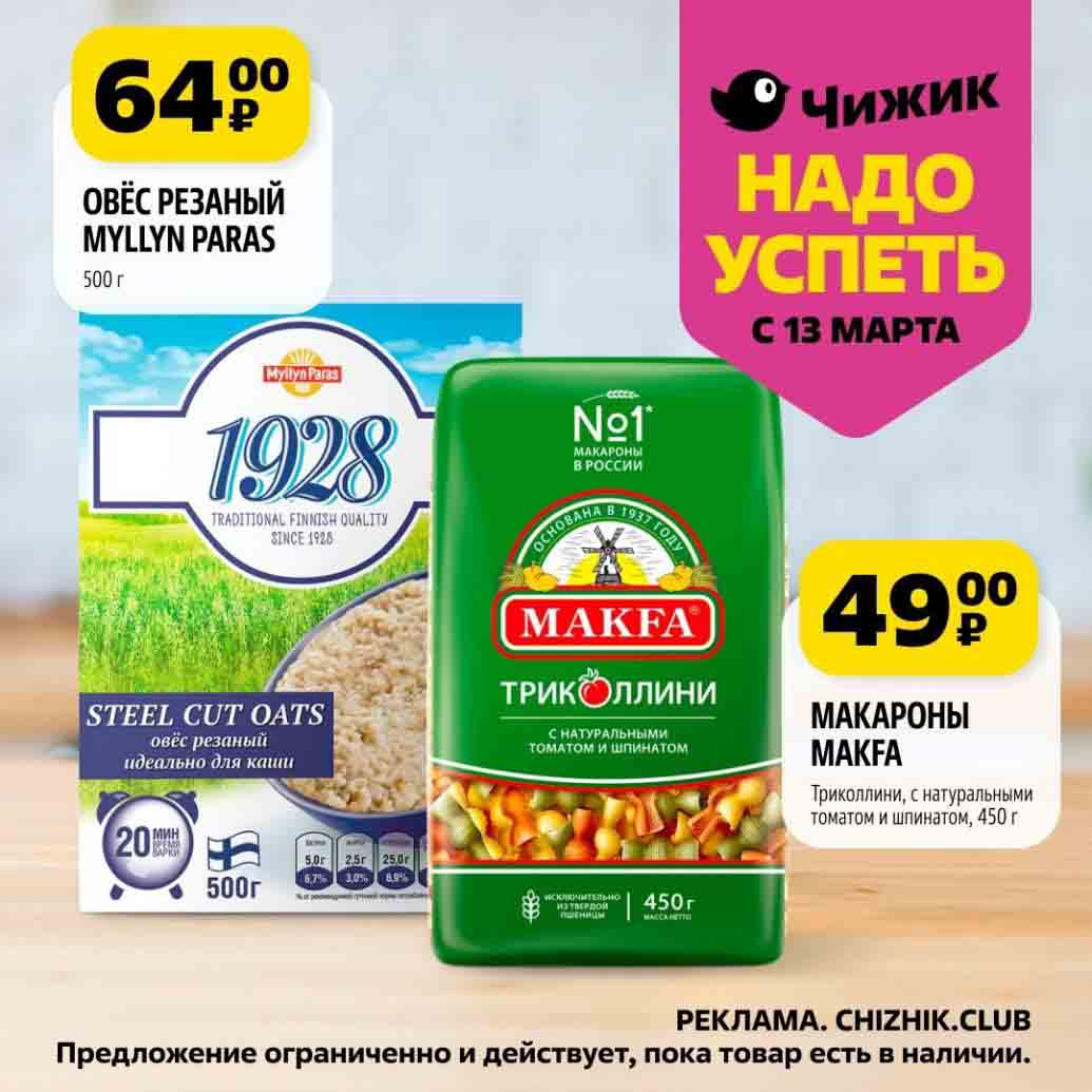На страницах каталога Чижик вы найдете все свои любимые товары, которые сейчас предлагаются в супермаркете. Не пропустите последние специальные предложения и сэкономьте на покупках. Предложение ограниченно и действует в указанные сроки и пока товар есть в наличии. Внешний вид товара может отличаться от представленных изображений. Подробности об правилах и скидках узнавайте в магазинах сети. Цены по акции Чижик действуют в городах: Москва, Балашиха, Химки, Подольск, Королев, Мытищи, Люберцы, Электросталь, Коломна, Одинцово, Железнодорожный, Серпухов, Орехово-Зуево, Красногорск, Щелково, Сергиев Посад, Пушкино, Жуковский, Ногинск, Раменское, Клин, Воскресенск, Домодедово и многих других населенных пунктах Московского региона.