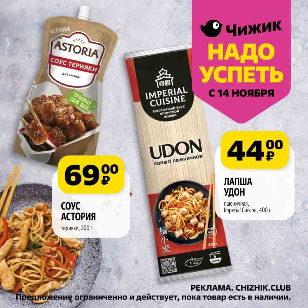На страницах каталога Чижик вы найдете все свои любимые товары, которые сейчас предлагаются в супермаркете. Не пропустите последние специальные предложения и сэкономьте на покупках. Предложение ограниченно и действует в указанные сроки и пока товар есть в наличии. Внешний вид товара может отличаться от представленных изображений. Подробности об правилах и скидках узнавайте в магазинах сети. Цены по акции Чижик действуют в городах: Москва, Балашиха, Химки, Подольск, Королев, Мытищи, Люберцы, Электросталь, Коломна, Одинцово, Железнодорожный, Серпухов, Орехово-Зуево, Красногорск, Щелково, Сергиев Посад, Пушкино, Жуковский, Ногинск, Раменское, Клин, Воскресенск, Домодедово и многих других населенных пунктах Московского региона.