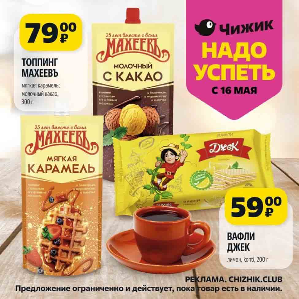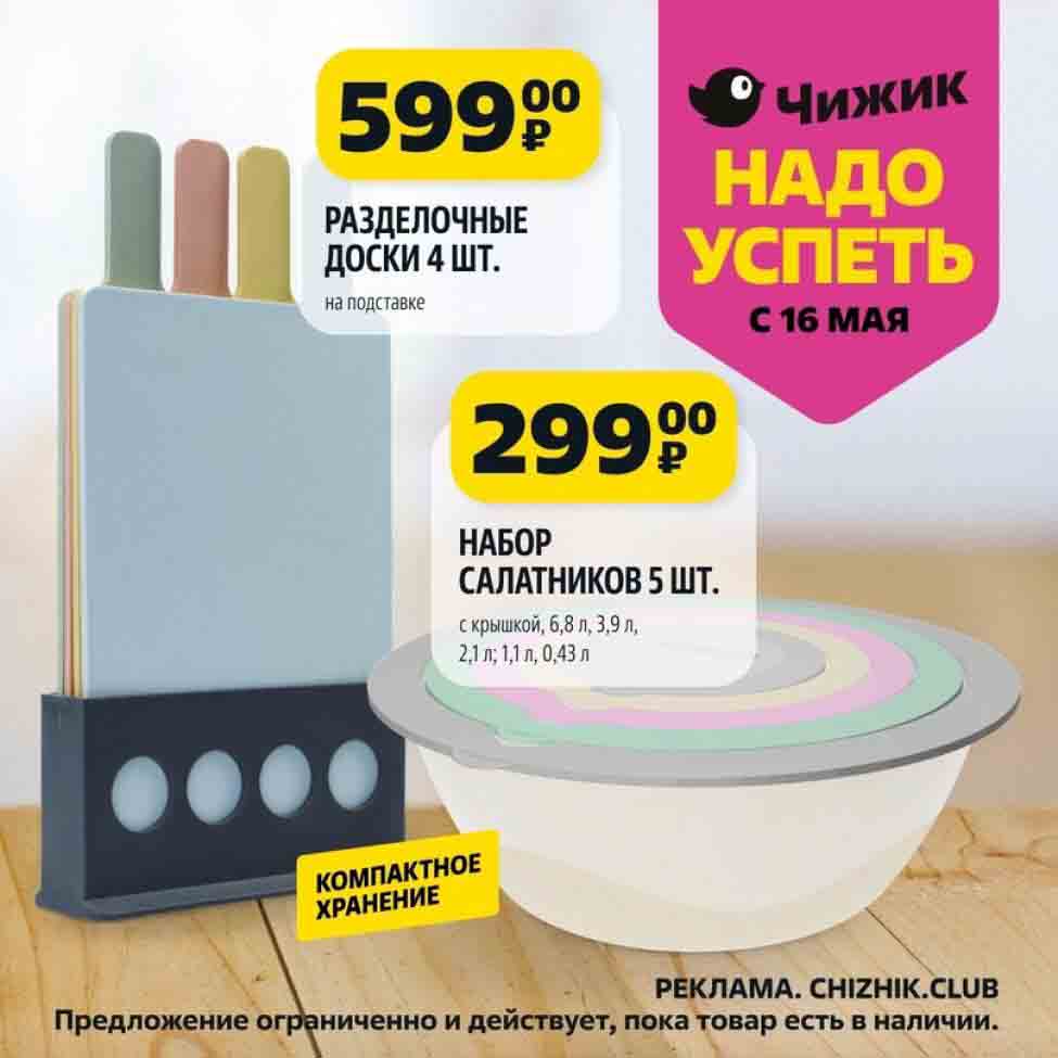 На страницах каталога Чижик вы найдете все свои любимые товары, которые сейчас предлагаются в супермаркете. Не пропустите последние специальные предложения и сэкономьте на покупках. Предложение ограниченно и действует в указанные сроки и пока товар есть в наличии. Внешний вид товара может отличаться от представленных изображений. Подробности об правилах и скидках узнавайте в магазинах сети. Цены по акции Чижик действуют в городах: Москва, Балашиха, Химки, Подольск, Королев, Мытищи, Люберцы, Электросталь, Коломна, Одинцово, Железнодорожный, Серпухов, Орехово-Зуево, Красногорск, Щелково, Сергиев Посад, Пушкино, Жуковский, Ногинск, Раменское, Клин, Воскресенск, Домодедово и многих других населенных пунктах Московского региона.