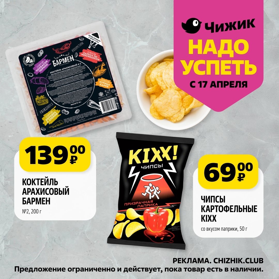 На страницах каталога Чижик вы найдете все свои любимые товары, которые сейчас предлагаются в супермаркете. Не пропустите последние специальные предложения и сэкономьте на покупках. Предложение ограниченно и действует в указанные сроки и пока товар есть в наличии. Внешний вид товара может отличаться от представленных изображений. Подробности об правилах и скидках узнавайте в магазинах сети. Цены по акции Чижик действуют в городах: Москва, Балашиха, Химки, Подольск, Королев, Мытищи, Люберцы, Электросталь, Коломна, Одинцово, Железнодорожный, Серпухов, Орехово-Зуево, Красногорск, Щелково, Сергиев Посад, Пушкино, Жуковский, Ногинск, Раменское, Клин, Воскресенск, Домодедово и многих других населенных пунктах Московского региона.
