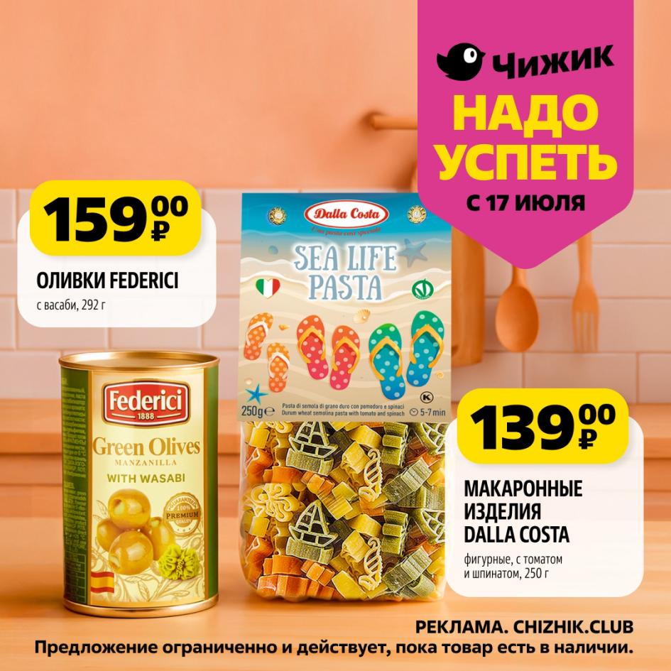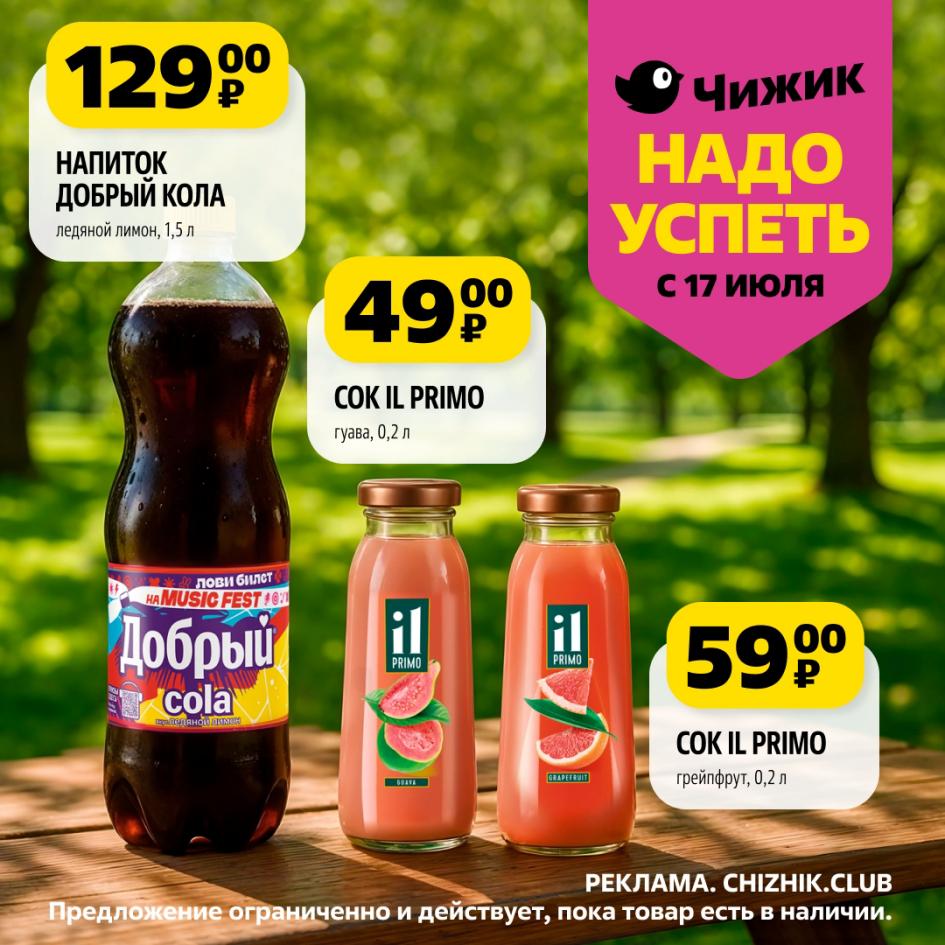 На страницах каталога Чижик вы найдете все свои любимые товары, которые сейчас предлагаются в супермаркете. Не пропустите последние специальные предложения и сэкономьте на покупках. Предложение ограниченно и действует в указанные сроки и пока товар есть в наличии. Внешний вид товара может отличаться от представленных изображений. Подробности об правилах и скидках узнавайте в магазинах сети. Цены по акции Чижик действуют в городах: Москва, Балашиха, Химки, Подольск, Королев, Мытищи, Люберцы, Электросталь, Коломна, Одинцово, Железнодорожный, Серпухов, Орехово-Зуево, Красногорск, Щелково, Сергиев Посад, Пушкино, Жуковский, Ногинск, Раменское, Клин, Воскресенск, Домодедово и многих других населенных пунктах Московского региона.