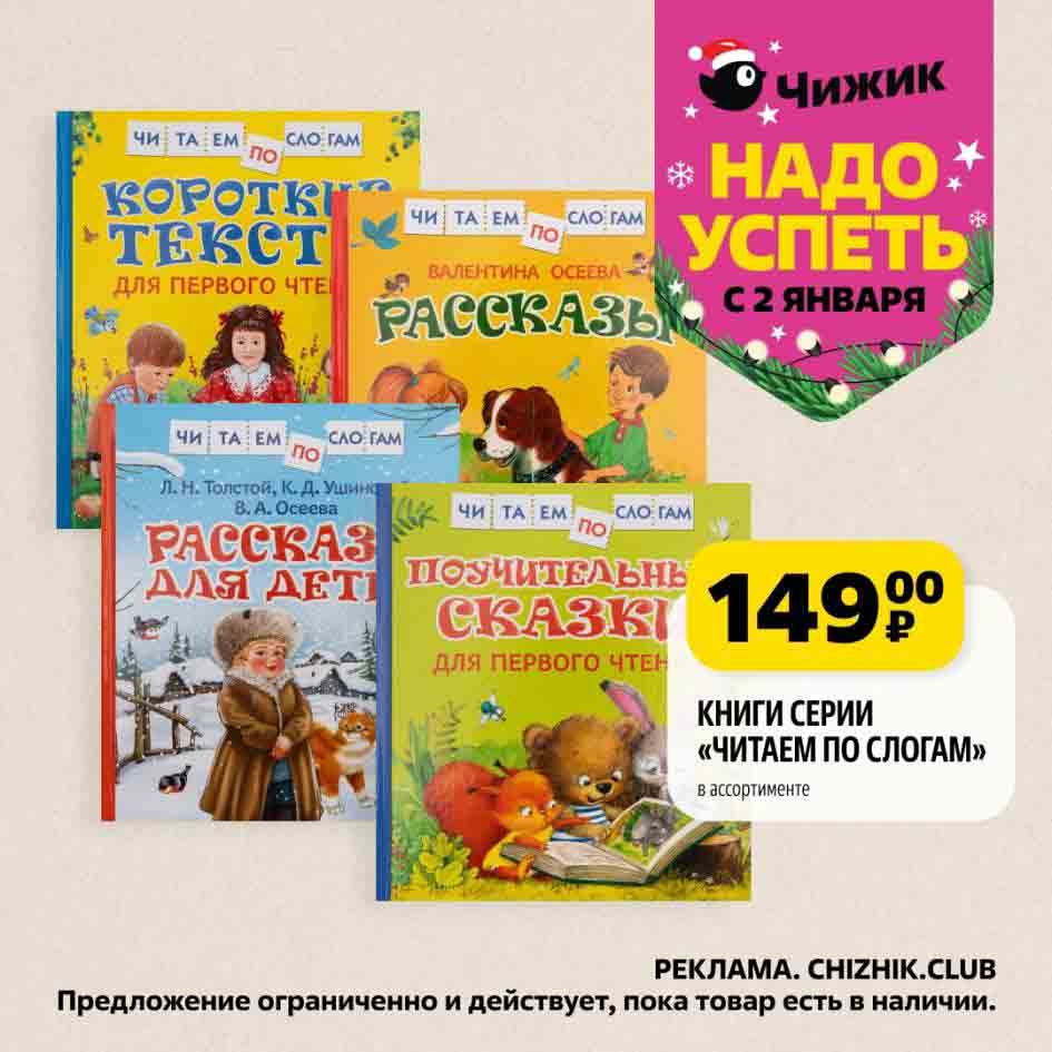 На страницах каталога Чижик вы найдете все свои любимые товары, которые сейчас предлагаются в супермаркете. Не пропустите последние специальные предложения и сэкономьте на покупках. Предложение ограниченно и действует в указанные сроки и пока товар есть в наличии. Внешний вид товара может отличаться от представленных изображений. Подробности об правилах и скидках узнавайте в магазинах сети. Цены по акции Чижик действуют в городах: Москва, Балашиха, Химки, Подольск, Королев, Мытищи, Люберцы, Электросталь, Коломна, Одинцово, Железнодорожный, Серпухов, Орехово-Зуево, Красногорск, Щелково, Сергиев Посад, Пушкино, Жуковский, Ногинск, Раменское, Клин, Воскресенск, Домодедово и многих других населенных пунктах Московского региона.