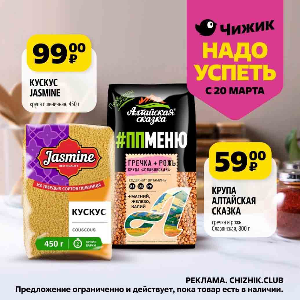 На страницах каталога Чижик вы найдете все свои любимые товары, которые сейчас предлагаются в супермаркете. Не пропустите последние специальные предложения и сэкономьте на покупках. Предложение ограниченно и действует в указанные сроки и пока товар есть в наличии. Внешний вид товара может отличаться от представленных изображений. Подробности об правилах и скидках узнавайте в магазинах сети. Цены по акции Чижик действуют в городах: Москва, Балашиха, Химки, Подольск, Королев, Мытищи, Люберцы, Электросталь, Коломна, Одинцово, Железнодорожный, Серпухов, Орехово-Зуево, Красногорск, Щелково, Сергиев Посад, Пушкино, Жуковский, Ногинск, Раменское, Клин, Воскресенск, Домодедово и многих других населенных пунктах Московского региона.