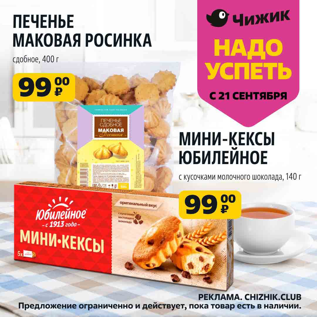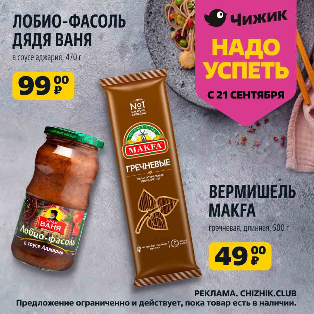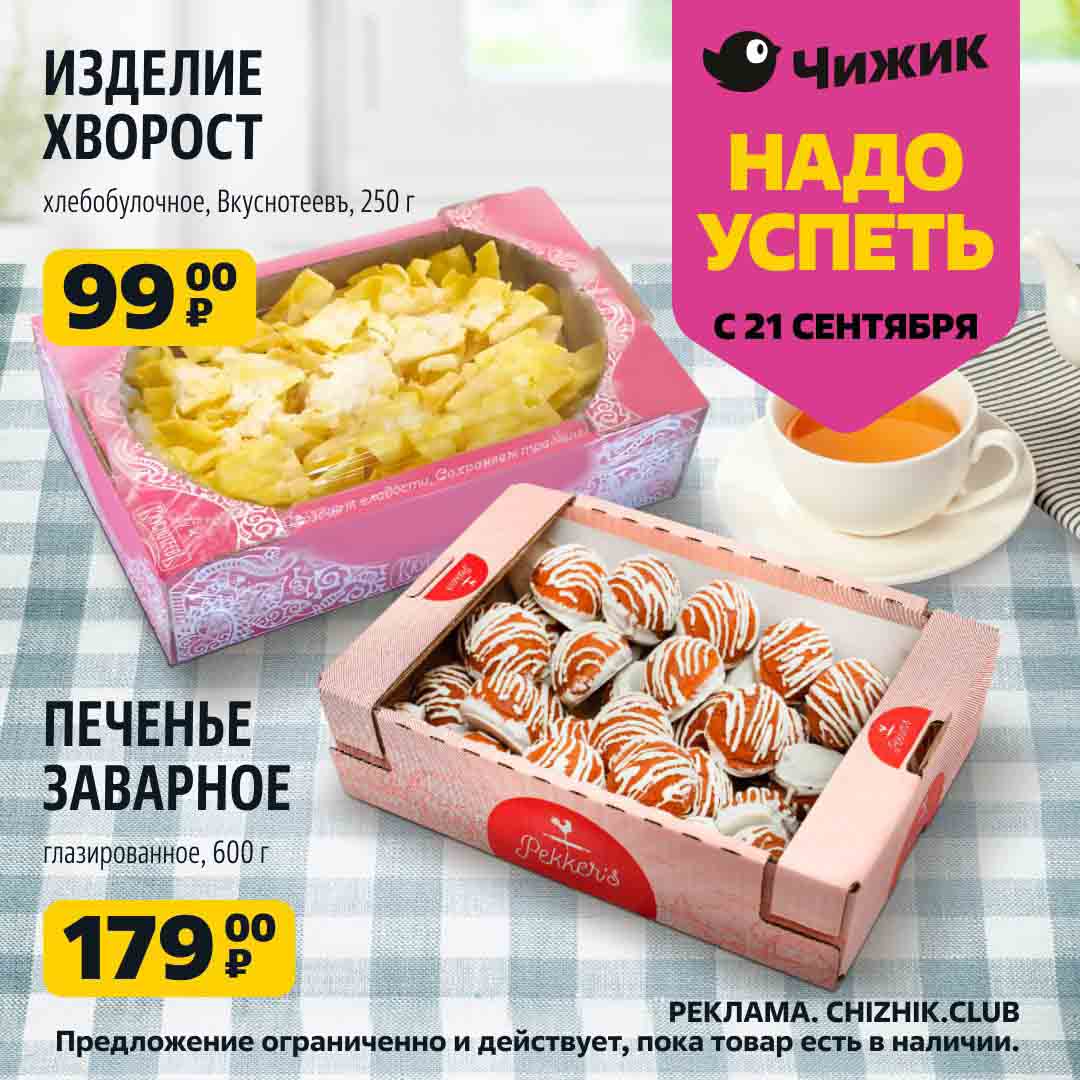 На страницах каталога Чижик вы найдете все свои любимые товары, которые сейчас предлагаются в супермаркете. Не пропустите последние специальные предложения и сэкономьте на покупках. Предложение ограниченно и действует в указанные сроки и пока товар есть в наличии. Внешний вид товара может отличаться от представленных изображений. Подробности об правилах и скидках узнавайте в магазинах сети. Цены по акции Чижик действуют в городах: Москва, Балашиха, Химки, Подольск, Королев, Мытищи, Люберцы, Электросталь, Коломна, Одинцово, Железнодорожный, Серпухов, Орехово-Зуево, Красногорск, Щелково, Сергиев Посад, Пушкино, Жуковский, Ногинск, Раменское, Клин, Воскресенск, Домодедово и многих других населенных пунктах Московского региона.