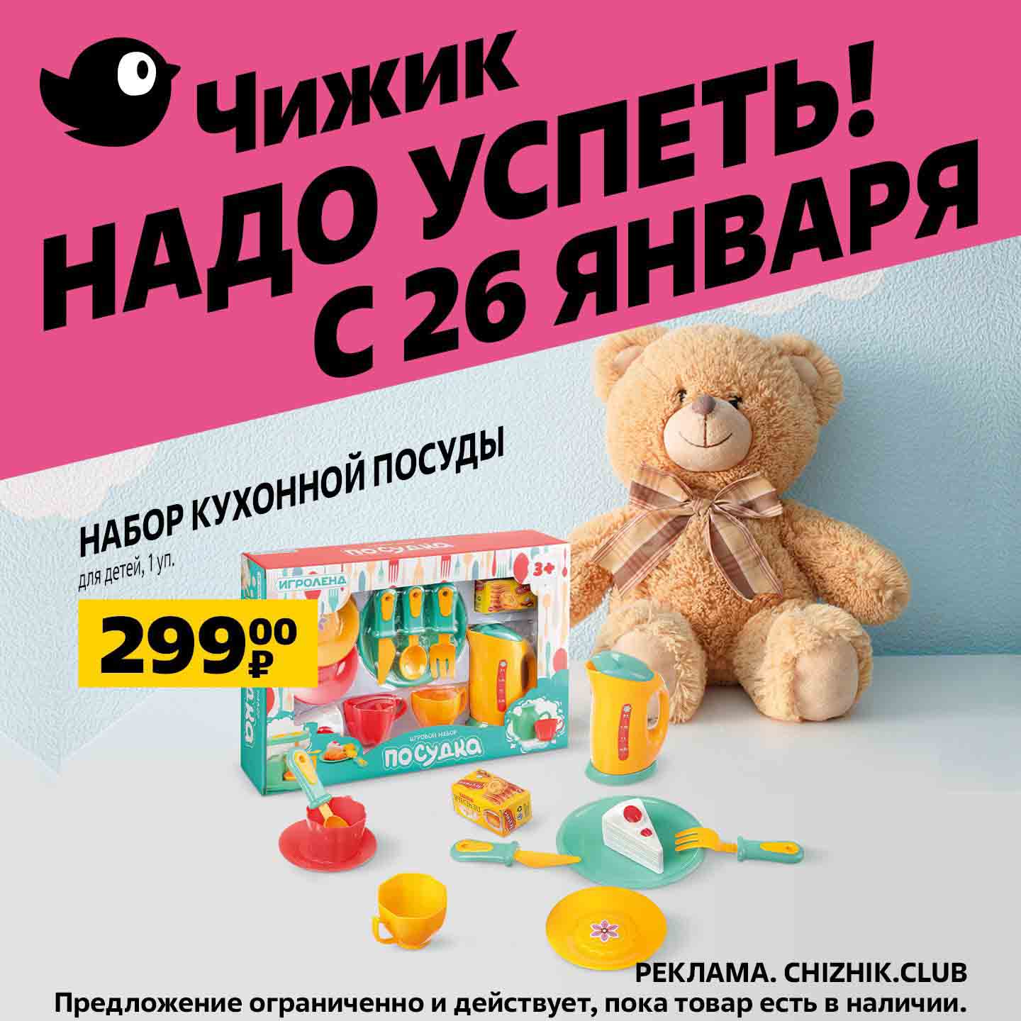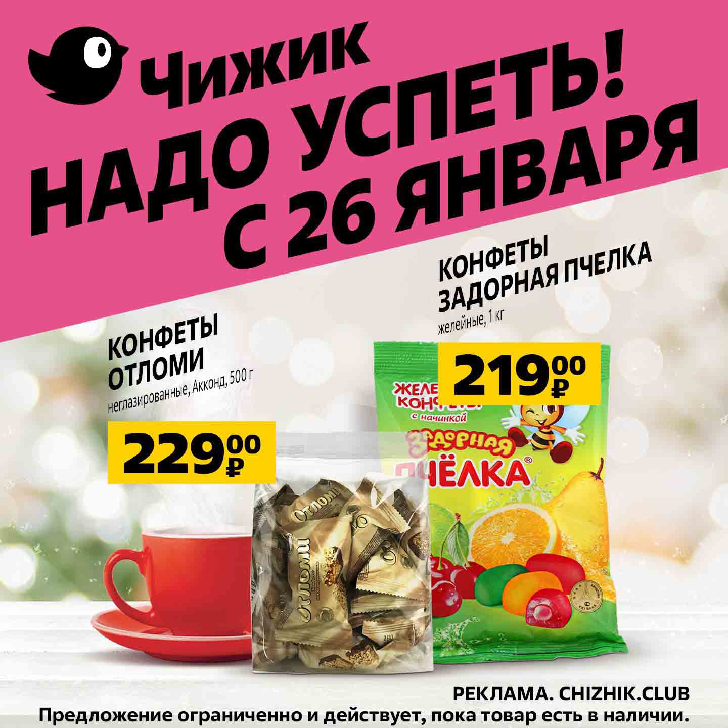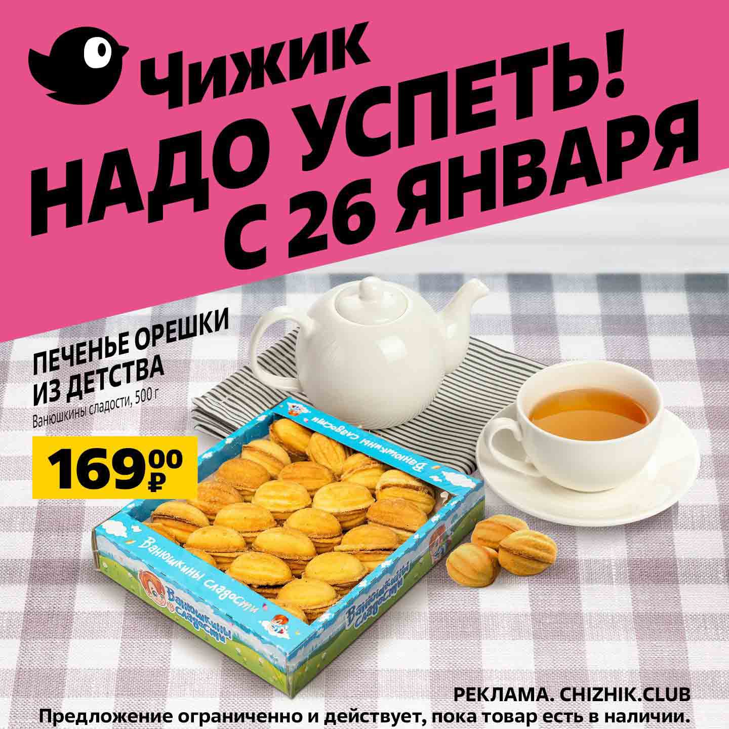 На страницах каталога Чижик вы найдете все свои любимые товары, которые сейчас предлагаются в супермаркете. Не пропустите последние специальные предложения и сэкономьте на покупках. Предложение ограниченно и действует в указанные сроки и пока товар есть в наличии. Внешний вид товара может отличаться от представленных изображений. Подробности об правилах и скидках узнавайте в магазинах сети. Цены по акции Чижик действуют в городах: Москва, Балашиха, Химки, Подольск, Королев, Мытищи, Люберцы, Электросталь, Коломна, Одинцово, Железнодорожный, Серпухов, Орехово-Зуево, Красногорск, Щелково, Сергиев Посад, Пушкино, Жуковский, Ногинск, Раменское, Клин, Воскресенск, Домодедово и многих других населенных пунктах Московского региона.