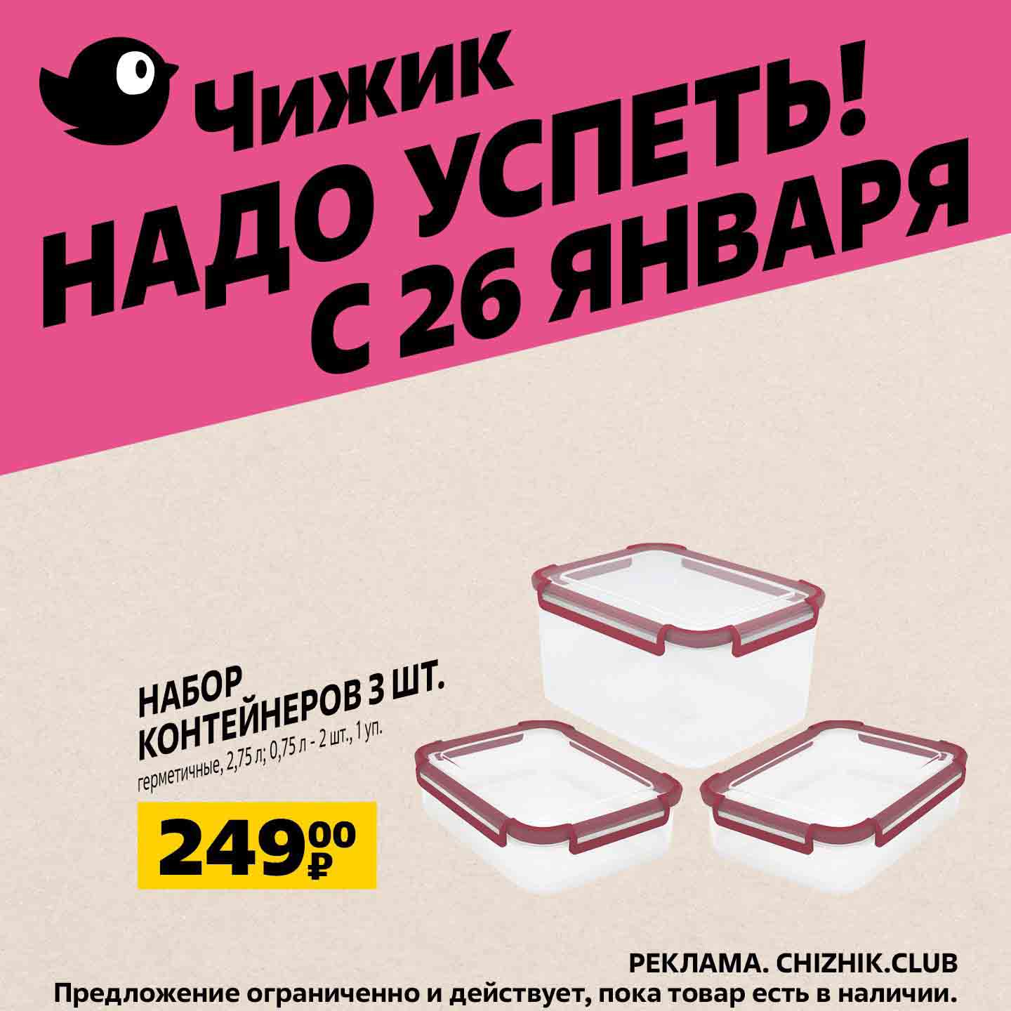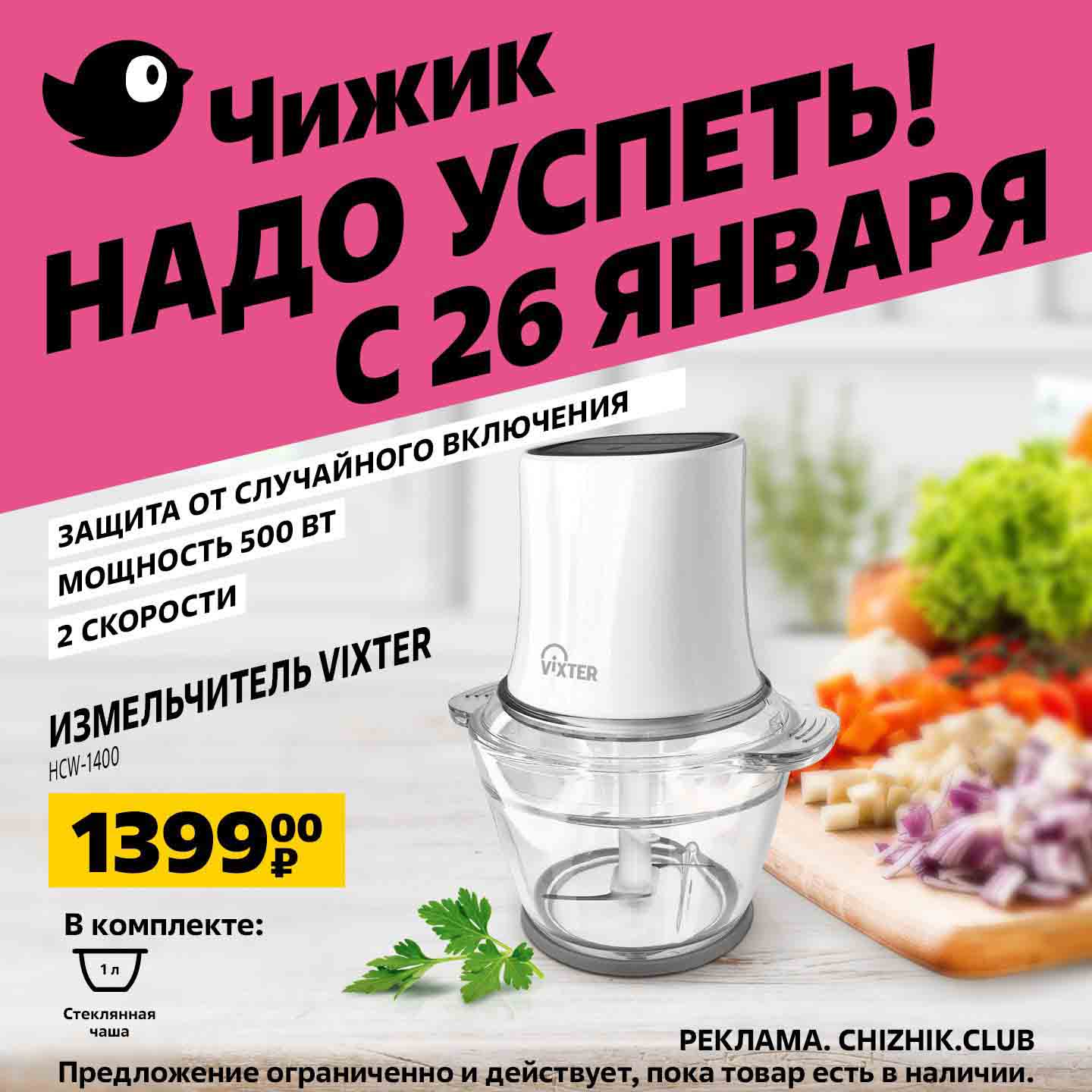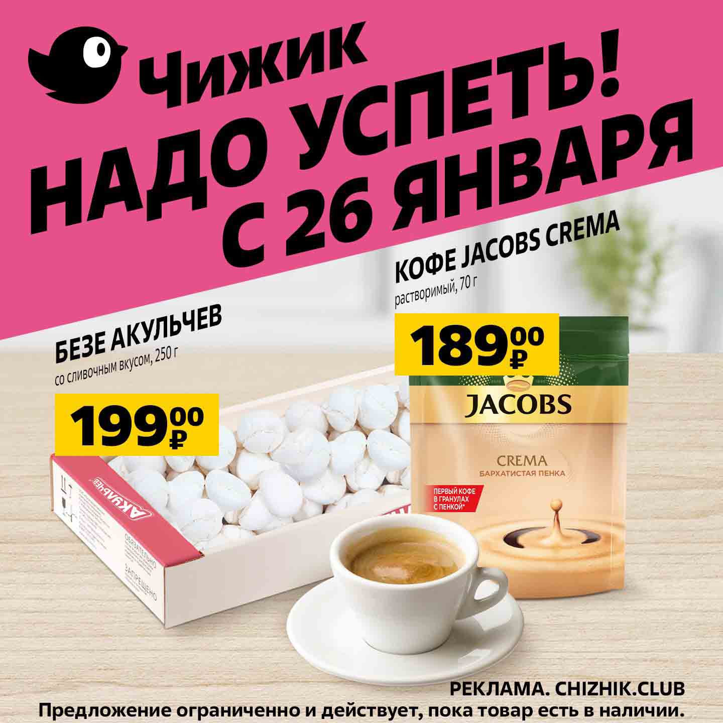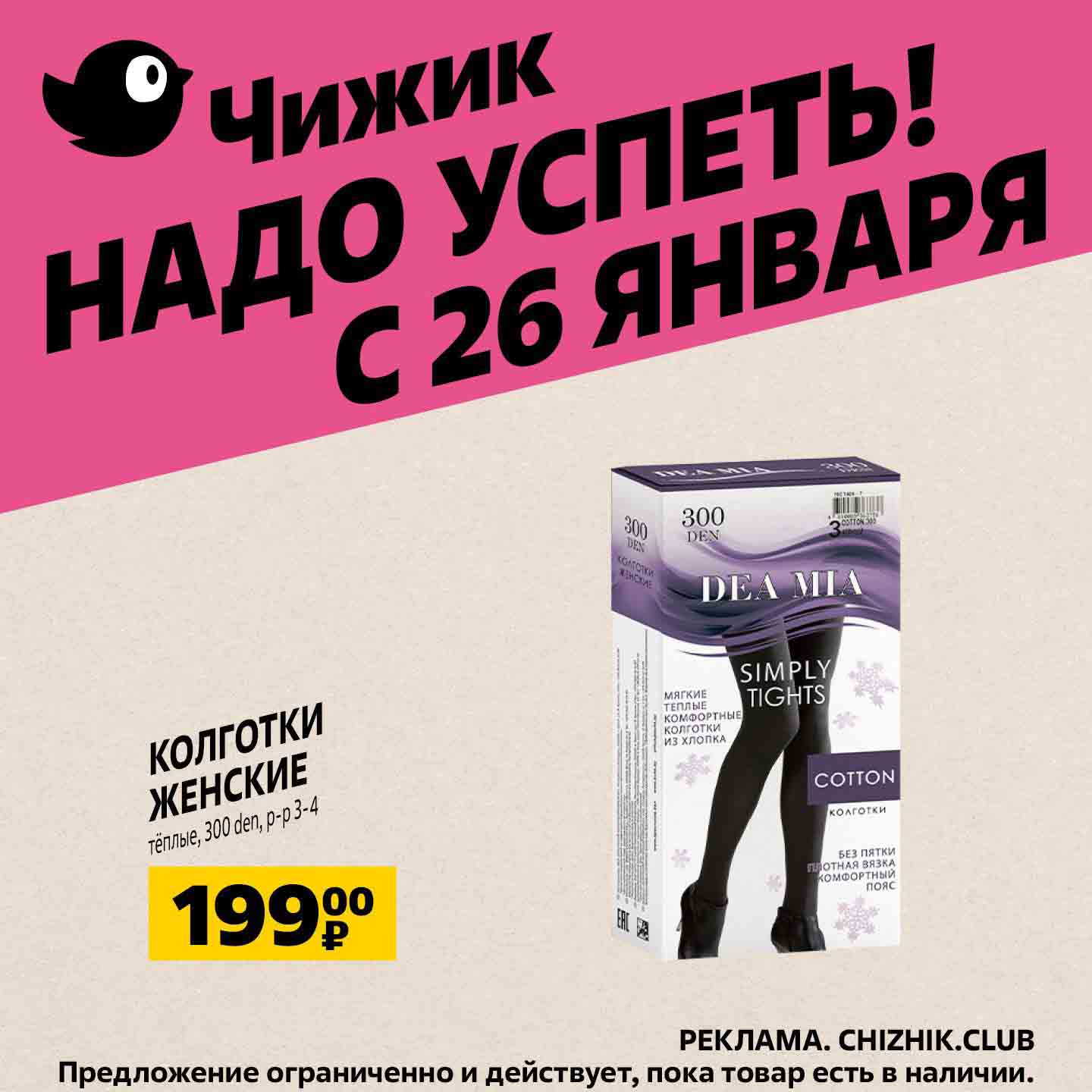 На страницах каталога Чижик вы найдете все свои любимые товары, которые сейчас предлагаются в супермаркете. Не пропустите последние специальные предложения и сэкономьте на покупках. Предложение ограниченно и действует в указанные сроки и пока товар есть в наличии. Внешний вид товара может отличаться от представленных изображений. Подробности об правилах и скидках узнавайте в магазинах сети. Цены по акции Чижик действуют в городах: Москва, Балашиха, Химки, Подольск, Королев, Мытищи, Люберцы, Электросталь, Коломна, Одинцово, Железнодорожный, Серпухов, Орехово-Зуево, Красногорск, Щелково, Сергиев Посад, Пушкино, Жуковский, Ногинск, Раменское, Клин, Воскресенск, Домодедово и многих других населенных пунктах Московского региона.