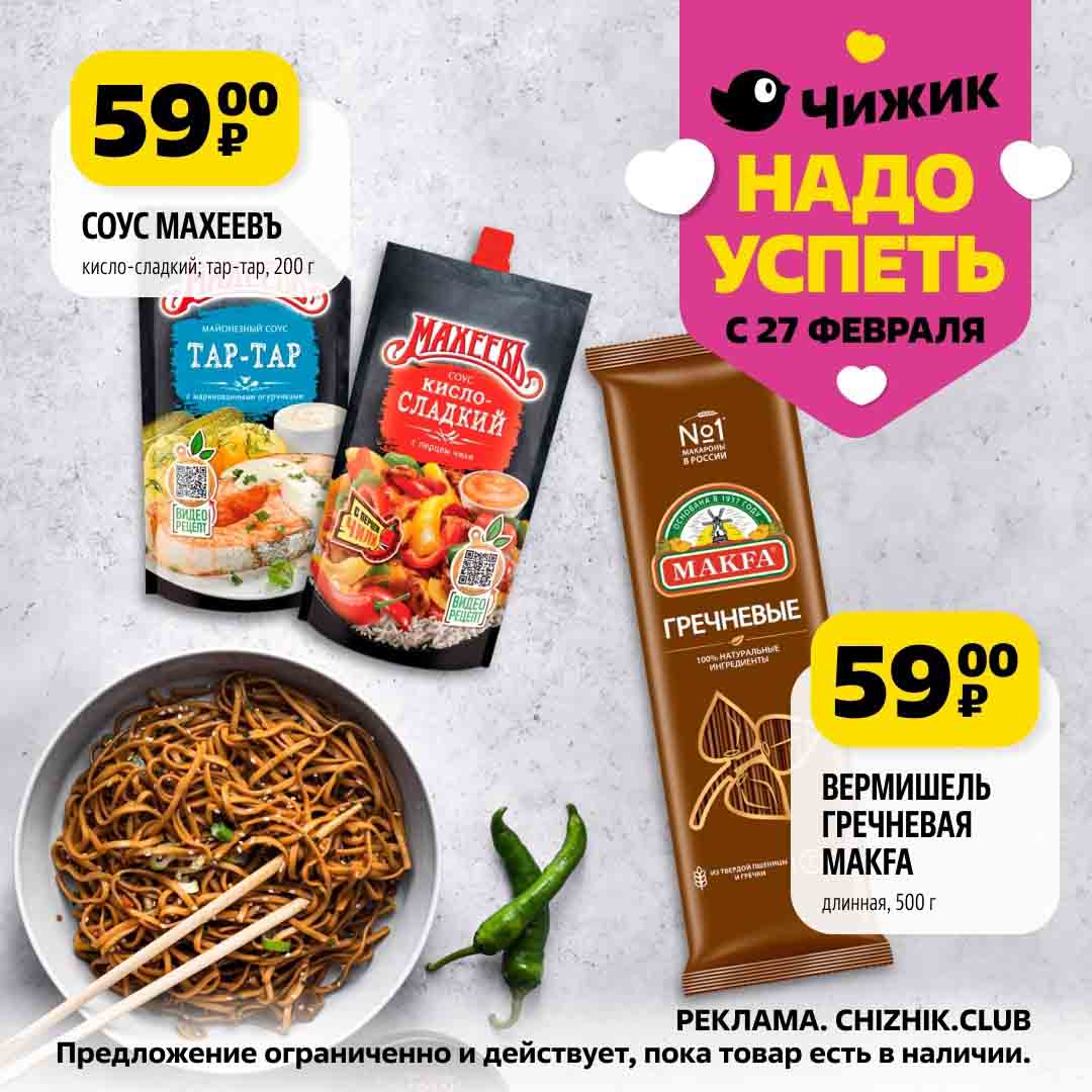 На страницах каталога Чижик вы найдете все свои любимые товары, которые сейчас предлагаются в супермаркете. Не пропустите последние специальные предложения и сэкономьте на покупках. Предложение ограниченно и действует в указанные сроки и пока товар есть в наличии. Внешний вид товара может отличаться от представленных изображений. Подробности об правилах и скидках узнавайте в магазинах сети. Цены по акции Чижик действуют в городах: Москва, Балашиха, Химки, Подольск, Королев, Мытищи, Люберцы, Электросталь, Коломна, Одинцово, Железнодорожный, Серпухов, Орехово-Зуево, Красногорск, Щелково, Сергиев Посад, Пушкино, Жуковский, Ногинск, Раменское, Клин, Воскресенск, Домодедово и многих других населенных пунктах Московского региона.