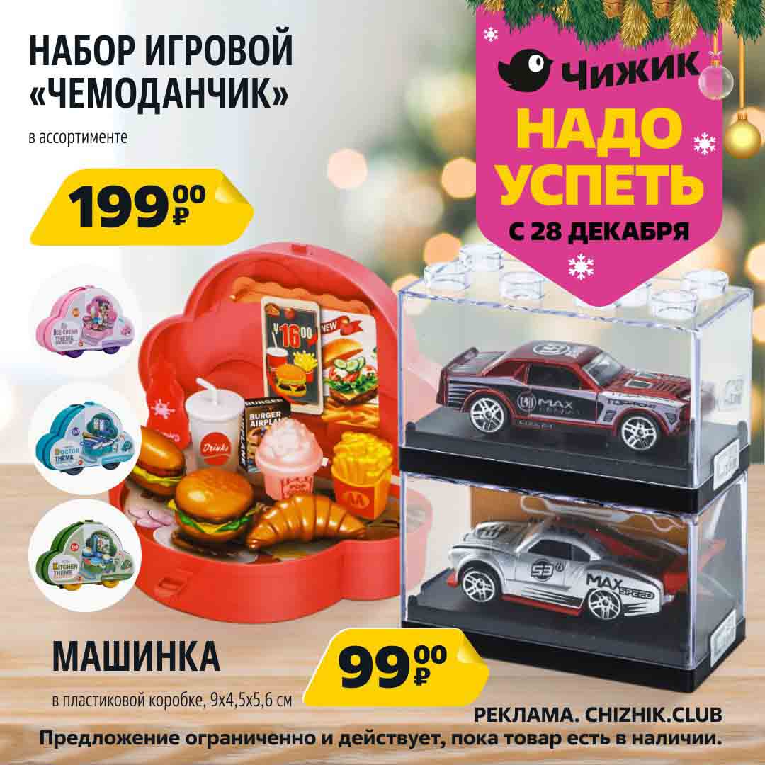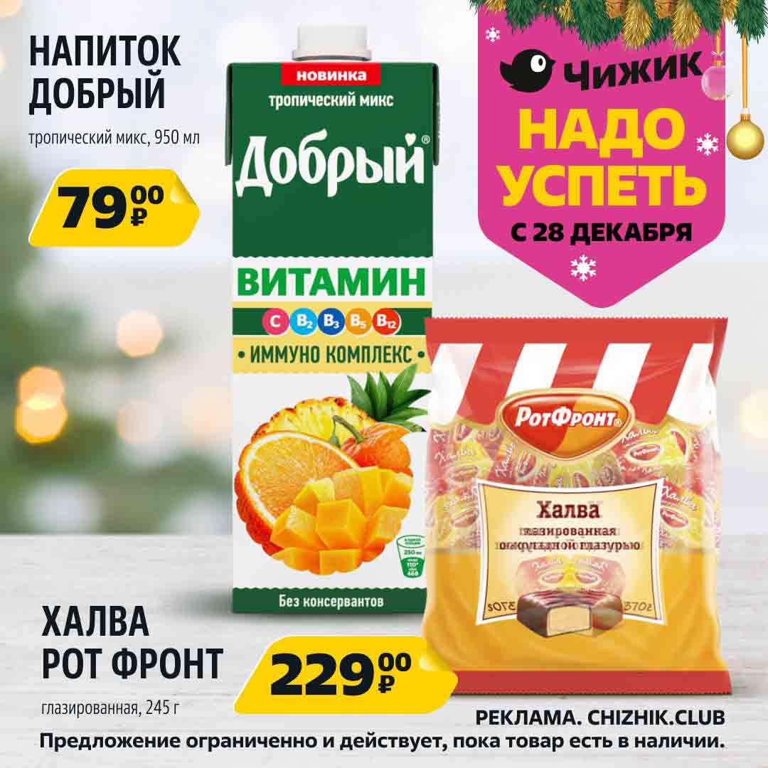 На страницах каталога Чижик вы найдете все свои любимые товары, которые сейчас предлагаются в супермаркете. Не пропустите последние специальные предложения и сэкономьте на покупках. Предложение ограниченно и действует в указанные сроки и пока товар есть в наличии. Внешний вид товара может отличаться от представленных изображений. Подробности об правилах и скидках узнавайте в магазинах сети. Цены по акции Чижик действуют в городах: Москва, Балашиха, Химки, Подольск, Королев, Мытищи, Люберцы, Электросталь, Коломна, Одинцово, Железнодорожный, Серпухов, Орехово-Зуево, Красногорск, Щелково, Сергиев Посад, Пушкино, Жуковский, Ногинск, Раменское, Клин, Воскресенск, Домодедово и многих других населенных пунктах Московского региона.