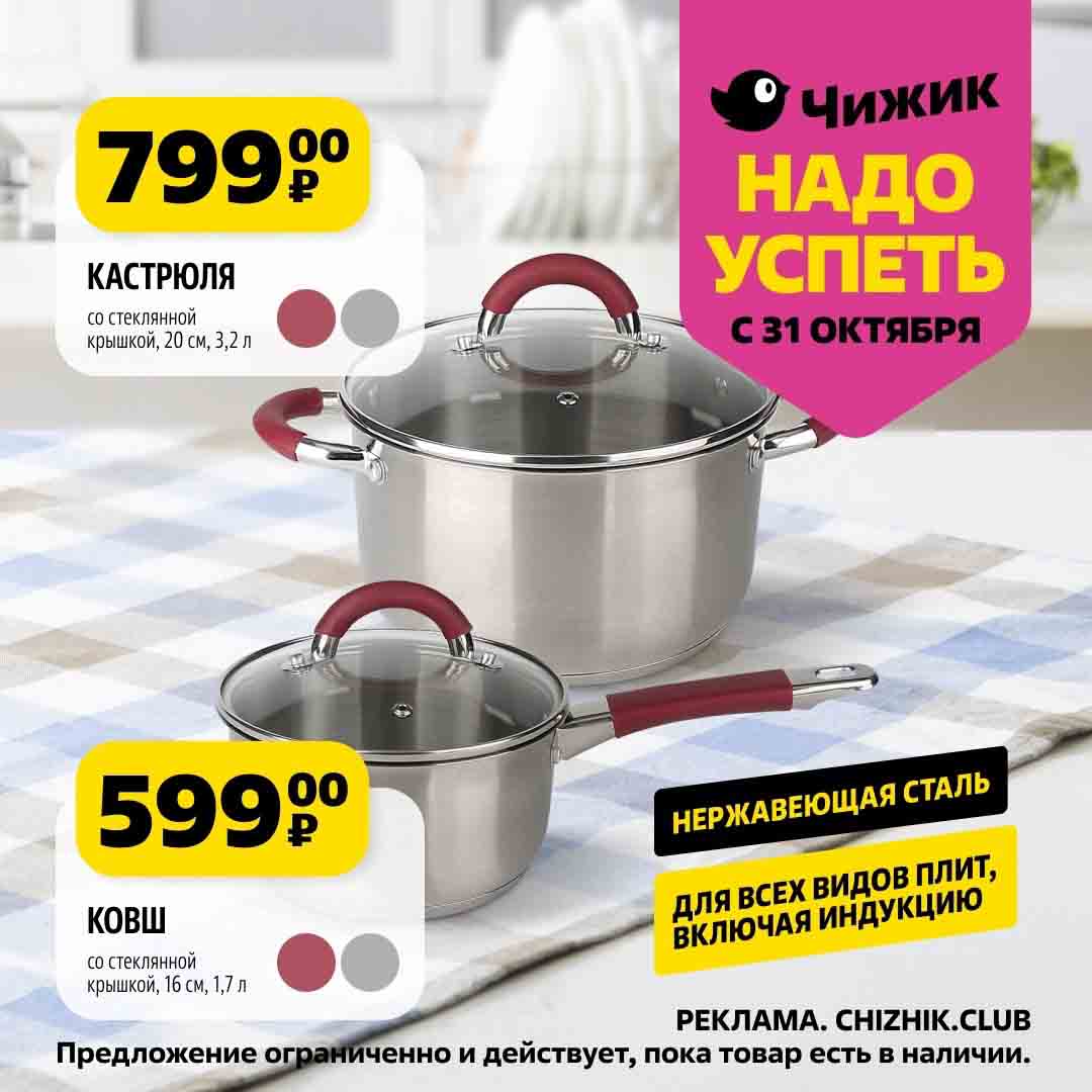 На страницах каталога Чижик вы найдете все свои любимые товары, которые сейчас предлагаются в супермаркете. Не пропустите последние специальные предложения и сэкономьте на покупках. Предложение ограниченно и действует в указанные сроки и пока товар есть в наличии. Внешний вид товара может отличаться от представленных изображений. Подробности об правилах и скидках узнавайте в магазинах сети. Цены по акции Чижик действуют в городах: Москва, Балашиха, Химки, Подольск, Королев, Мытищи, Люберцы, Электросталь, Коломна, Одинцово, Железнодорожный, Серпухов, Орехово-Зуево, Красногорск, Щелково, Сергиев Посад, Пушкино, Жуковский, Ногинск, Раменское, Клин, Воскресенск, Домодедово и многих других населенных пунктах Московского региона.