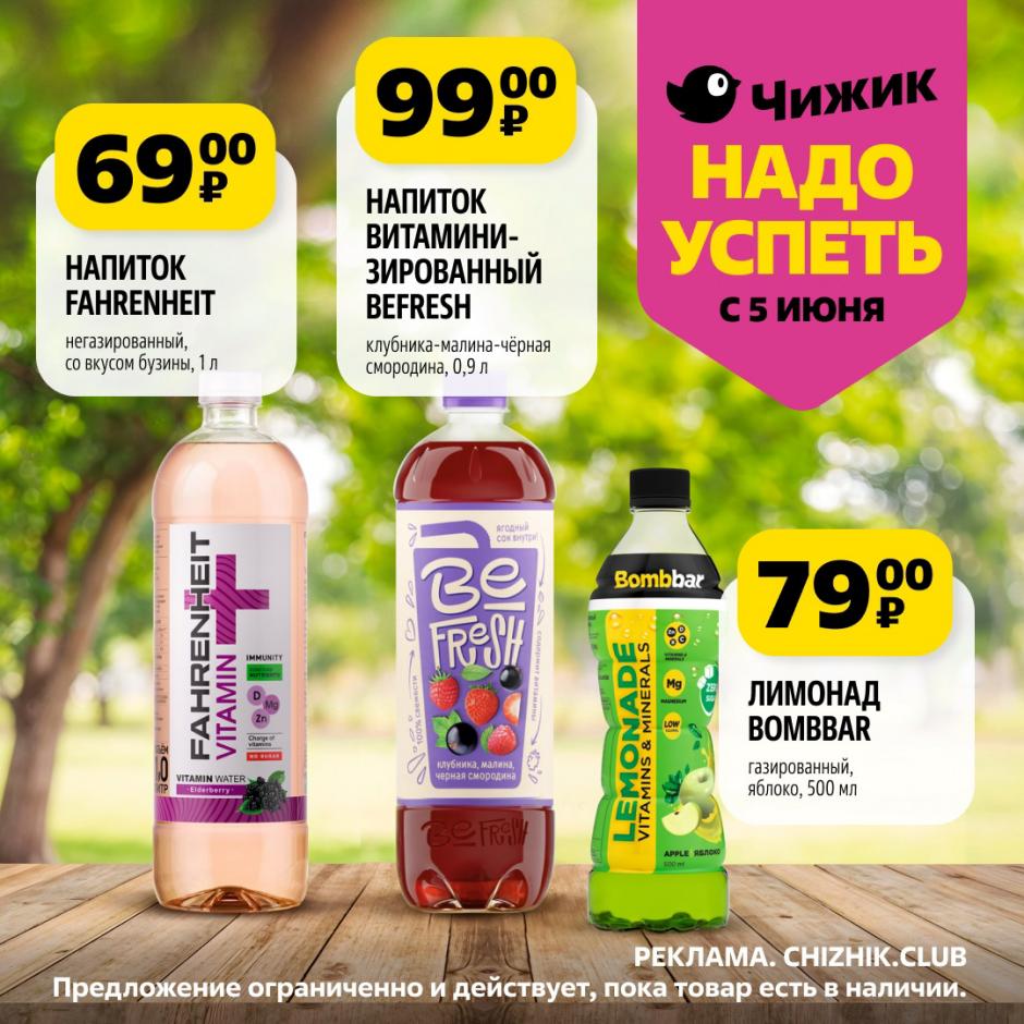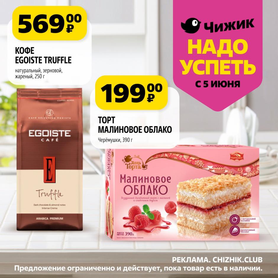 На страницах каталога Чижик вы найдете все свои любимые товары, которые сейчас предлагаются в супермаркете. Не пропустите последние специальные предложения и сэкономьте на покупках. Предложение ограниченно и действует в указанные сроки и пока товар есть в наличии. Внешний вид товара может отличаться от представленных изображений. Подробности об правилах и скидках узнавайте в магазинах сети. Цены по акции Чижик действуют в городах: Москва, Балашиха, Химки, Подольск, Королев, Мытищи, Люберцы, Электросталь, Коломна, Одинцово, Железнодорожный, Серпухов, Орехово-Зуево, Красногорск, Щелково, Сергиев Посад, Пушкино, Жуковский, Ногинск, Раменское, Клин, Воскресенск, Домодедово и многих других населенных пунктах Московского региона.