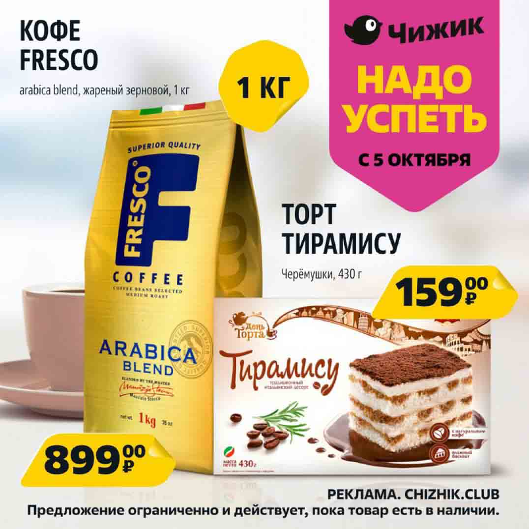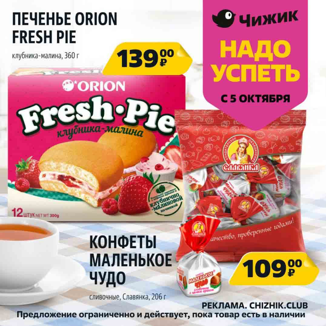 На страницах каталога Чижик вы найдете все свои любимые товары, которые сейчас предлагаются в супермаркете. Не пропустите последние специальные предложения и сэкономьте на покупках. Предложение ограниченно и действует в указанные сроки и пока товар есть в наличии. Внешний вид товара может отличаться от представленных изображений. Подробности об правилах и скидках узнавайте в магазинах сети. Цены по акции Чижик действуют в городах: Москва, Балашиха, Химки, Подольск, Королев, Мытищи, Люберцы, Электросталь, Коломна, Одинцово, Железнодорожный, Серпухов, Орехово-Зуево, Красногорск, Щелково, Сергиев Посад, Пушкино, Жуковский, Ногинск, Раменское, Клин, Воскресенск, Домодедово и многих других населенных пунктах Московского региона.