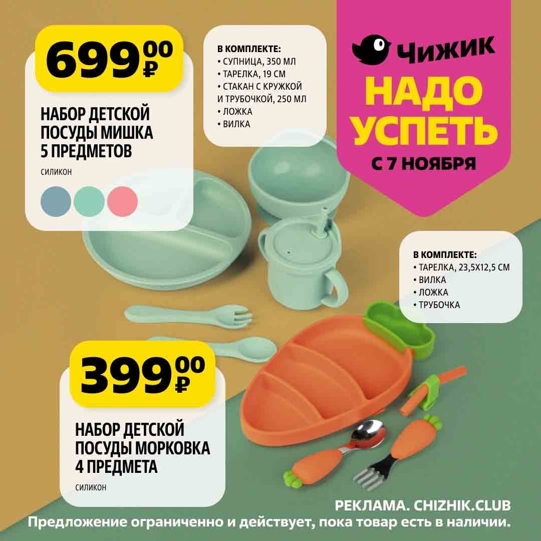 На страницах каталога Чижик вы найдете все свои любимые товары, которые сейчас предлагаются в супермаркете. Не пропустите последние специальные предложения и сэкономьте на покупках. Предложение ограниченно и действует в указанные сроки и пока товар есть в наличии. Внешний вид товара может отличаться от представленных изображений. Подробности об правилах и скидках узнавайте в магазинах сети. Цены по акции Чижик действуют в городах: Москва, Балашиха, Химки, Подольск, Королев, Мытищи, Люберцы, Электросталь, Коломна, Одинцово, Железнодорожный, Серпухов, Орехово-Зуево, Красногорск, Щелково, Сергиев Посад, Пушкино, Жуковский, Ногинск, Раменское, Клин, Воскресенск, Домодедово и многих других населенных пунктах Московского региона.