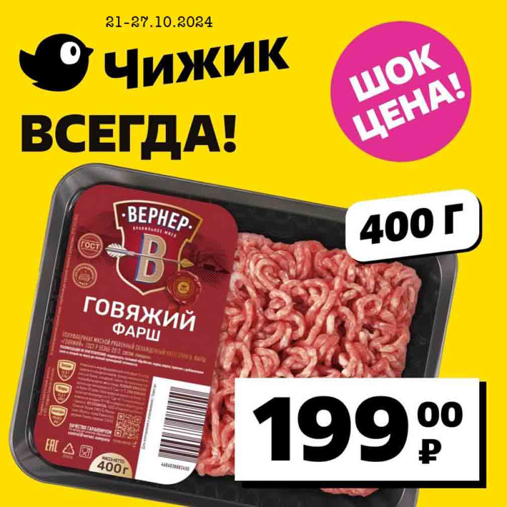 На страницах каталога Чижик вы найдете все свои любимые товары, которые сейчас предлагаются в супермаркете. Не пропустите последние специальные предложения и сэкономьте на покупках. Предложение ограниченно и действует в указанные сроки и пока товар есть в наличии. Внешний вид товара может отличаться от представленных изображений. Подробности об правилах и скидках узнавайте в магазинах сети. Цены по акции Чижик действуют в городах: Москва, Балашиха, Химки, Подольск, Королев, Мытищи, Люберцы, Электросталь, Коломна, Одинцово, Железнодорожный, Серпухов, Орехово-Зуево, Красногорск, Щелково, Сергиев Посад, Пушкино, Жуковский, Ногинск, Раменское, Клин, Воскресенск, Домодедово и многих других населенных пунктах Московского региона.