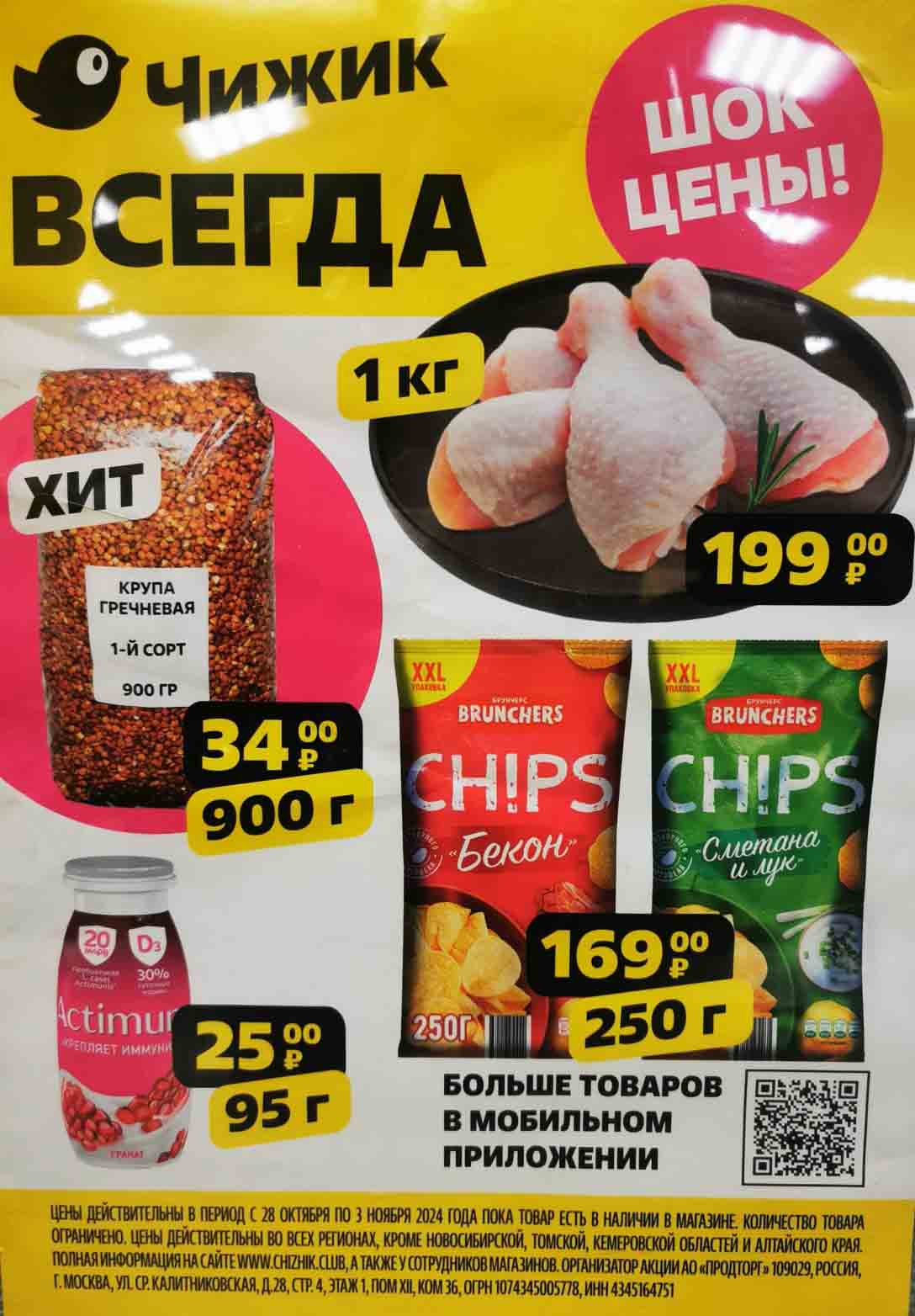 На страницах каталога Чижик вы найдете все свои любимые товары, которые сейчас предлагаются в супермаркете. Не пропустите последние специальные предложения и сэкономьте на покупках. Предложение ограниченно и действует в указанные сроки и пока товар есть в наличии. Внешний вид товара может отличаться от представленных изображений. Подробности об правилах и скидках узнавайте в магазинах сети. Цены по акции Чижик действуют в городах: Москва, Балашиха, Химки, Подольск, Королев, Мытищи, Люберцы, Электросталь, Коломна, Одинцово, Железнодорожный, Серпухов, Орехово-Зуево, Красногорск, Щелково, Сергиев Посад, Пушкино, Жуковский, Ногинск, Раменское, Клин, Воскресенск, Домодедово и многих других населенных пунктах Московского региона.