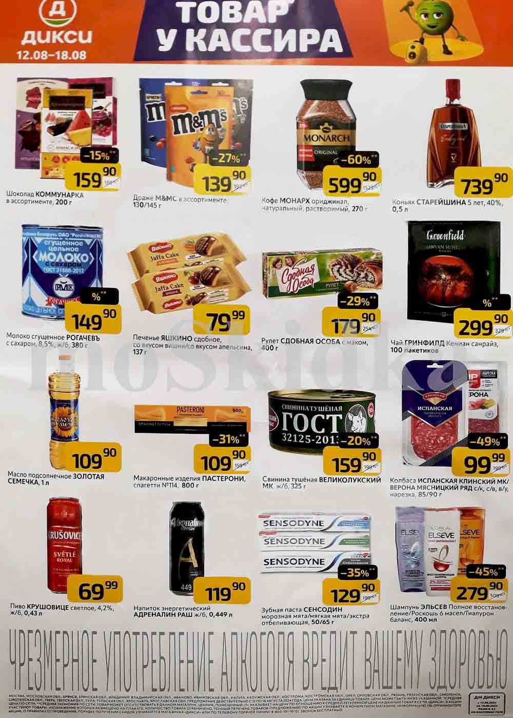 Дикси акции с 12 августа — 18 августа 2024. Товары у кассира со скидкой