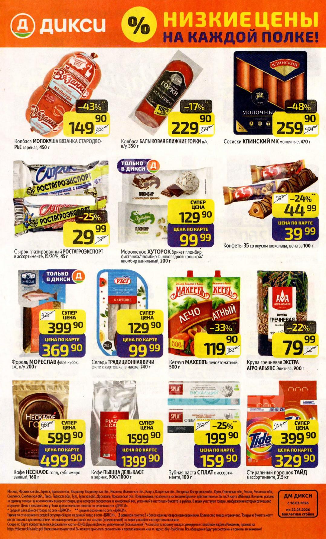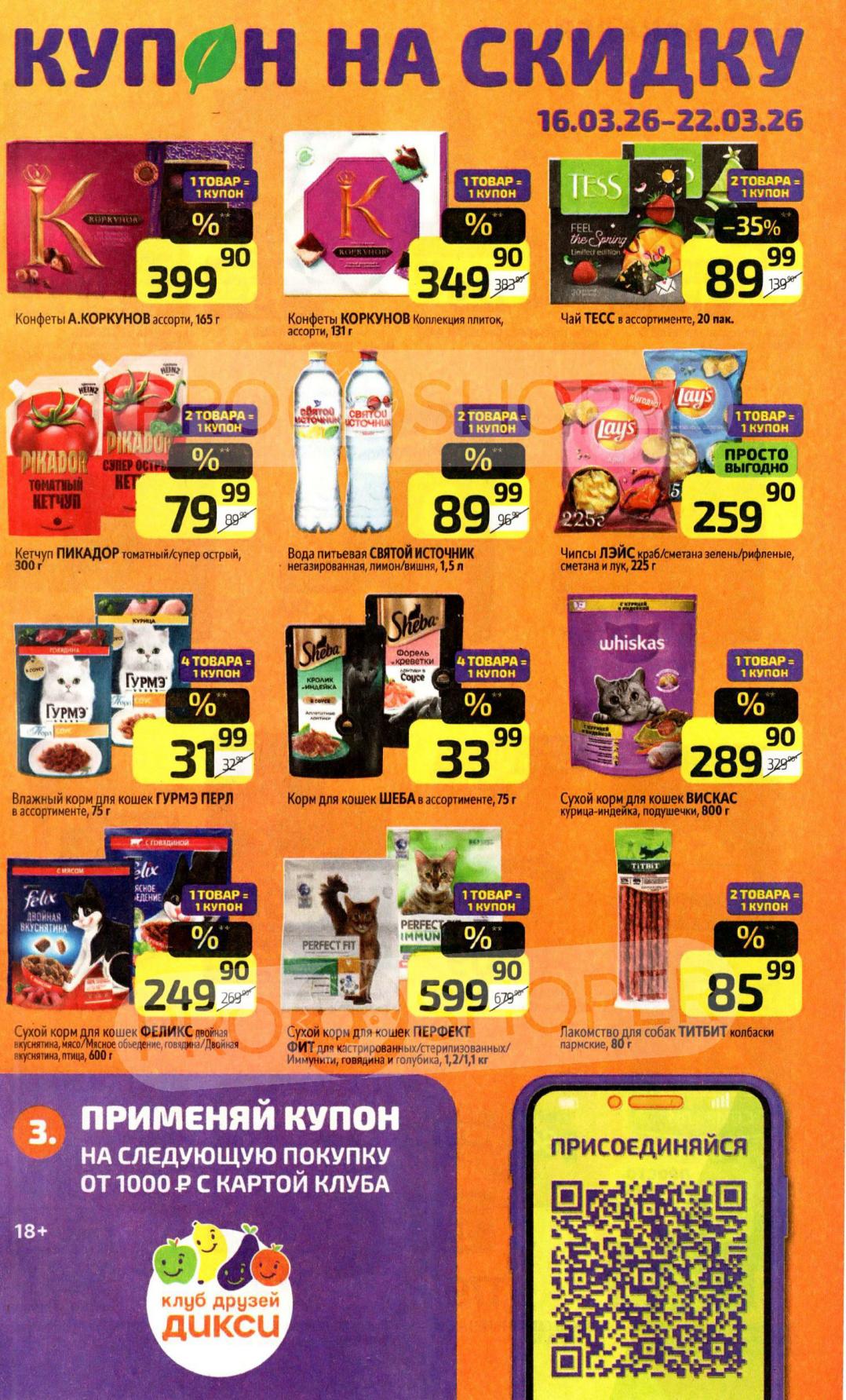 Дикси акции с 16 марта — 22 марта 2026. Каталог еженедельных предложений Пожалуйста, оставьте это поле пустым.Подпишитесь на уведомления о новых каталогах этого магазина Проверьте ваш почтовый ящик, чтобы подтвердить свою подписку. 0 0 голоса Рейтинг акции