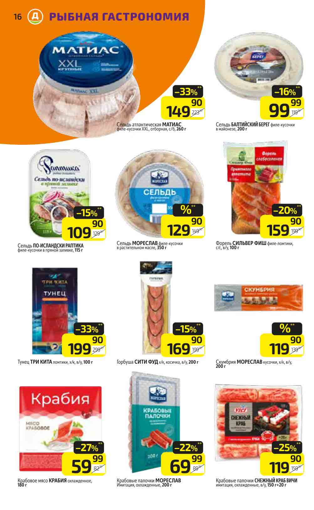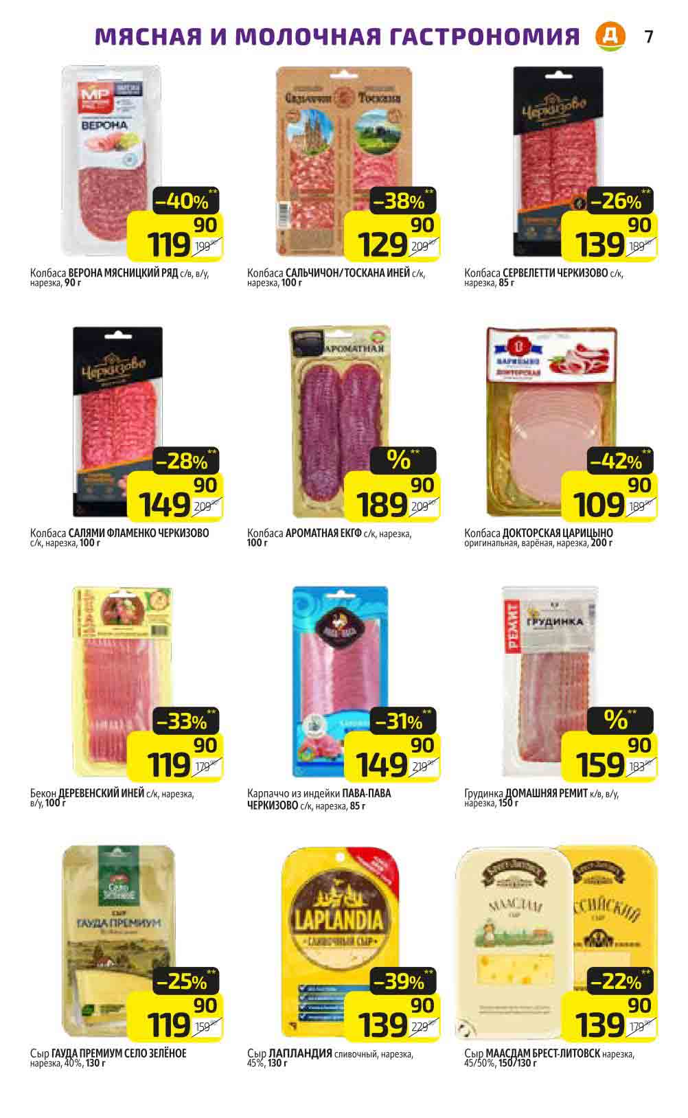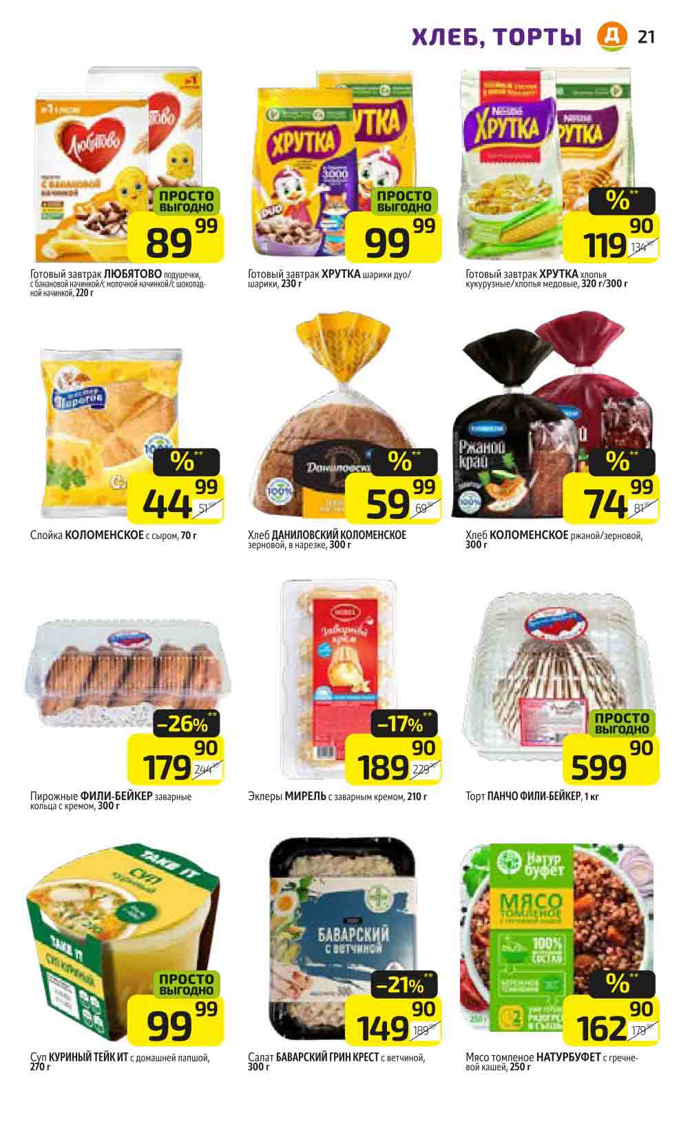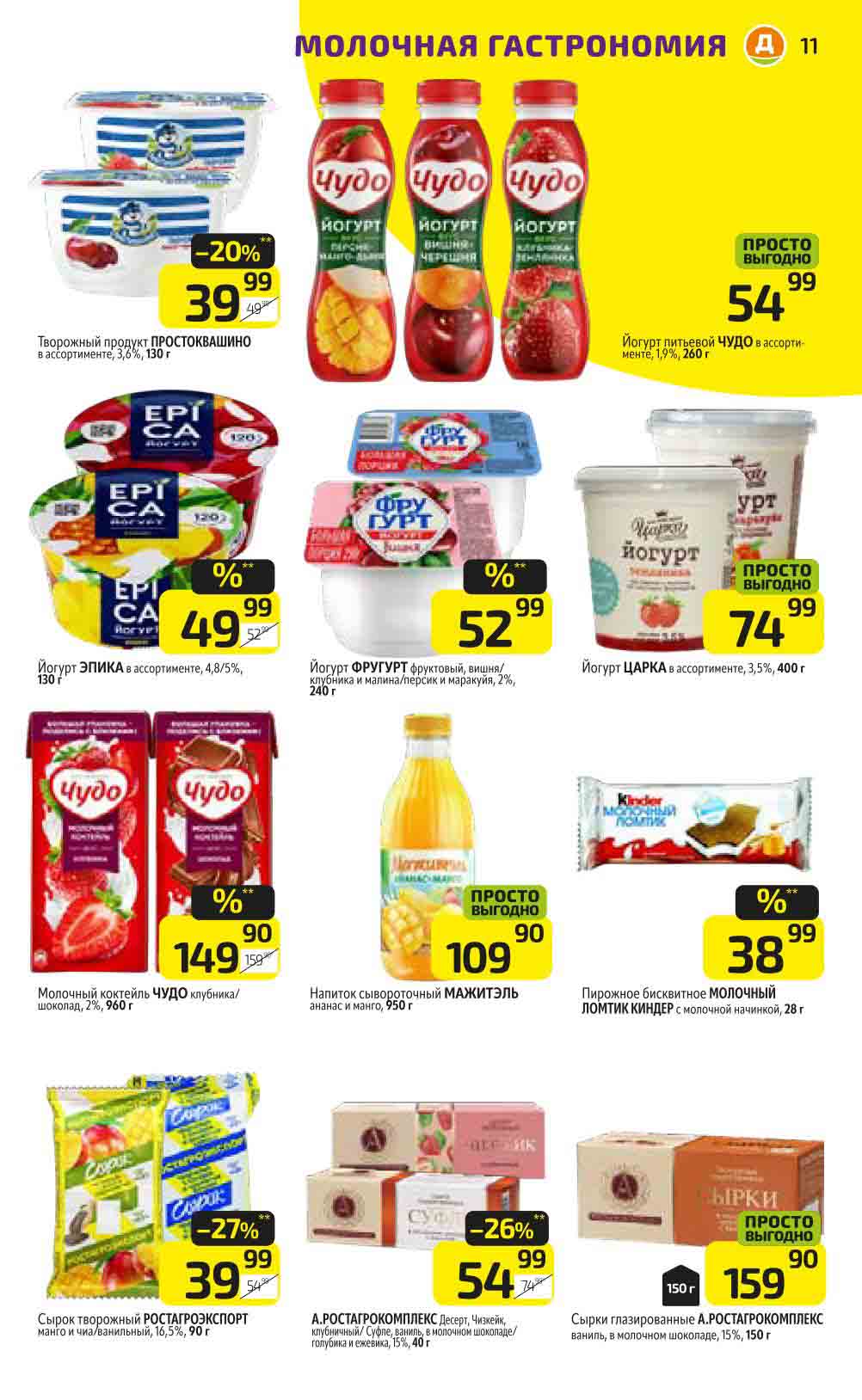 Буклет магазина включает в себя различные акции на продукты, предлагая скидки на яблоки, сыр, яйца, свинина, форель, масло, колбасу, торт и шоколад и многое другое. Есть так же дополнительные выгоды, такие как акция «1+1», где покупка одного товара дает вам другой бесплатно.