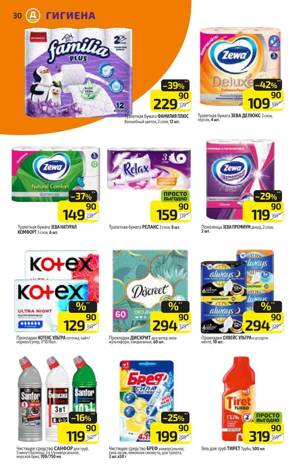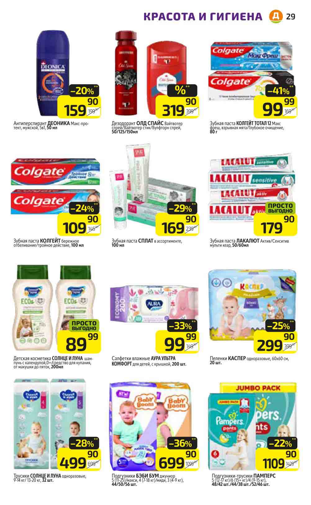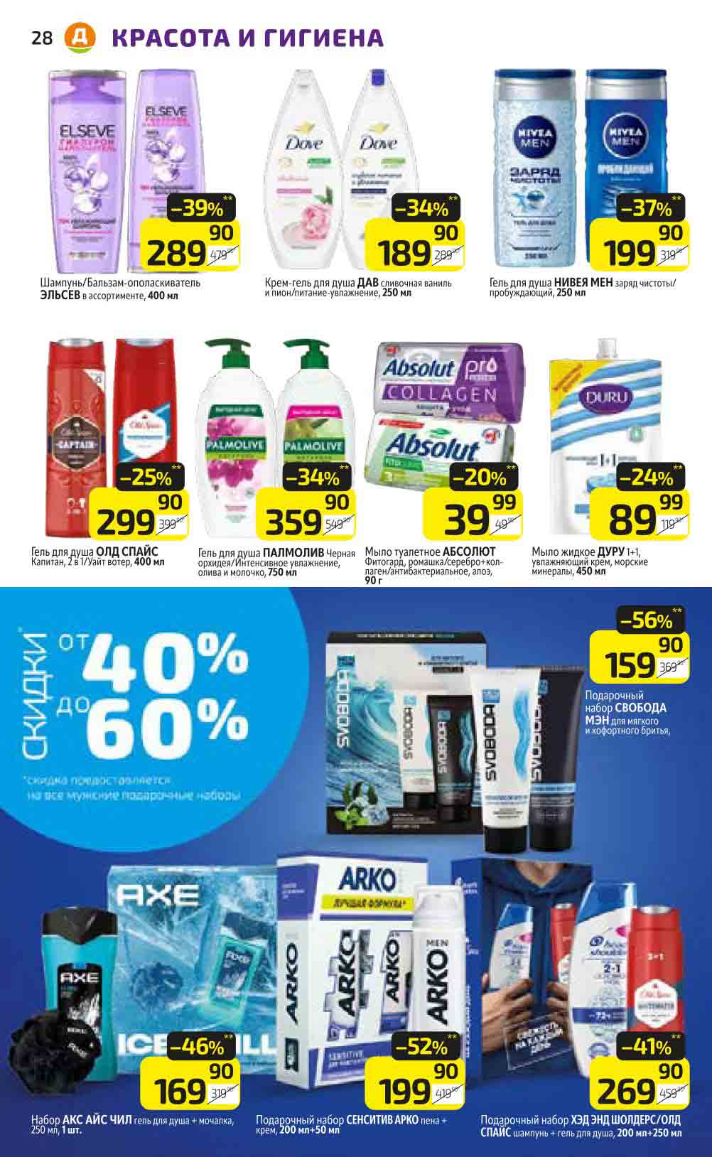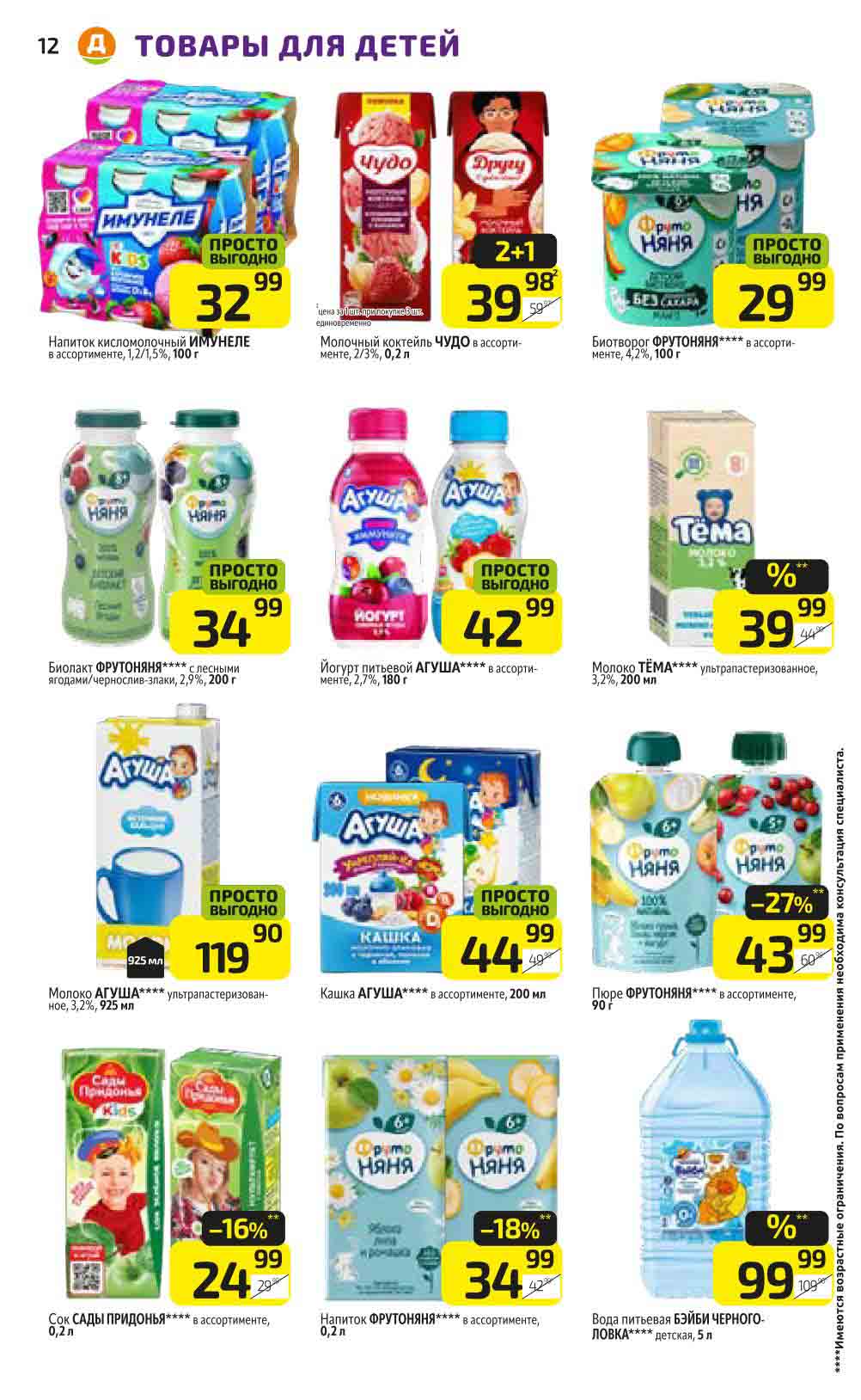 Буклет магазина включает в себя различные акции на продукты, предлагая скидки на яблоки, сыр, яйца, свинина, форель, масло, колбасу, торт и шоколад и многое другое. Есть так же дополнительные выгоды, такие как акция «1+1», где покупка одного товара дает вам другой бесплатно.