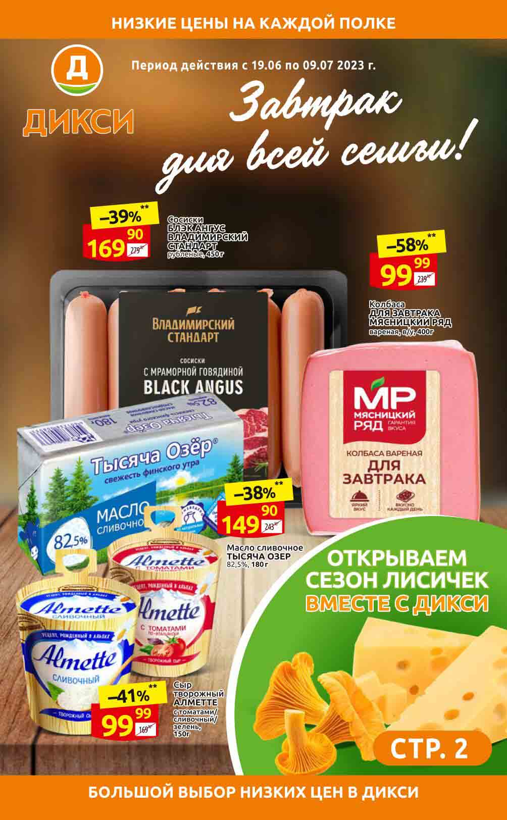 Смотрите еженедельный, новый каталог Дикси и не переплачивайте уже сегодня вас ждут ряд интересных акций и привлекательных скидок. Обо всем этом вы сможете узнать посмотрев новый каталог Дикси на нашем сайте. На страницах каталога Дикси вы найдете все свои любимые продукты, которые сейчас предлагаются в супермаркете. Предложения, представленные в настоящем буклете, действительны в указанный срок проведения. Стоимость указана за единицу товара (за исключением весового, цена которого определена за конкретный вес, указанный в настоящем буклете). В акции участвуют позиции, изображение которых размещено в каталоге. Цены в супермаркетах могут быть дополнительно снижены по решению руководства сети. Цены помеченные «*», обозначают среднюю цену данной позиции по сети. Количество товара ограничено и может не везде присутствовать. Цены по акции Дикси действуют в городах: Москва, Балашиха, Химки, Подольск, Королев, Мытищи, Люберцы, Электросталь, Коломна, Одинцово, Железнодорожный, Серпухов, Орехово-Зуево, Красногорск, Щелково, Сергиев Посад, Пушкино, Жуковский, Ногинск, Раменское, Клин, Воскресенск, Домодедово и многих других населенных пунктах Московского региона.