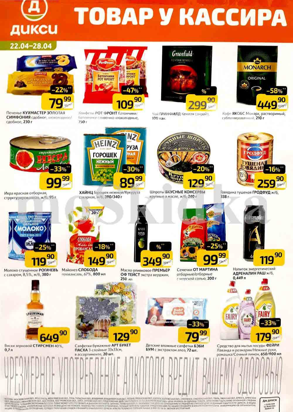 Дикси акции с 22 апреля — 28 апреля 2024. Товары у кассира со скидкой
