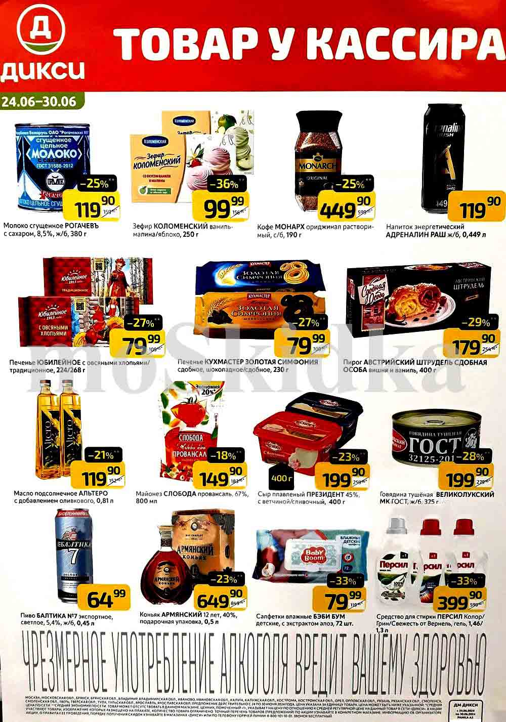 Дикси акции с 24 июня — 30 июня 2024. Товары у кассира со скидкой