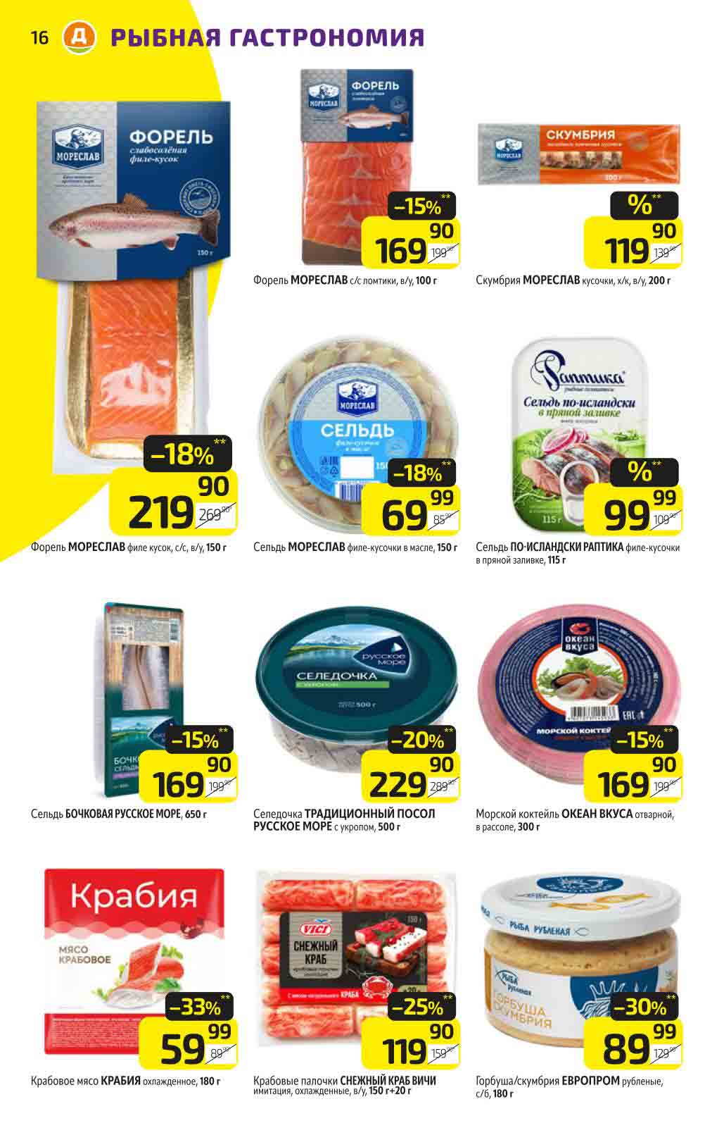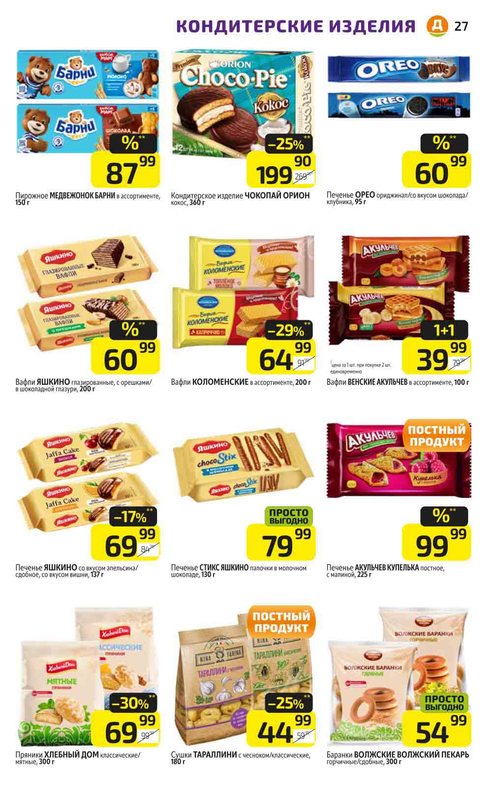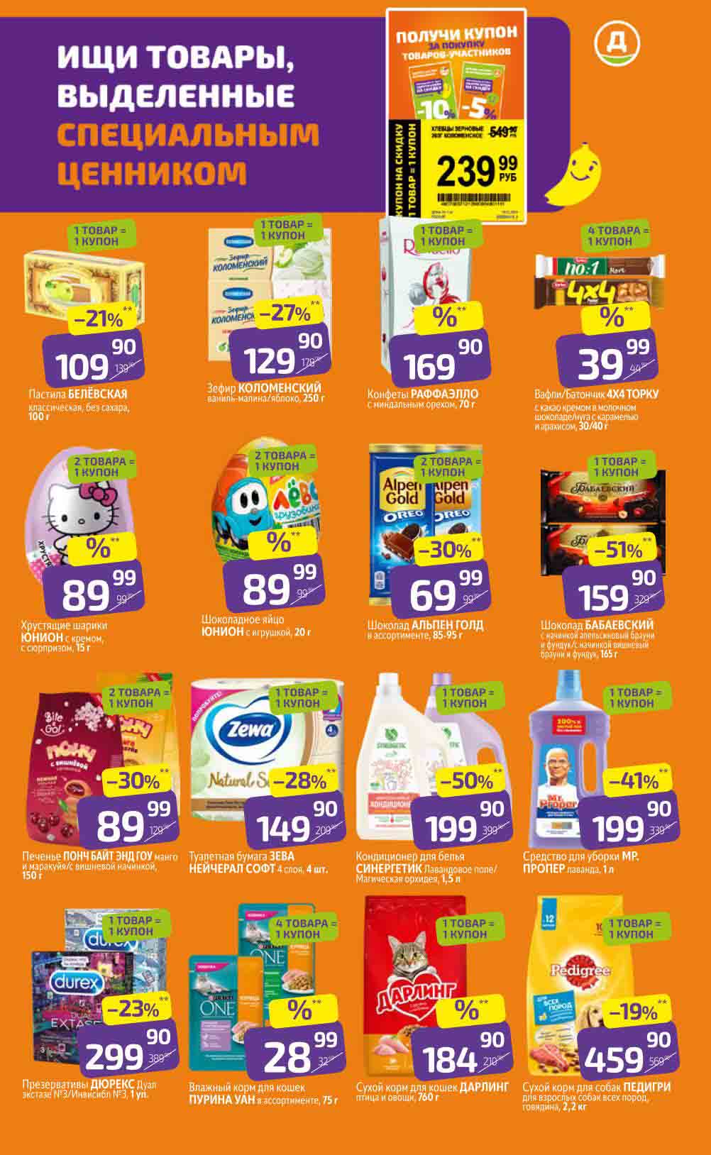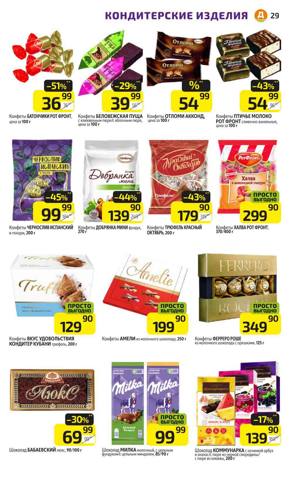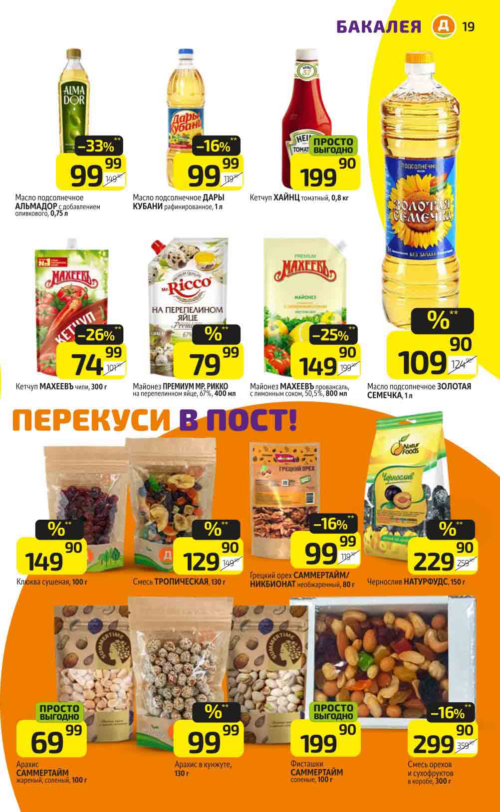 В акционном буклете предложены выгодные цены на различные продукты, такие как: скидка 47% на сливочное масло, минус 48% от цены на Баварский сервелат, пельмени ДОМАШНИЕ МИРАТОРГ со скидкой 54%, кофе ЖАРДИН по скидке 49% и многое другое.