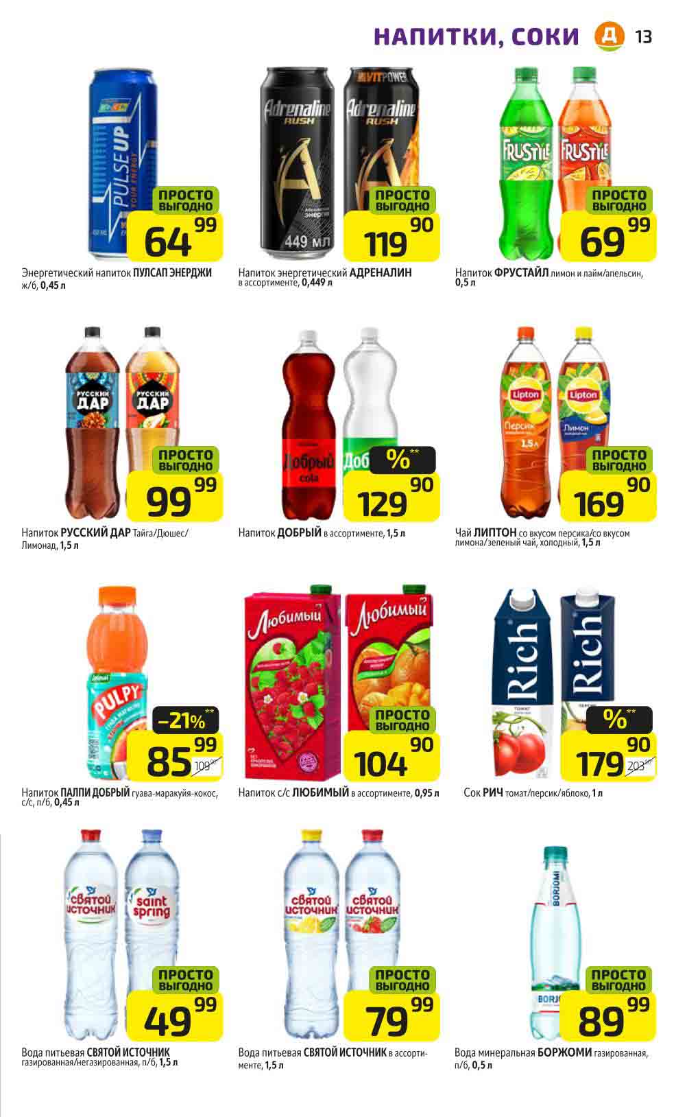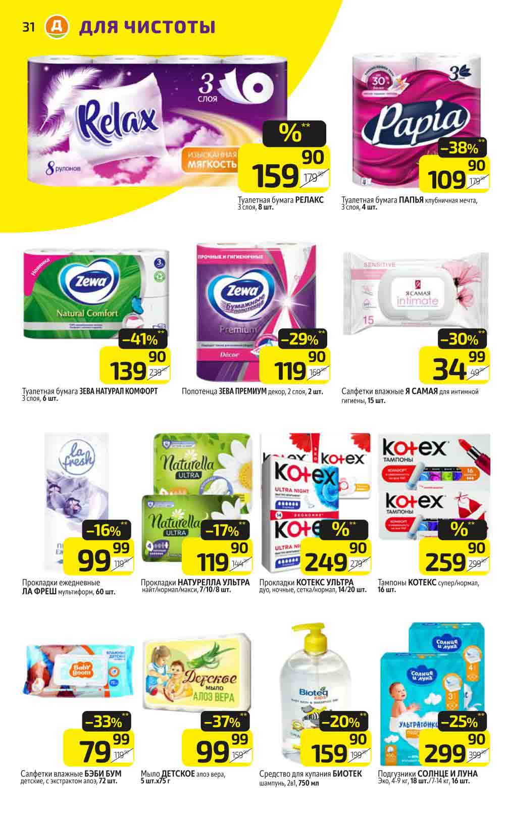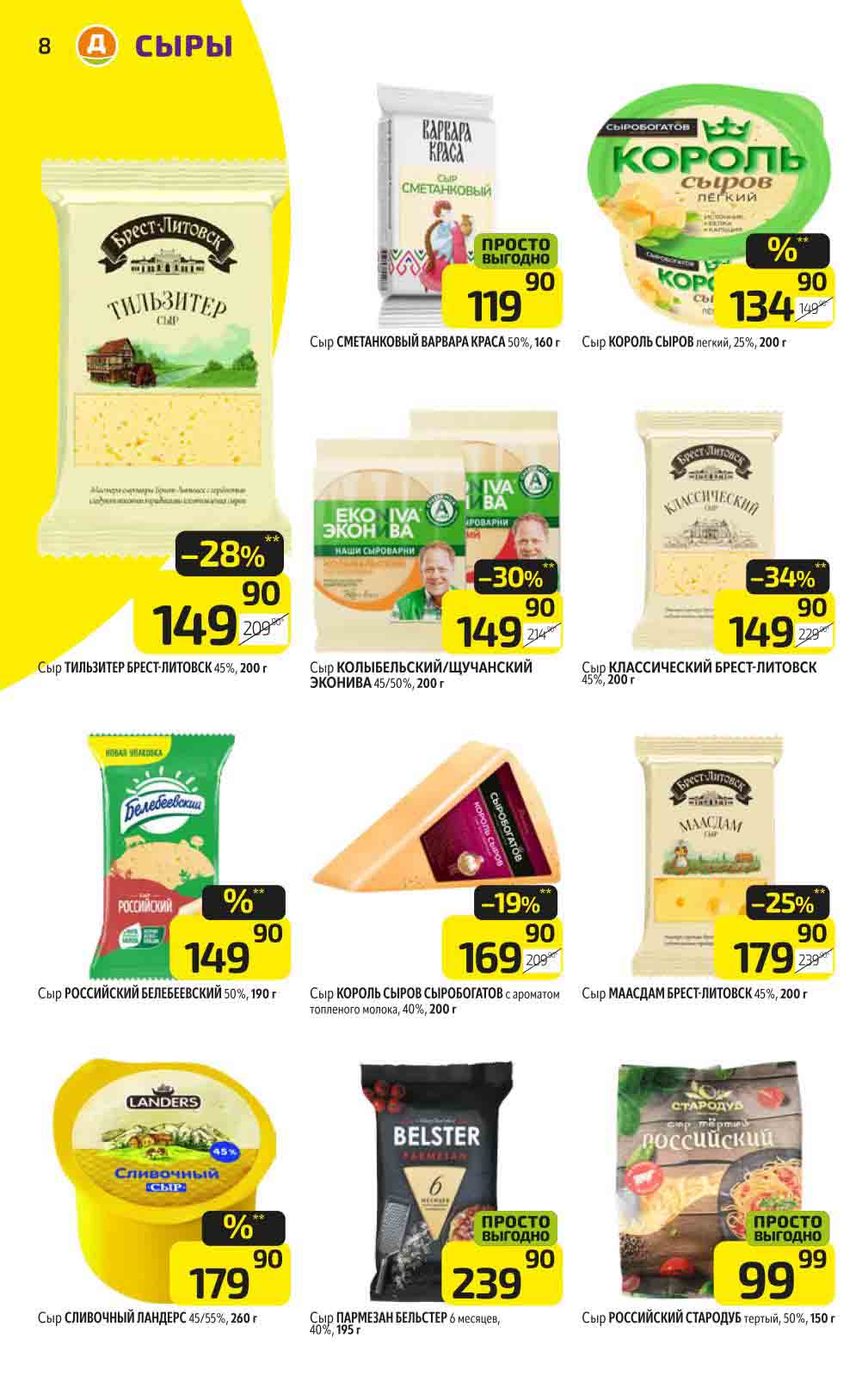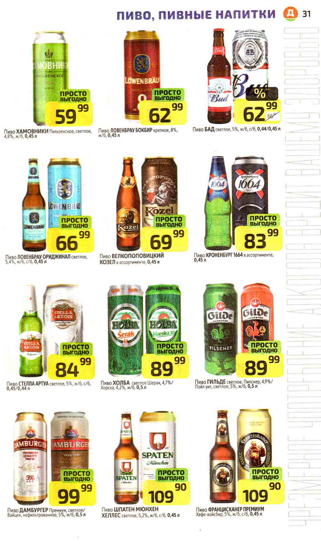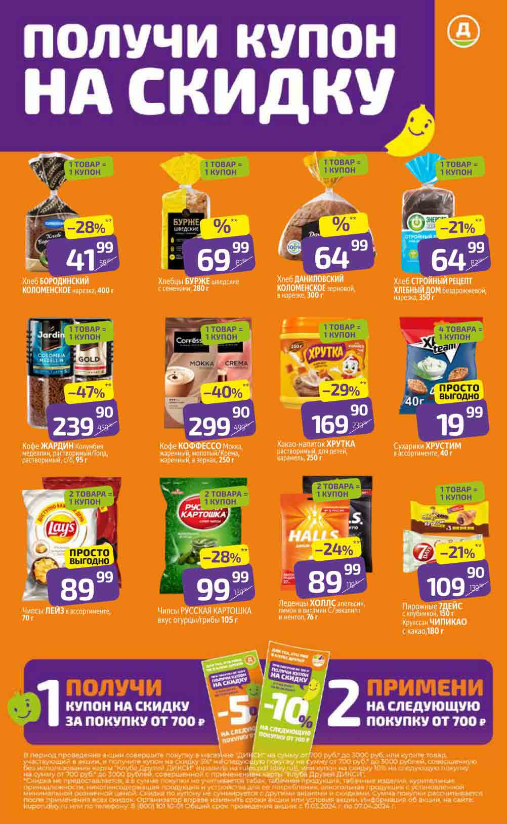 В акционном буклете предложены выгодные цены на различные продукты, такие как: скидка 47% на сливочное масло, минус 48% от цены на Баварский сервелат, пельмени ДОМАШНИЕ МИРАТОРГ со скидкой 54%, кофе ЖАРДИН по скидке 49% и многое другое.