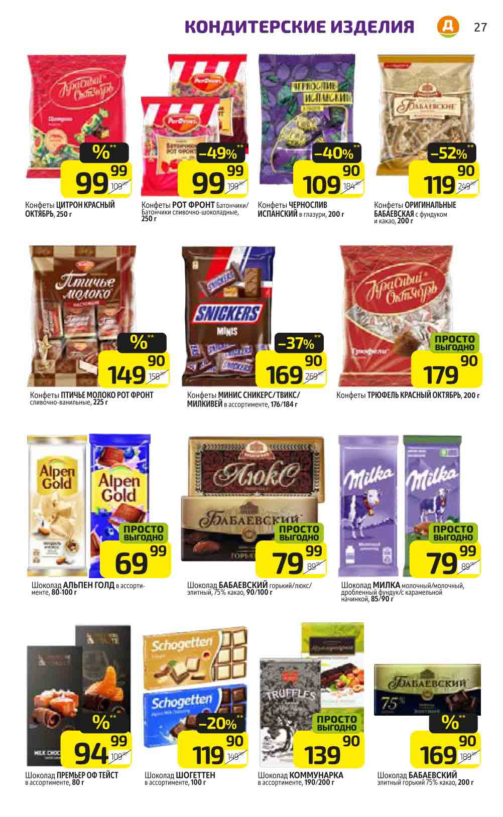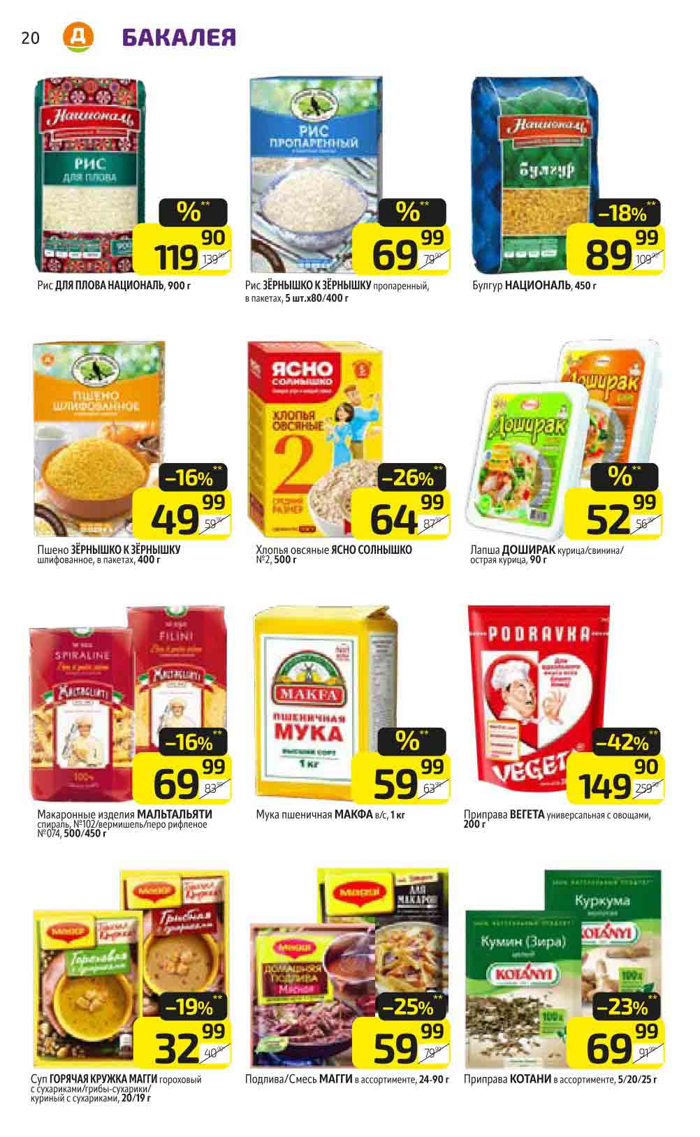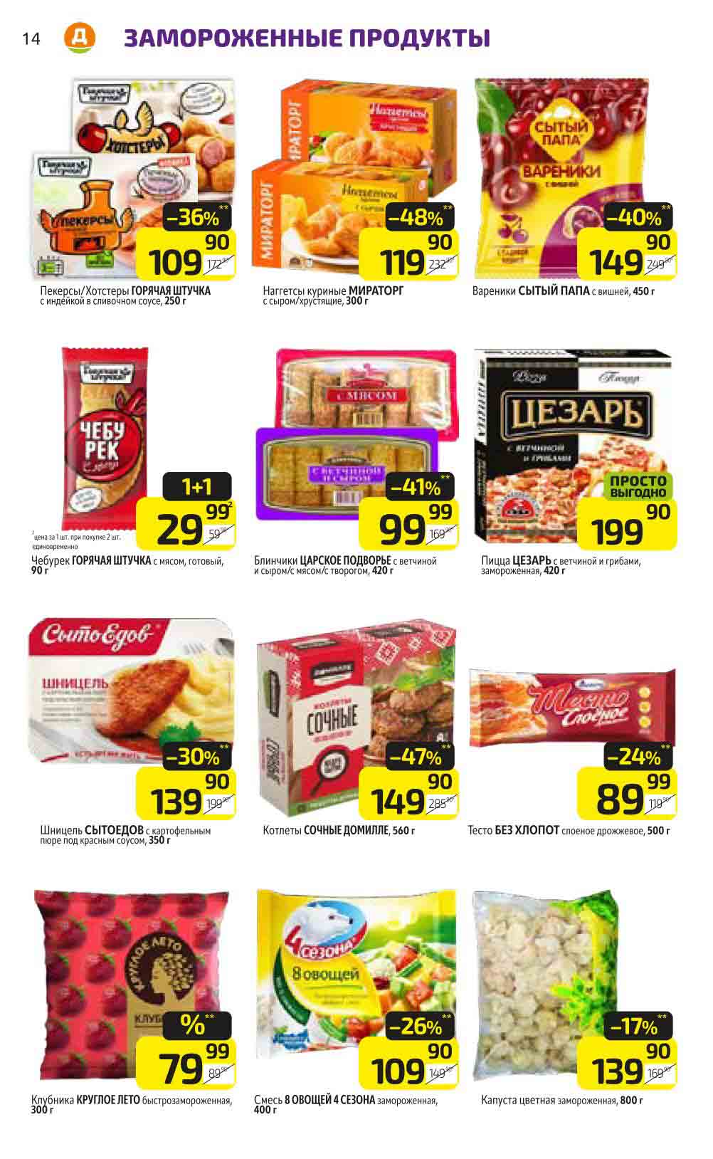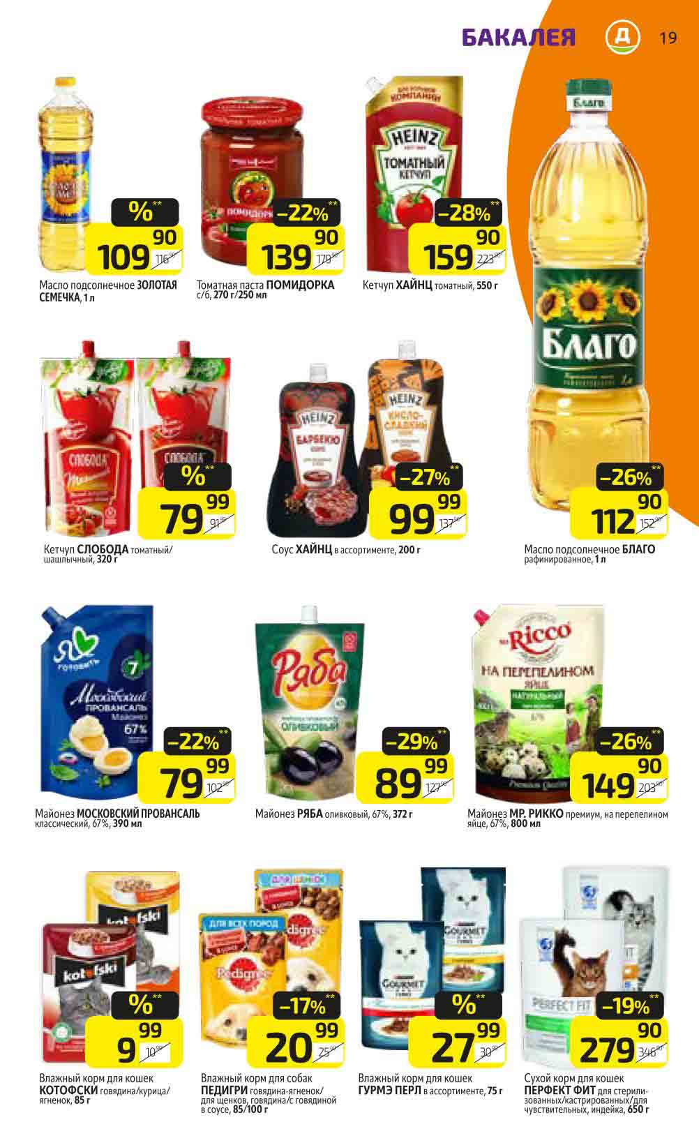 Буклет акционных цен включает в себя различные продукты, например, такие, как апельсины 99.99 руб., сосиски 199.90 руб., масло 159.90 руб., сыр 129.90 руб., авокадо 36.99 руб. и т. д.