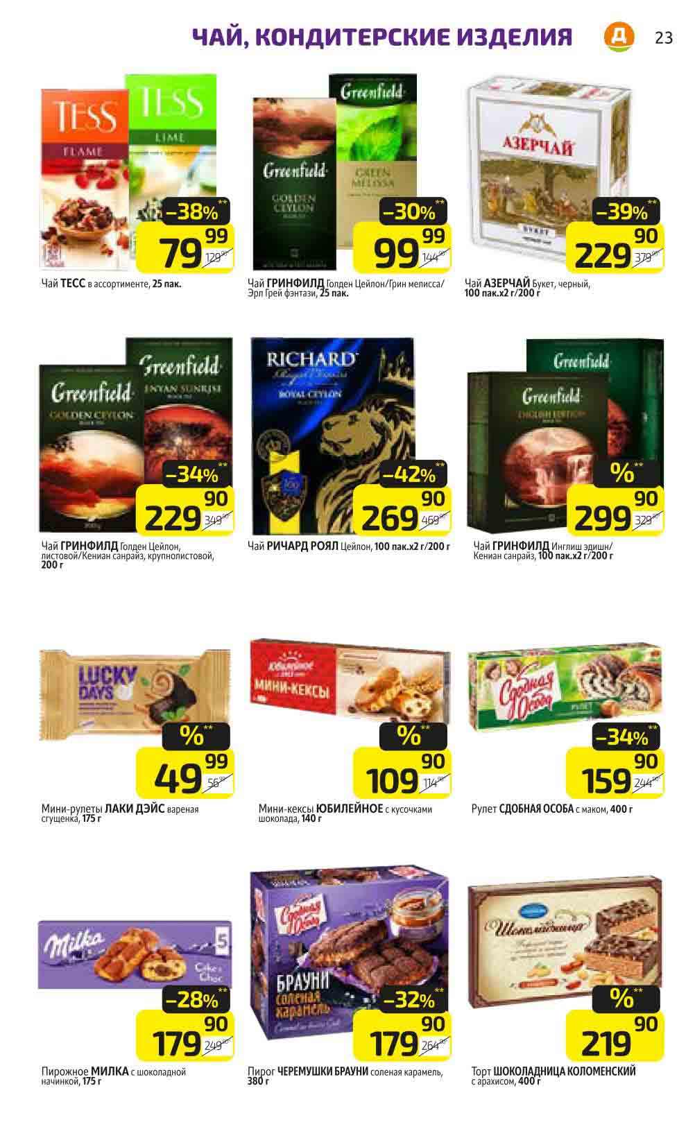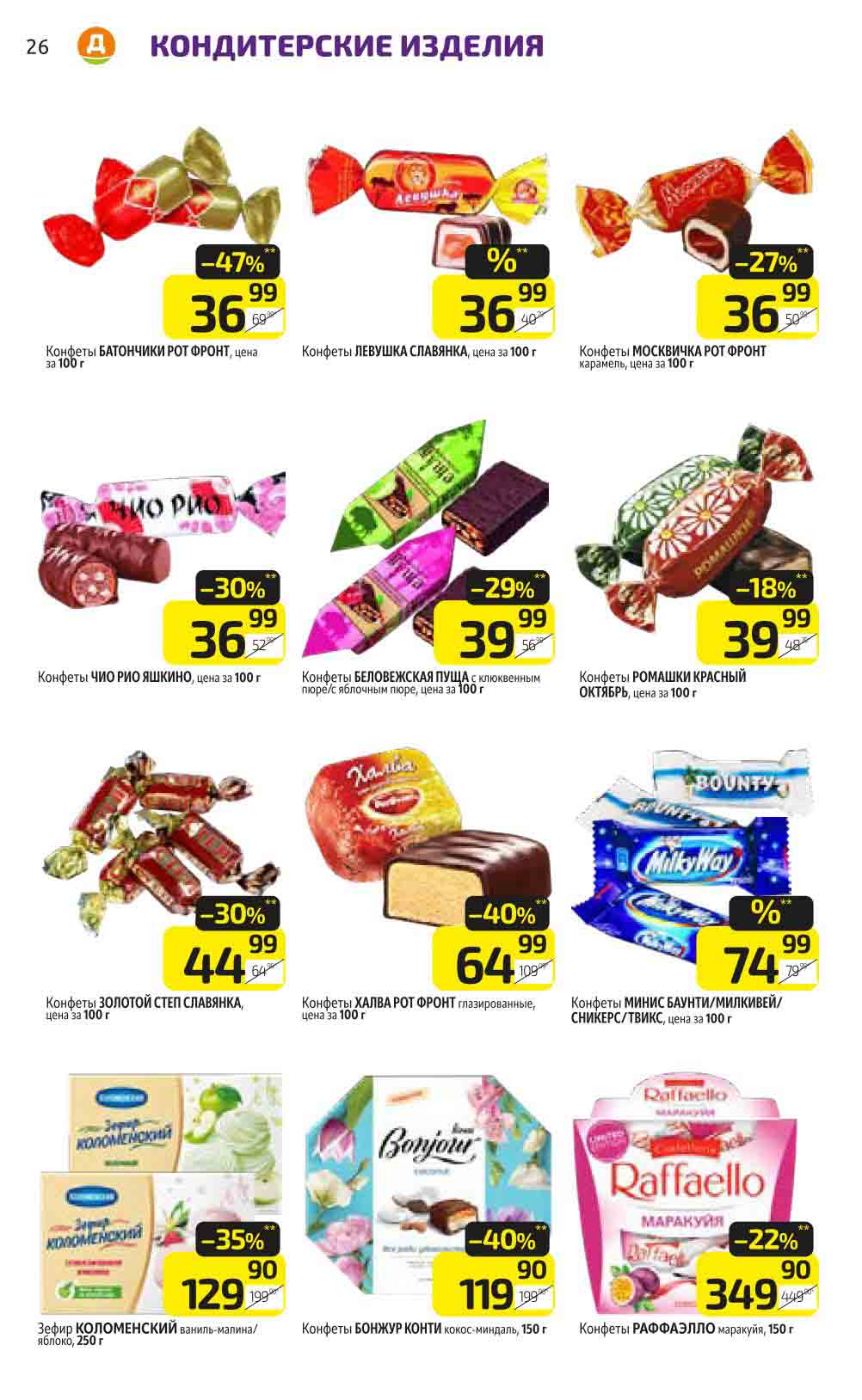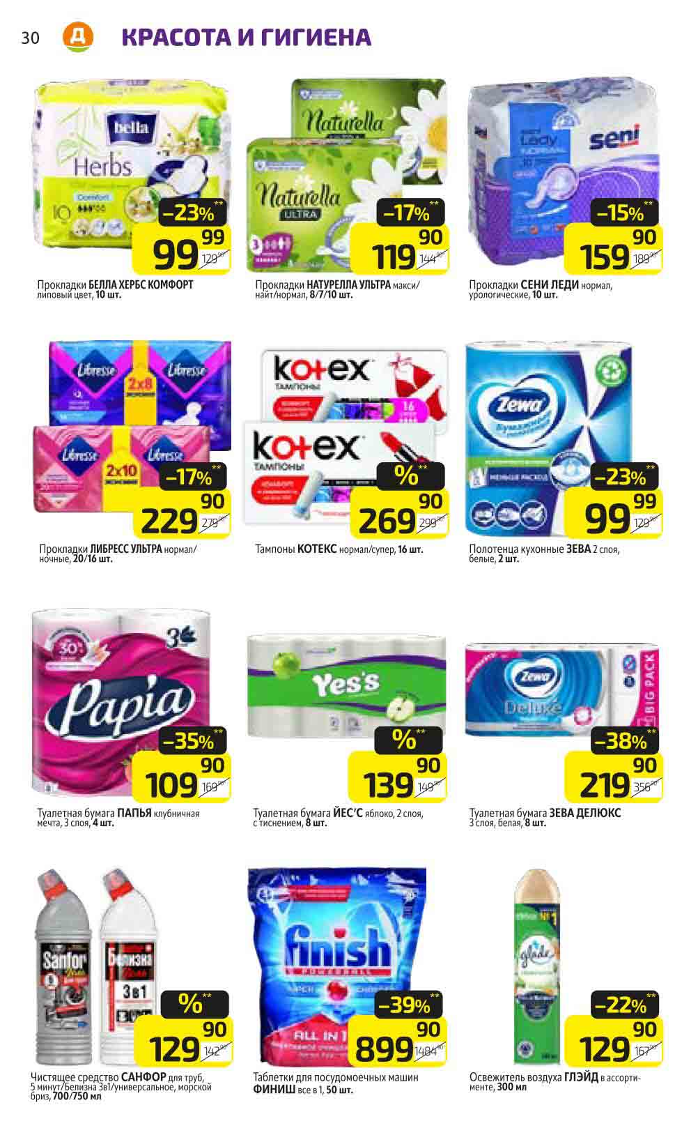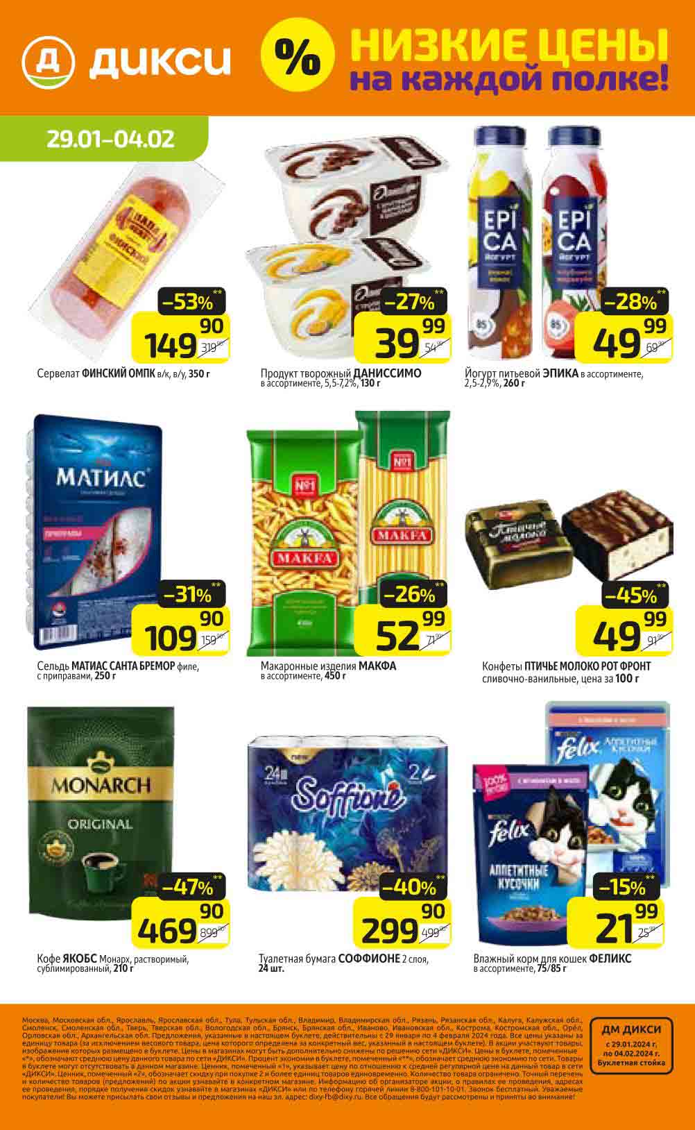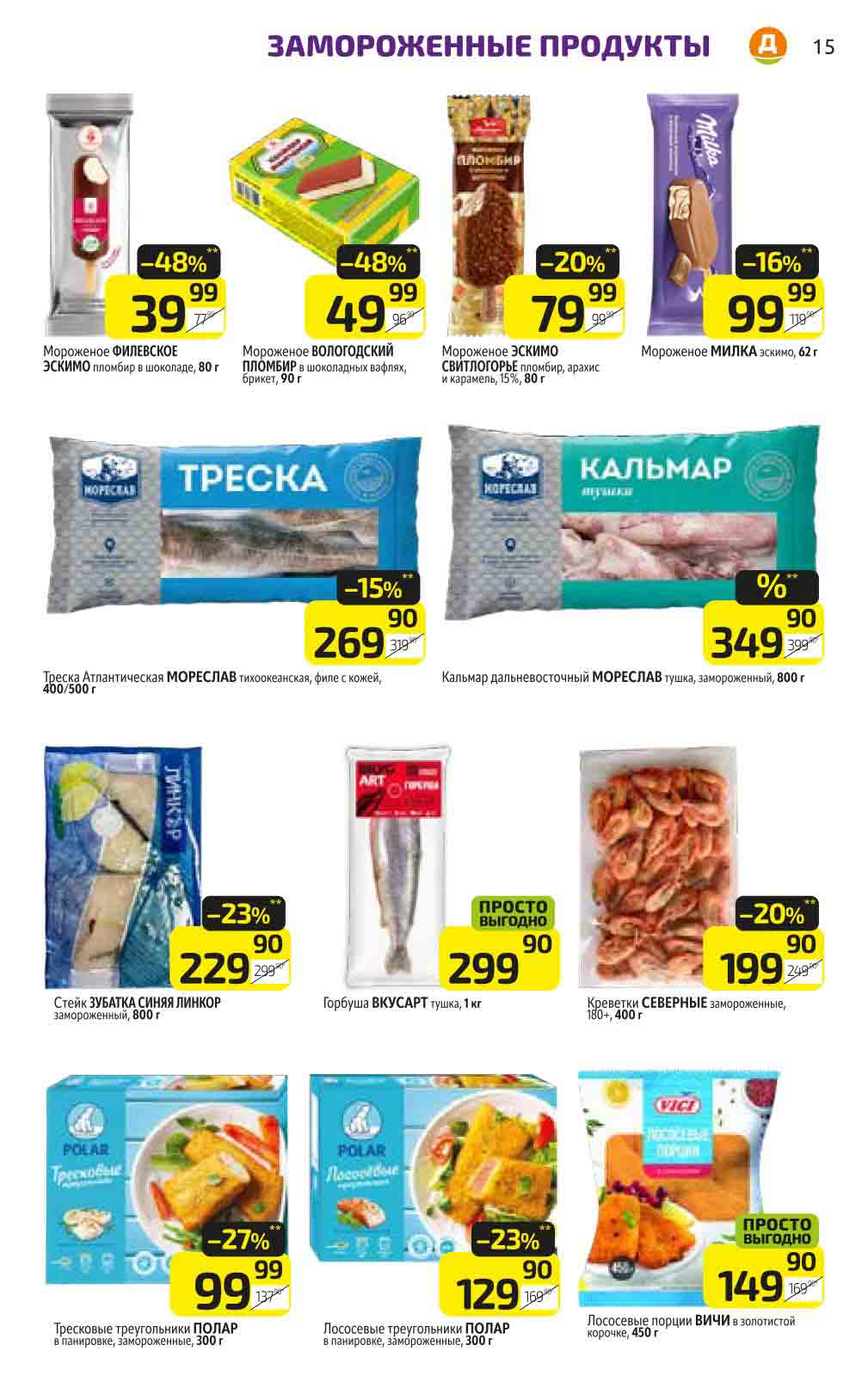 Буклет акционных цен включает в себя различные продукты, например, такие, как апельсины 99.99 руб., сосиски 199.90 руб., масло 159.90 руб., сыр 129.90 руб., авокадо 36.99 руб. и т. д.