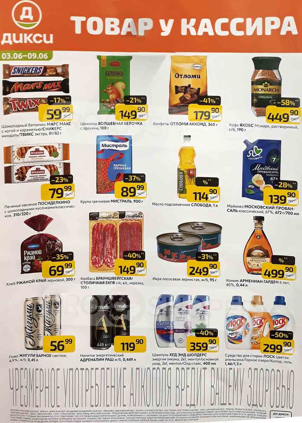 Дикси акции с 3 июня — 9 июня 2024. Товары у кассира со скидкой