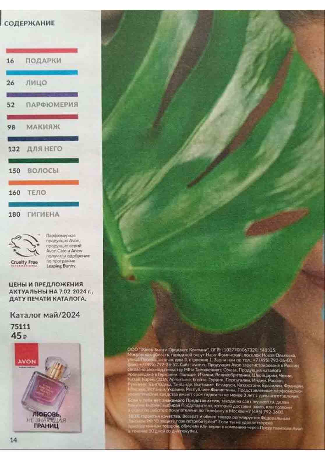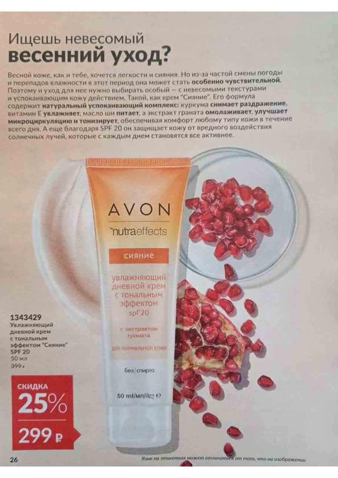 Подробную информацию об правилах, наличии товаров, адресах и скидках узнавайте в магазинахили по тел.:8 (495) 792-36-00и на сайте: my.avon.ru