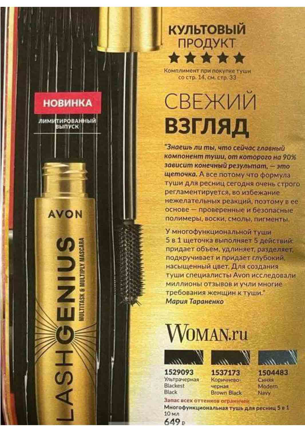 Подробную информацию об правилах, наличии товаров, адресах и скидках узнавайте в магазинахили по тел.:8 (495) 792-36-00и на сайте: my.avon.ru
