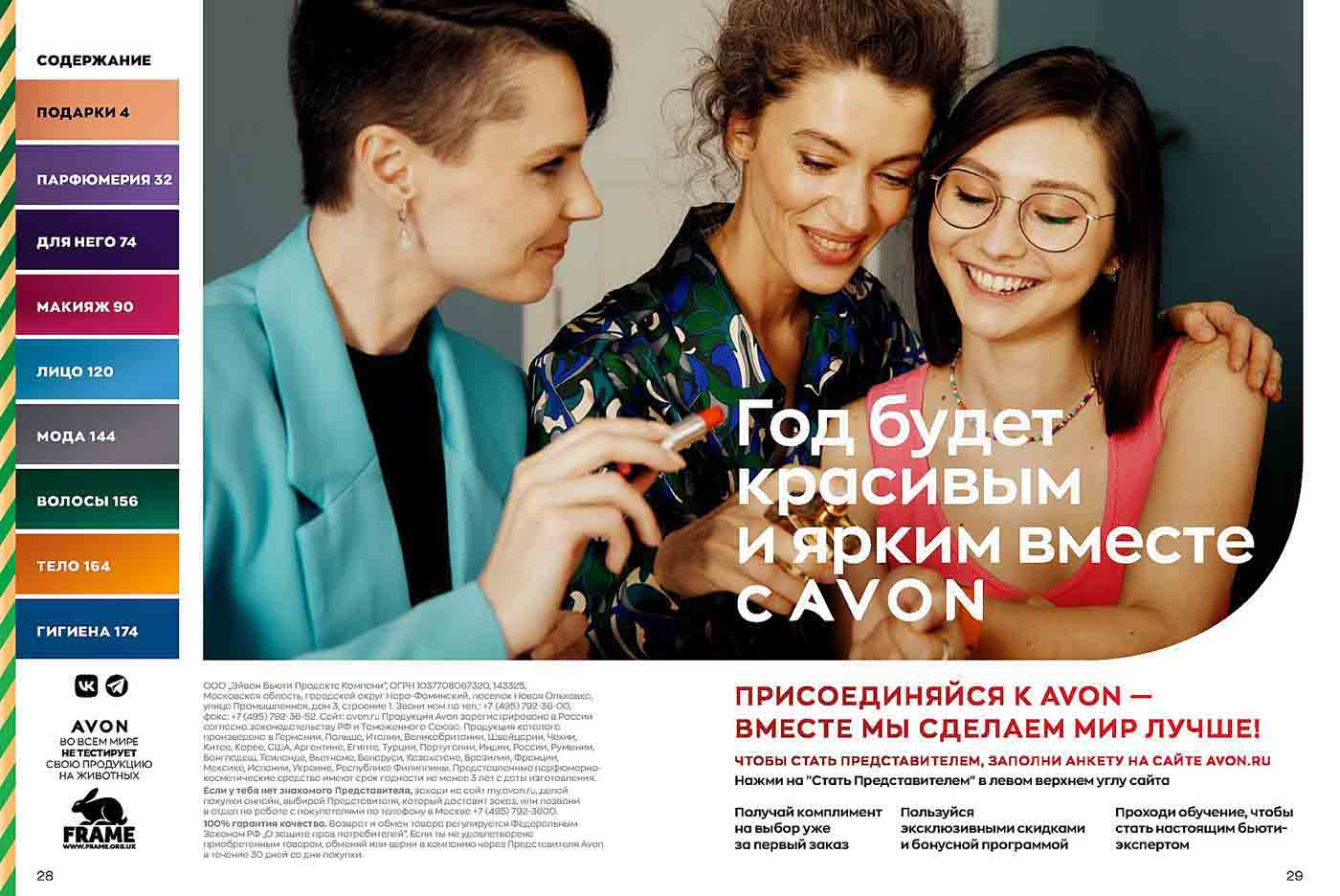 Компания «Эйвон» завоевала любовь россиян широким ассортиментом качественной продукции и демократичными ценами. Скидки на всю продукцию до 25%, закрытые распродажи, призовые программы и другие привилегии. Хотите присоединиться? Каталог Avon – ваш путь к красоте, ваш путь к экономии.