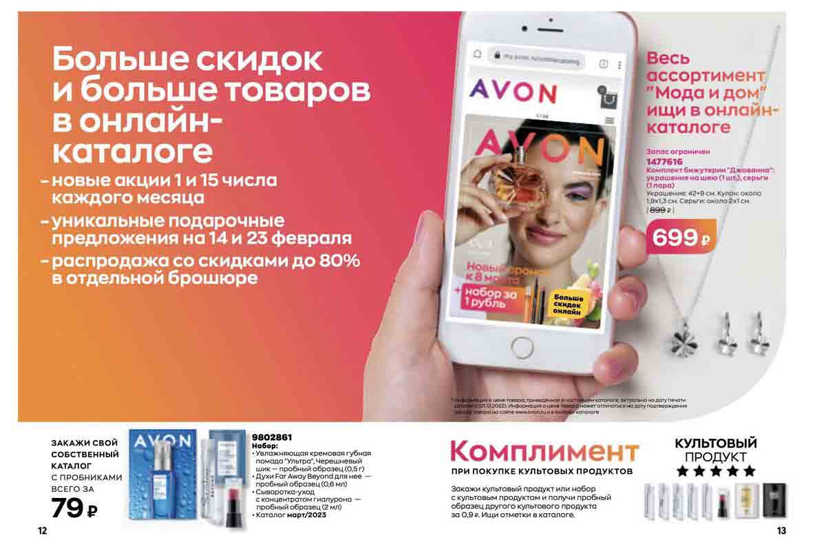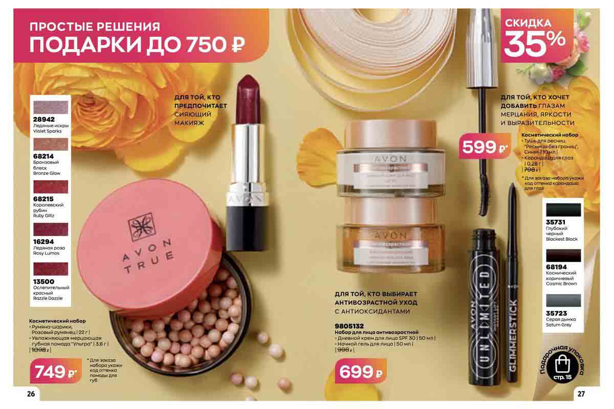 Компания «Эйвон» завоевала любовь россиян широким ассортиментом качественной продукции и демократичными ценами. Скидки на всю продукцию до 25%, закрытые распродажи, призовые программы и другие привилегии. Хотите присоединиться? Каталог Avon – ваш путь к красоте, ваш путь к экономии.