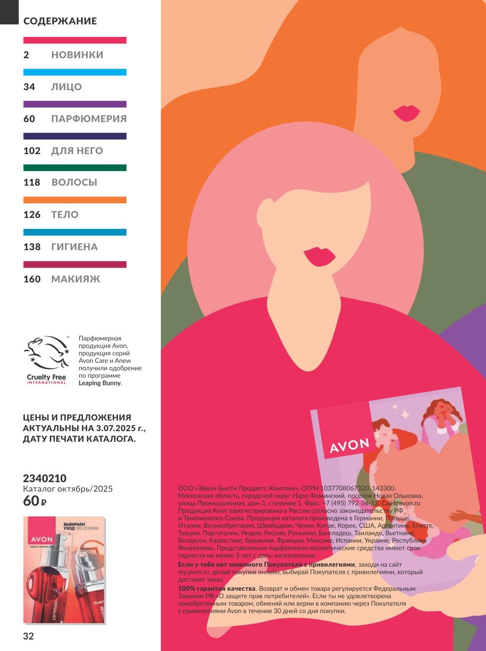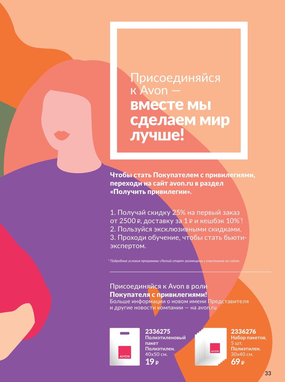 Подробную информацию об правилах, наличии товаров, адресах и скидках узнавайте в магазинахили по тел.:8 (495) 792-36-00и на сайте: my.avon.ru