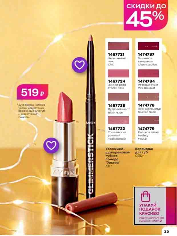 Подробную информацию об правилах, наличии товаров, адресах и скидках узнавайте в магазинахили по тел.:8 (495) 792-36-00и на сайте: my.avon.ru