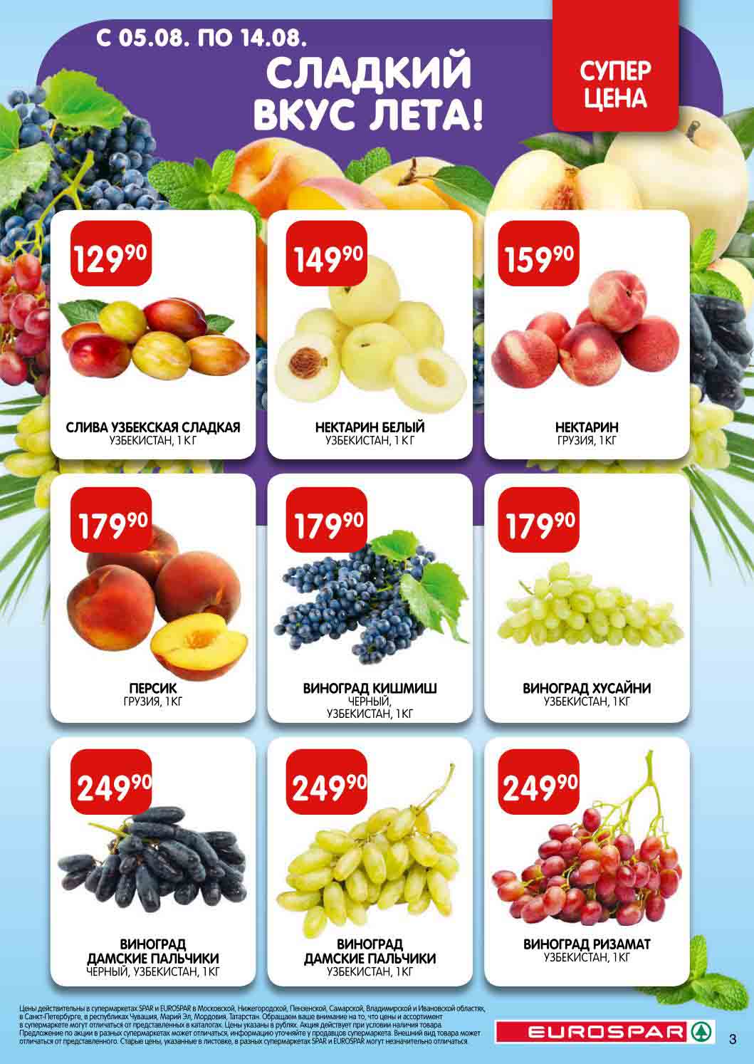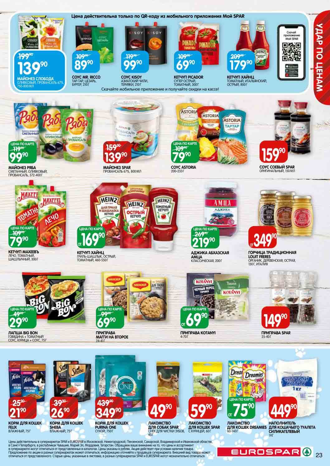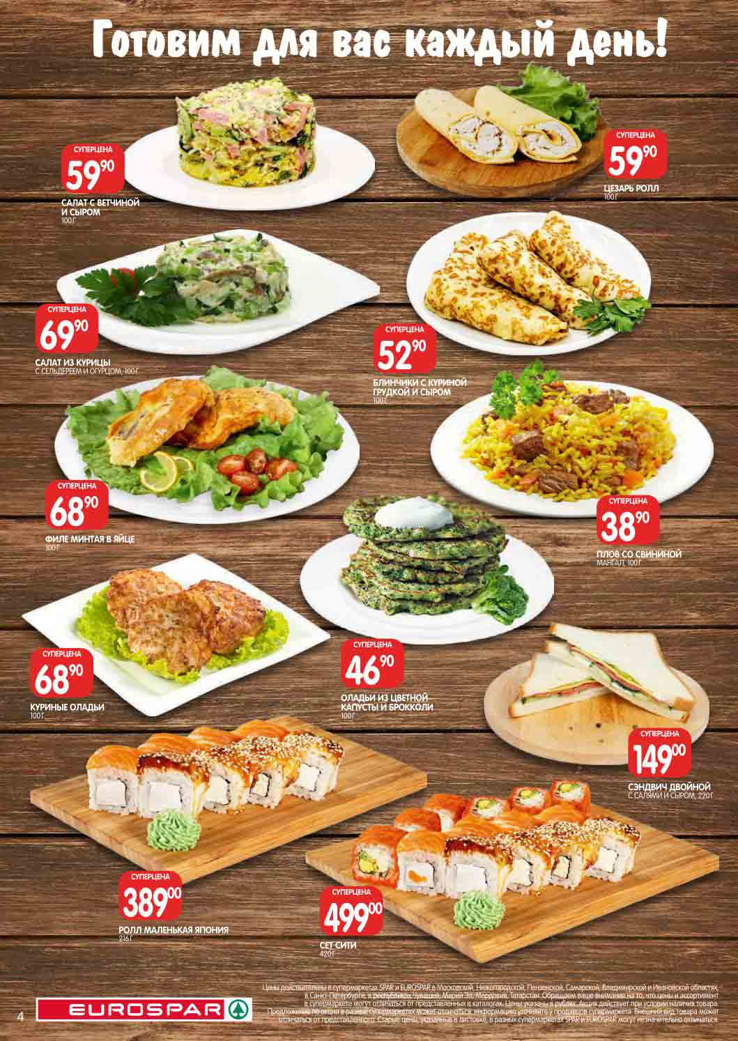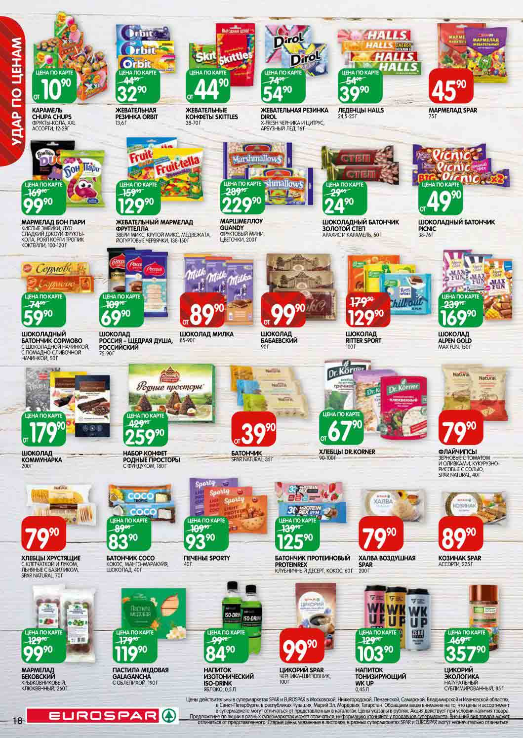 На страницах каталога ЕВРОСПАР вы найдете все свои любимые товары, которые сейчас предлагаются в супермаркете. Не пропустите последние специальные предложения и сэкономьте на покупках. Цены по акции ЕвроСпар действуют в городах: Москва, Химки, Красногорск, Одинцово, Краснознаменск, Кубинка, Климовск, Жуковский, Видное и других населенных пунктах Московского региона.