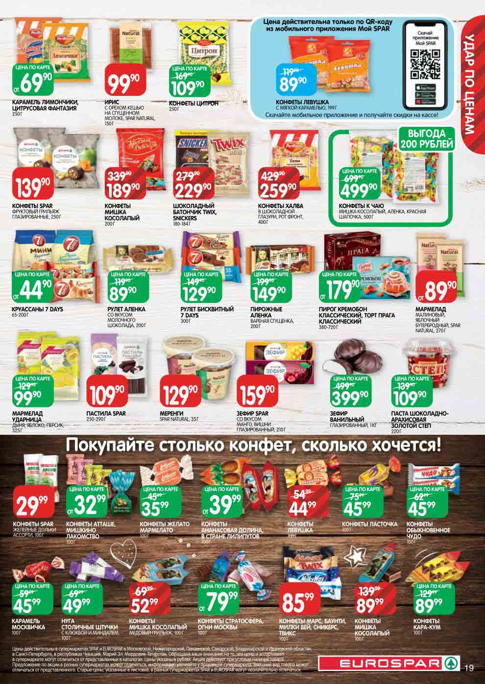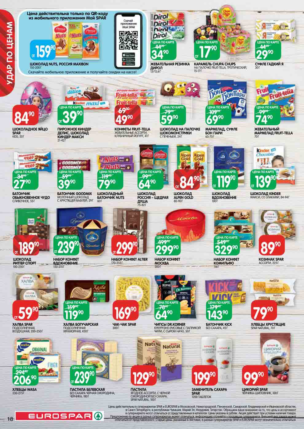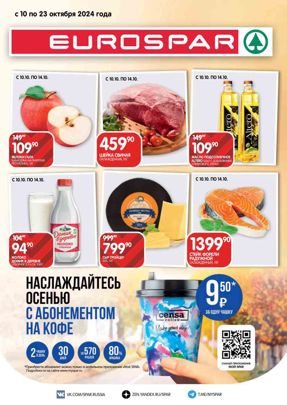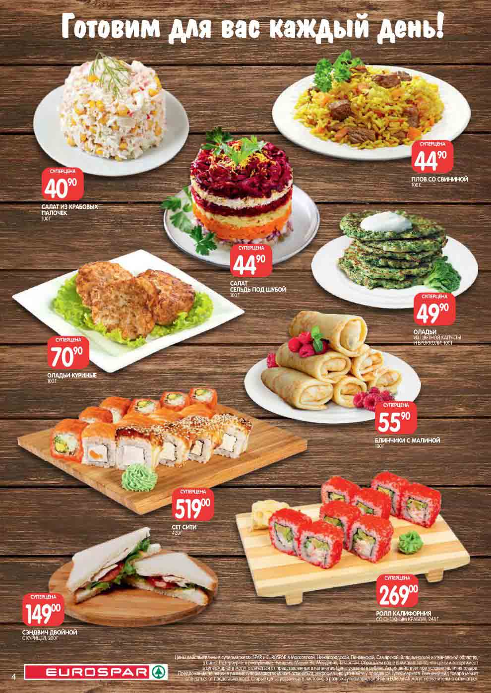 На страницах каталога ЕВРОСПАР вы найдете все свои любимые товары, которые сейчас предлагаются в супермаркете. Не пропустите последние специальные предложения и сэкономьте на покупках. Цены по акции ЕвроСпар действуют в городах: Москва, Химки, Красногорск, Одинцово, Краснознаменск, Кубинка, Климовск, Жуковский, Видное и других населенных пунктах Московского региона.